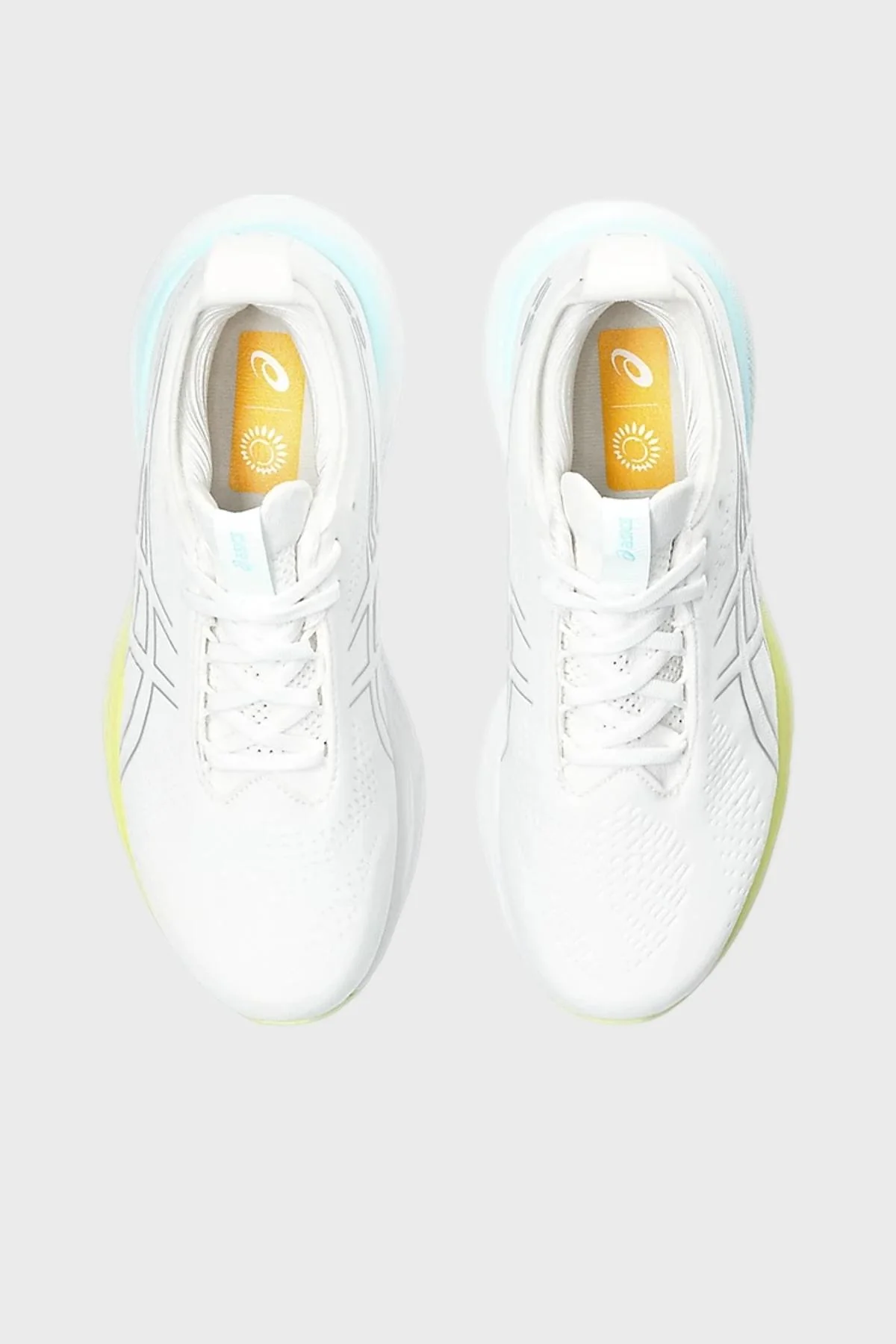 Le moelleux de l’amorti de la chaussure GEL-NIMBUS™ 25 donne l’impression de rebondir sur un nuage. Cette basket neutre est repensée avec de nouveaux matériaux pour des courses plus douces et plus fluides.