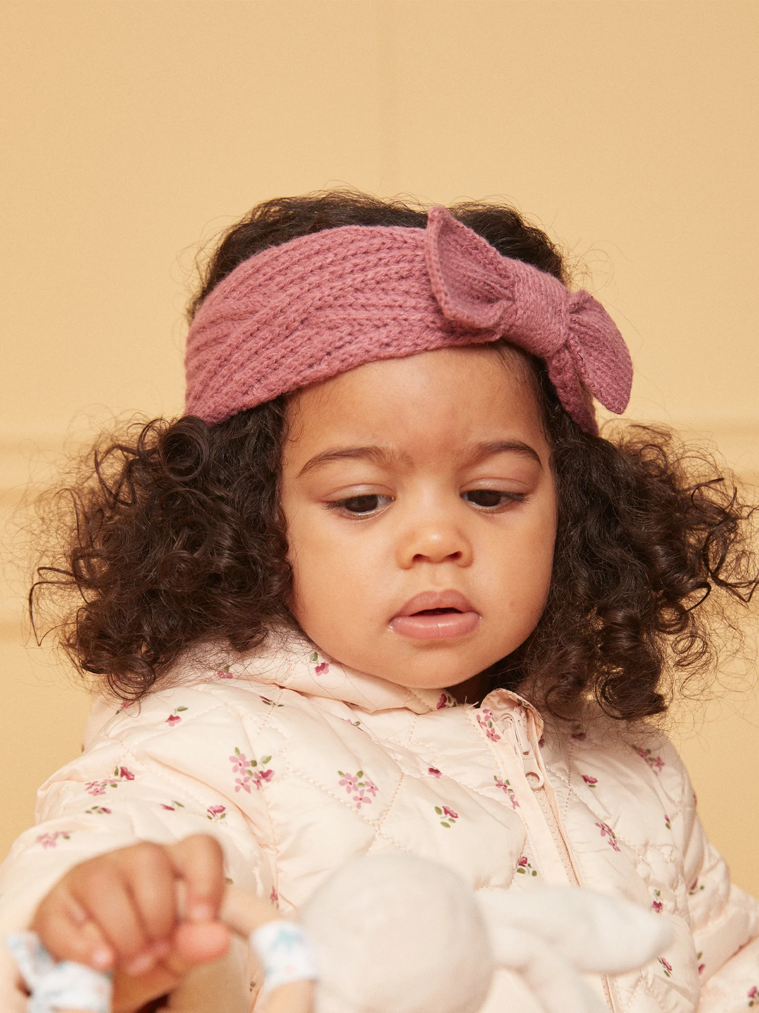 Découvrez notre bandeau chaud côtelé, un accessoire chic et confortable pour votre enfant. Fabriqué en maille fantaisie de couleur mauve avec des fils argentés, ce bandeau est à la fois élégant et chaleureux. Il est orné d’un joli nud sur le devant, ajoutant une touche de style féminin. Parfait pour garder les oreilles de votre enfant au chaud tout en restant à la mode pendant les mois plus froids.