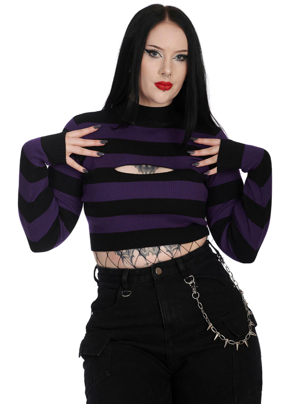Banned Alternative Crash Into Me Peekaboo Longsleeve Violet Black