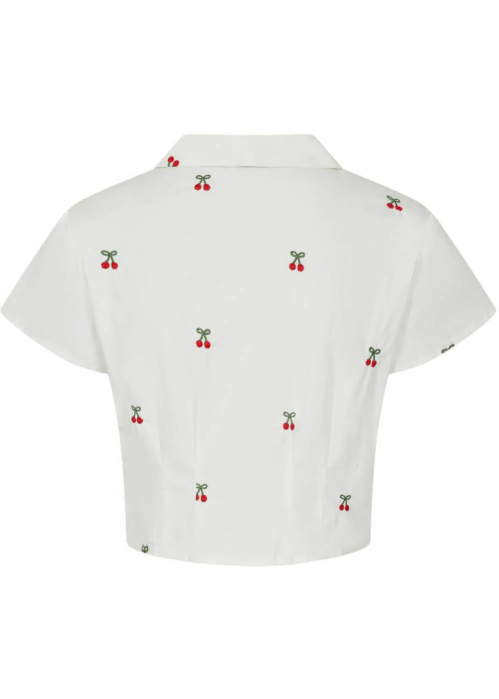 What evokes such summer vibes like cherries do? On Cherry Vibes, they’re beautifully embroidered, almost making you want to take a bite… The model features short sleeves, a cropped and tailored fit, and a button detail at the collar, making you feel more summery than ever!