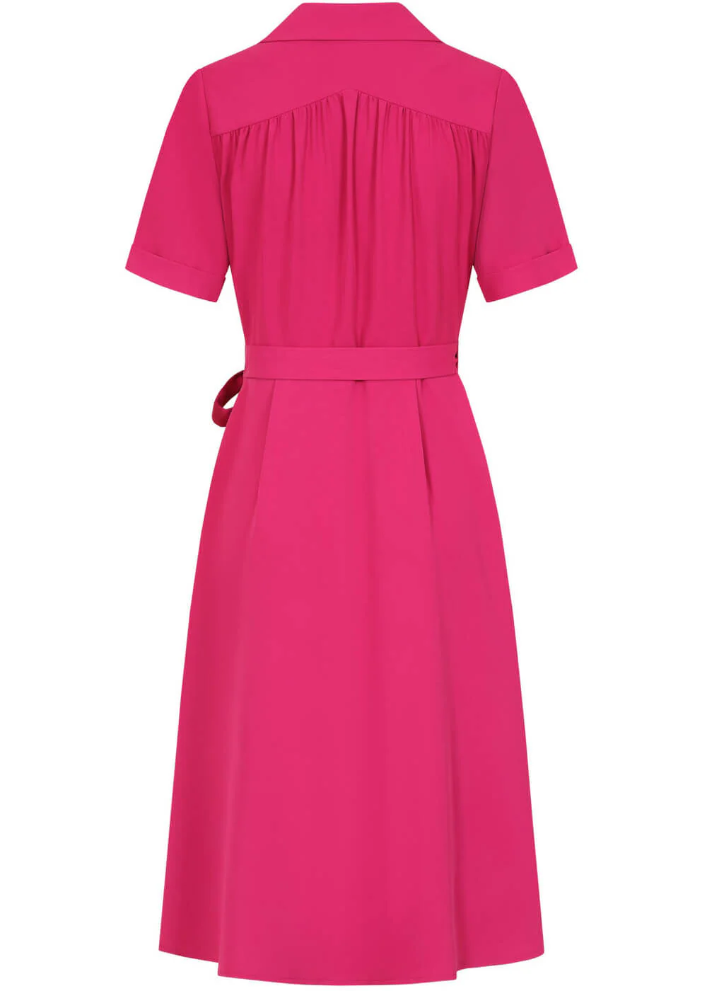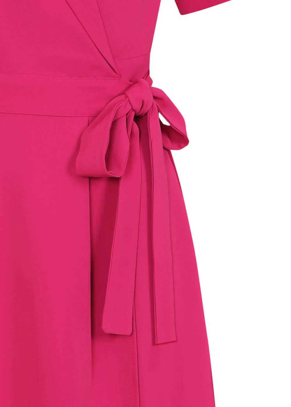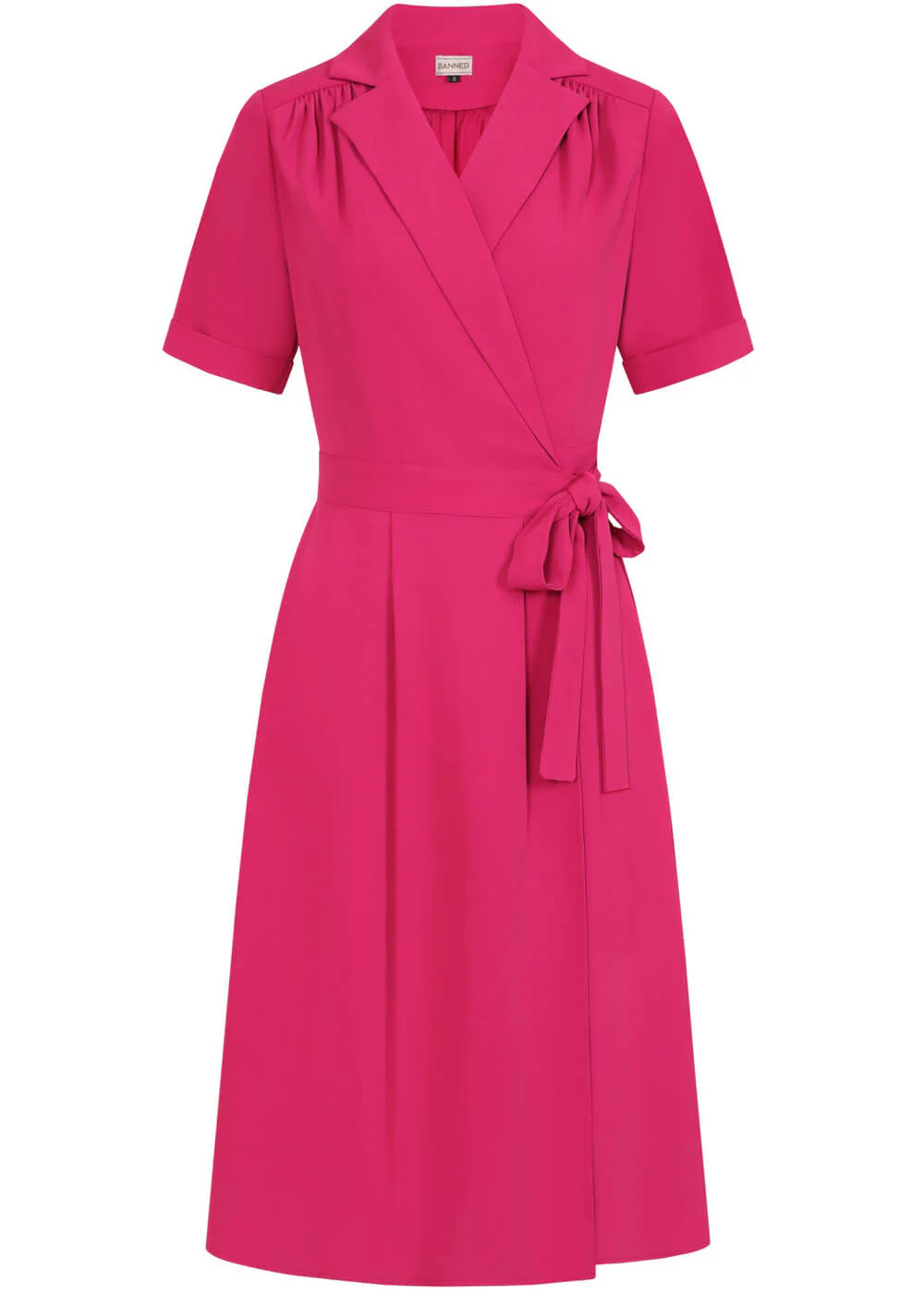Een diner, op kantoor, naar een feestje of op vakantie; het maakt niet uit waar je Judy heen aantrekt, je komt uit best geklede uit de bus! Dit jaren ’40 geinspireerde schatje in berry paars/roze was toen even elegant als nu, en heerlijk praktisch met haar wrapmodel en a-lijn modelletje. Aanschieten en jij bent klaar om in stijl te dag te overwinnen!