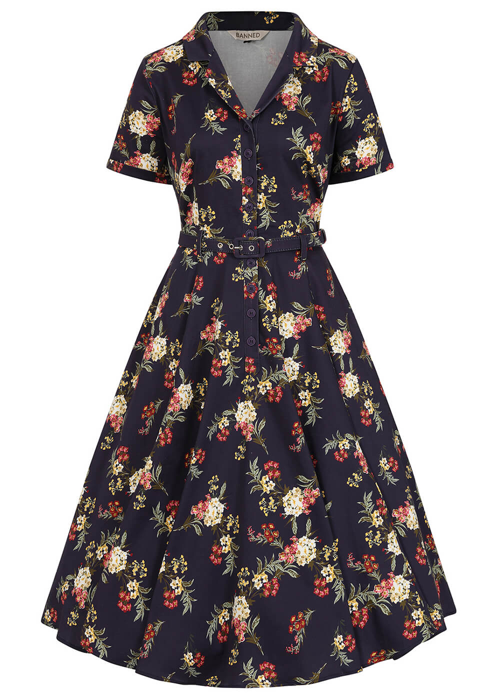 Banned Retro Bella Romantic Floral Swing Dress Blue