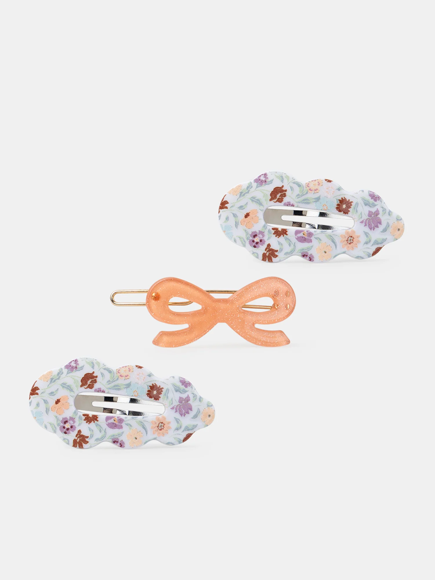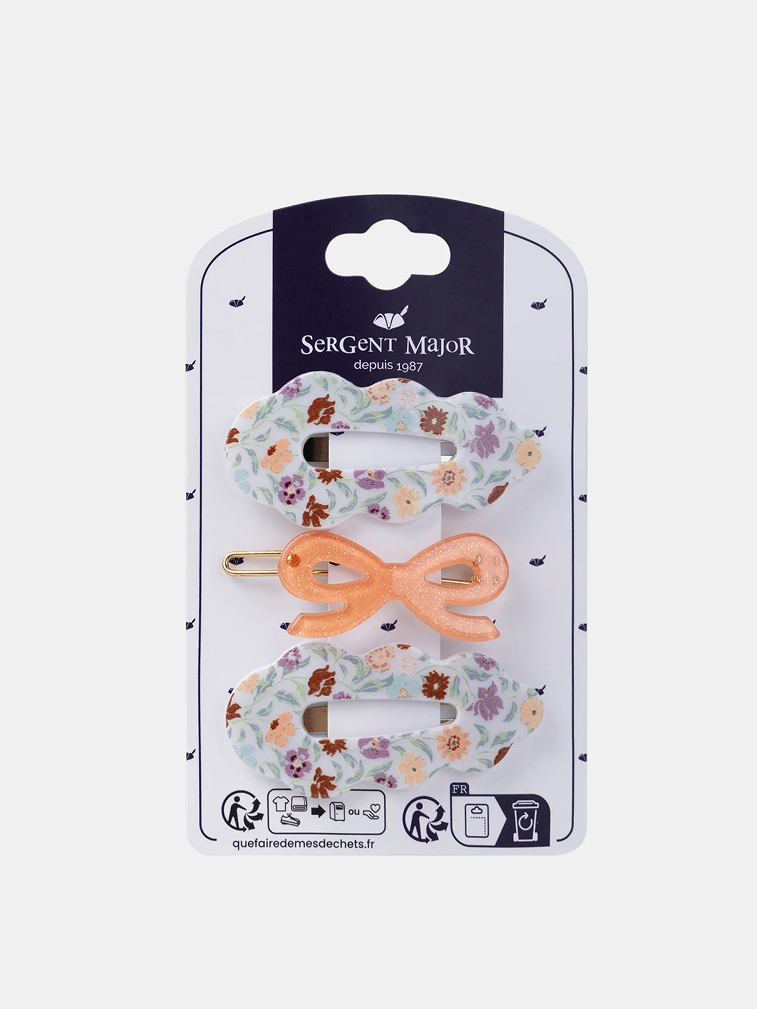 Lot de 3 barrettes fleuri rigide et noeud pailleté. Fermoir à clip sur la barrette noeud Vous pouvez accéder à la fiche produit relative des qualités et caractéristiques environnementales en cliquant ICI.