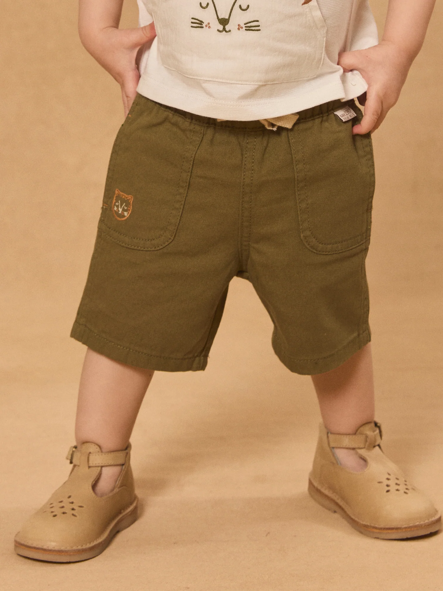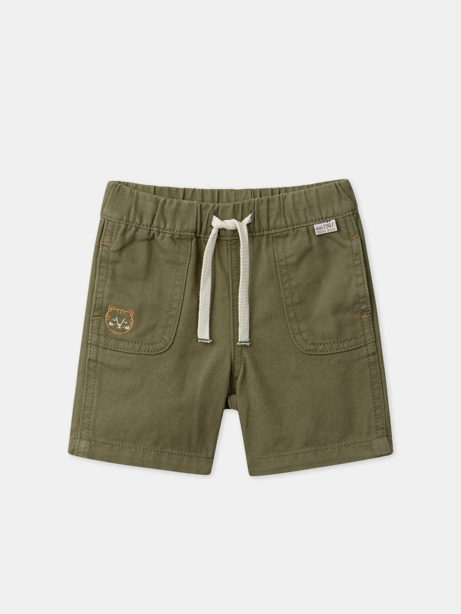 • 2 poches avant avec visage animal brodé et vignette tissée « Baby 1987 Sergent Major »
