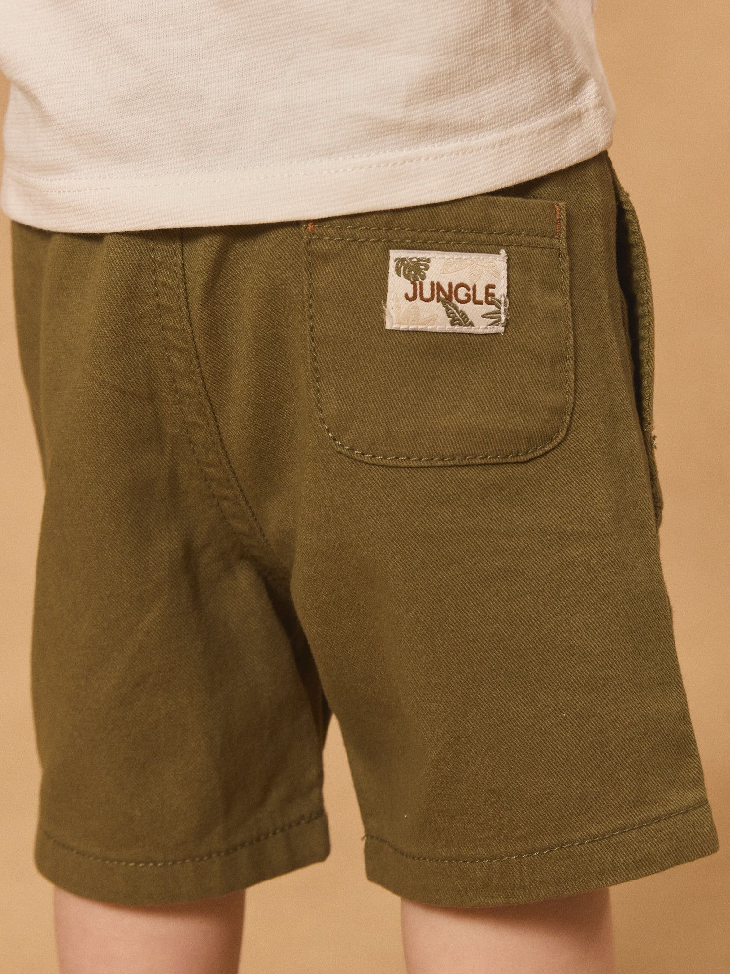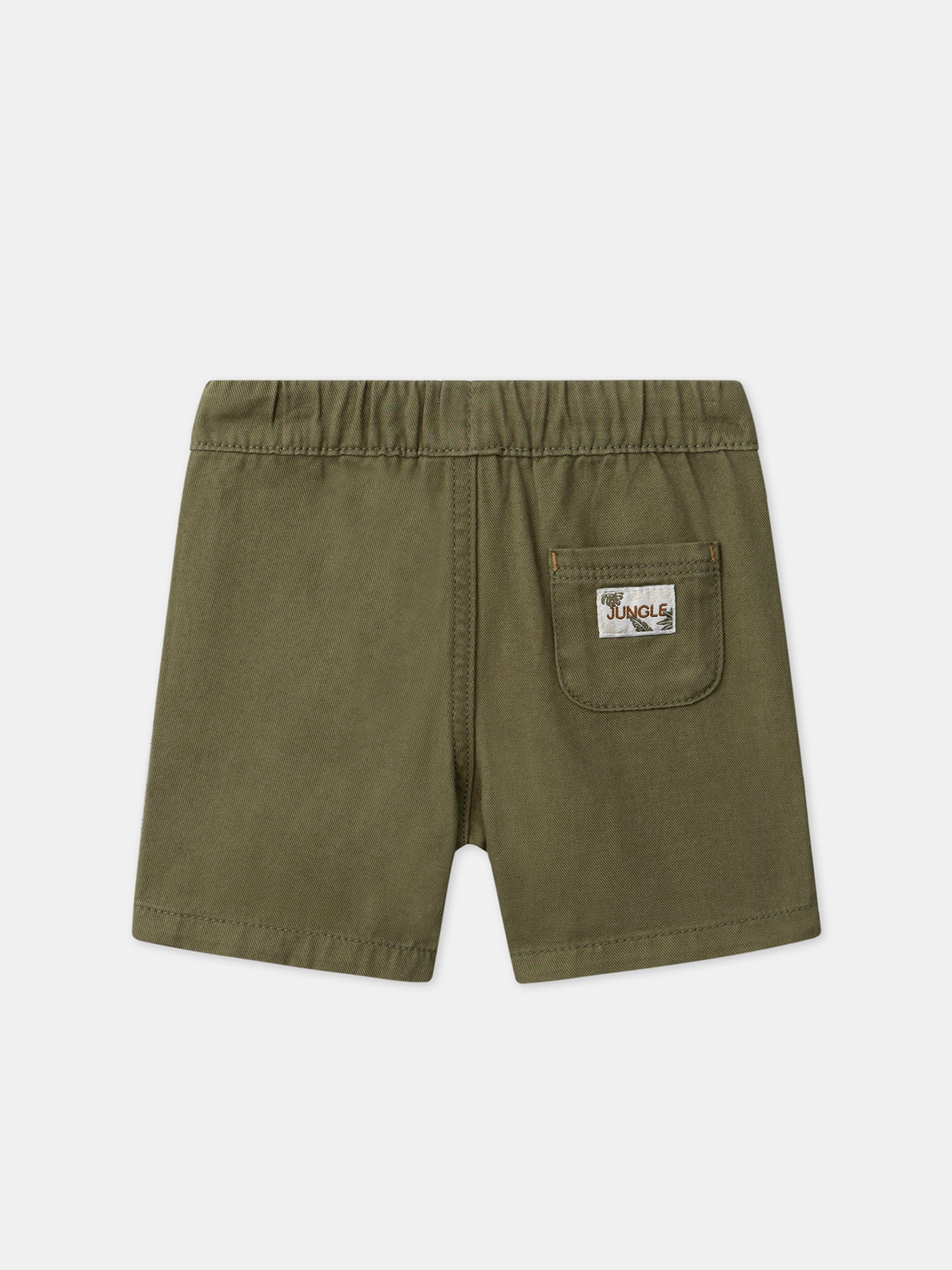 Pour les petits explorateurs, ce bermuda en twill est parfait pour les journées ensoleillées. Sa taille élastiquée avec cordon de serrage assure un ajustement confortable, tandis que les poches avant avec visage animal brodé ajoutent un côté ludique. La poche arrière avec vignette « Jungle » complète ce look pratique et stylé.
