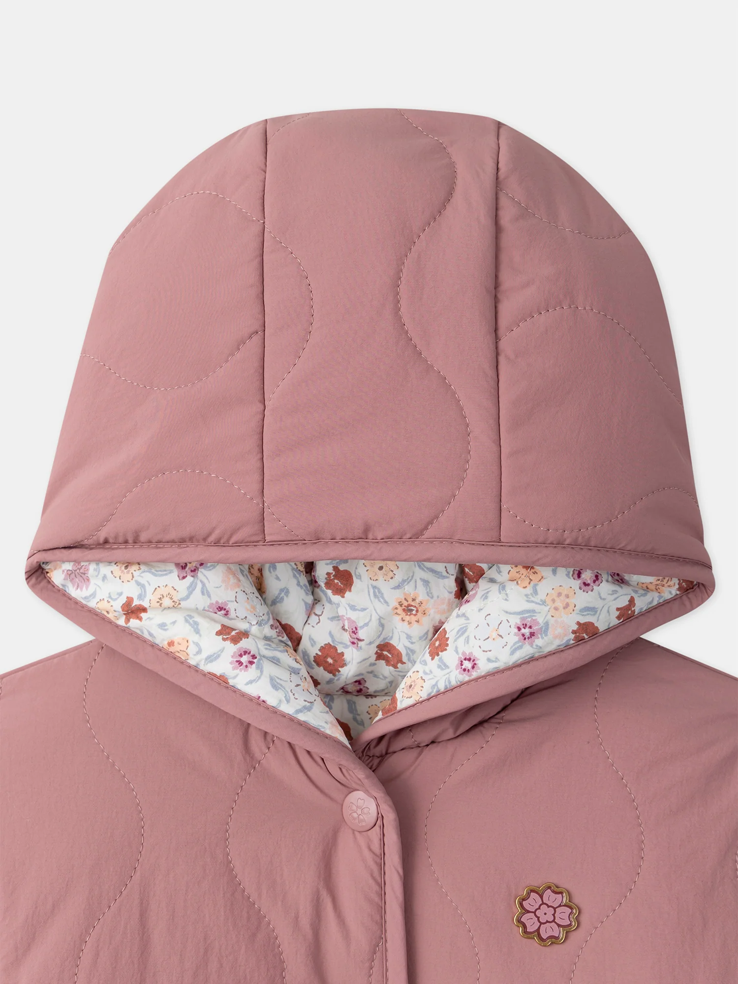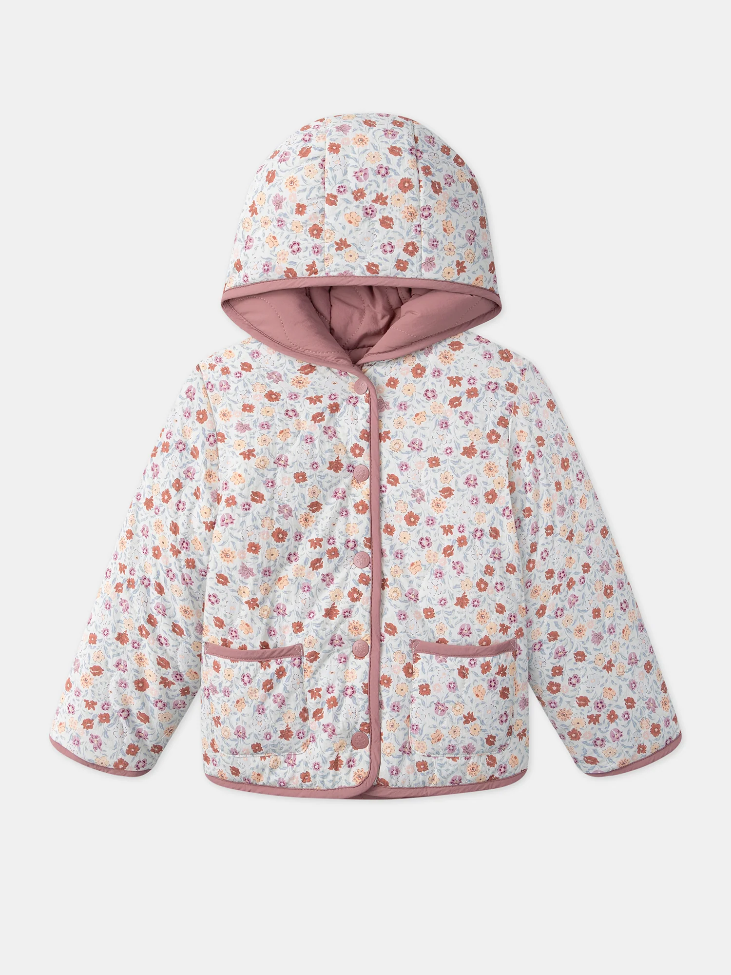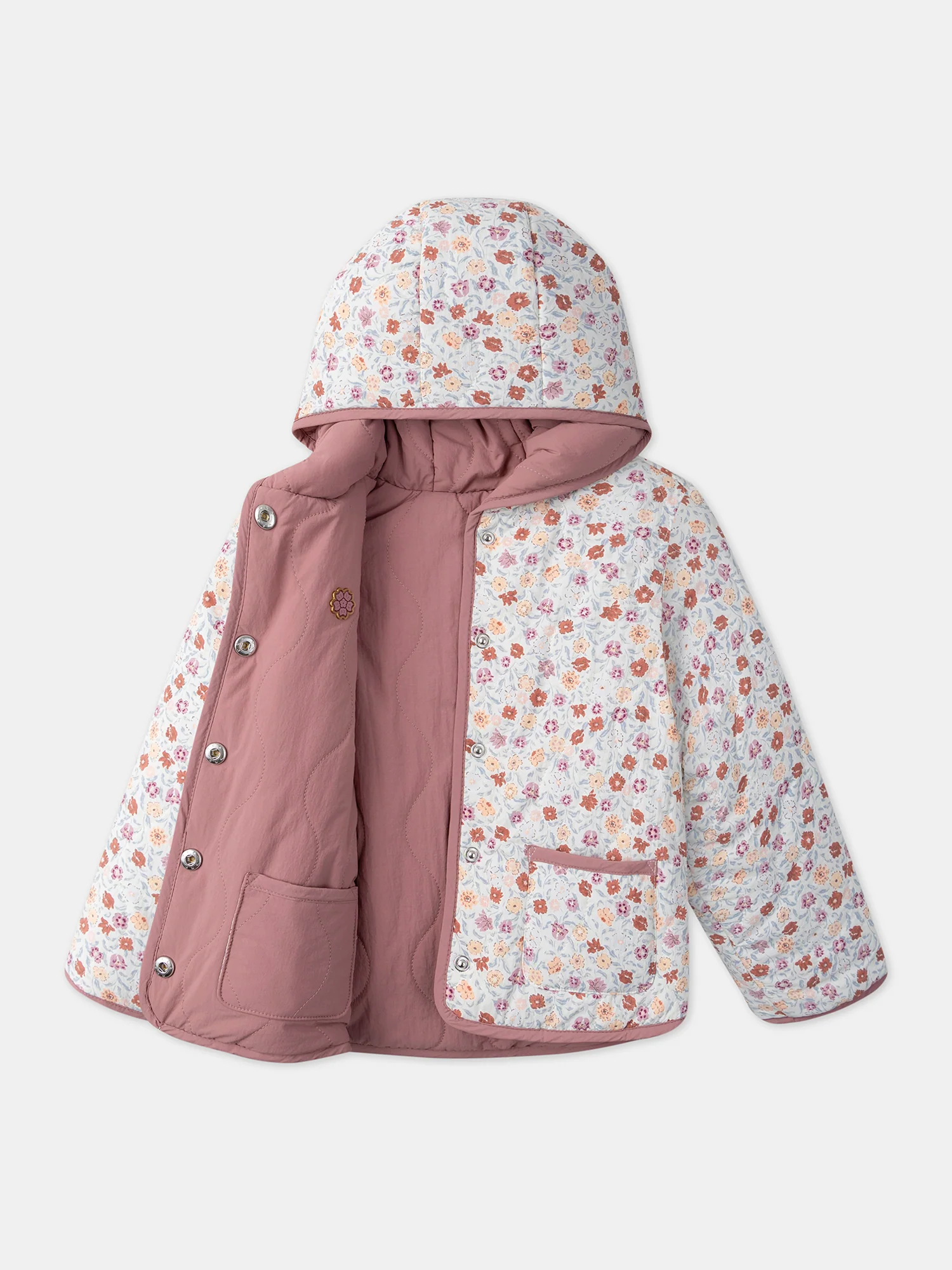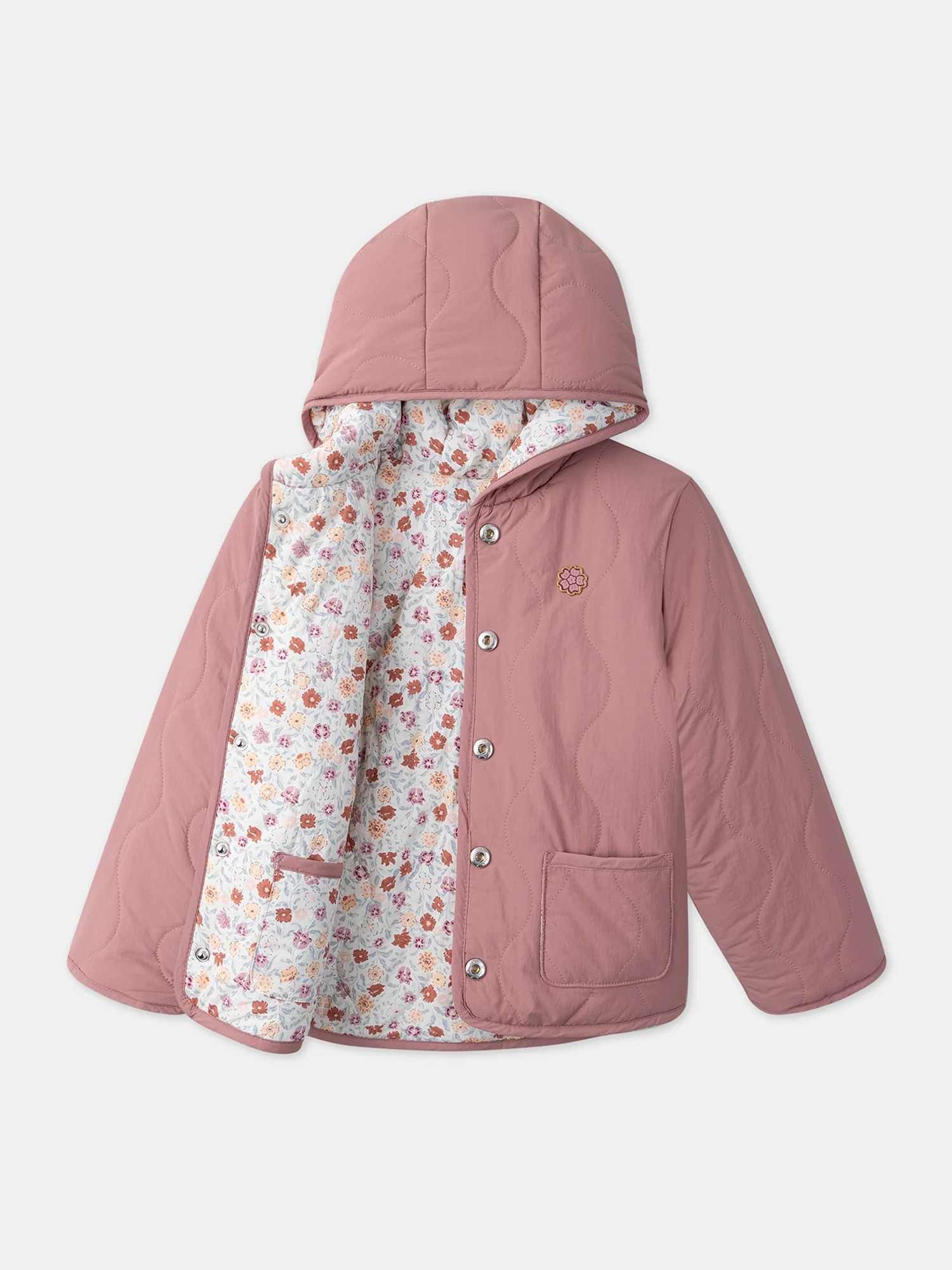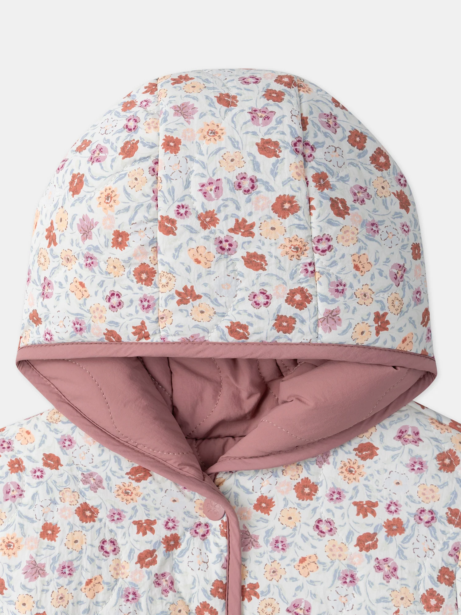 Blouson molletonné à capuche réversible Face A : blouson à fleurs, 2 poches avant Face B : Blouson uni, 2 poches avant Ouverture boutons pression sur le devant Vous pouvez accéder à la fiche produit relative des qualités et caractéristiques environnementales en cliquant ICI.