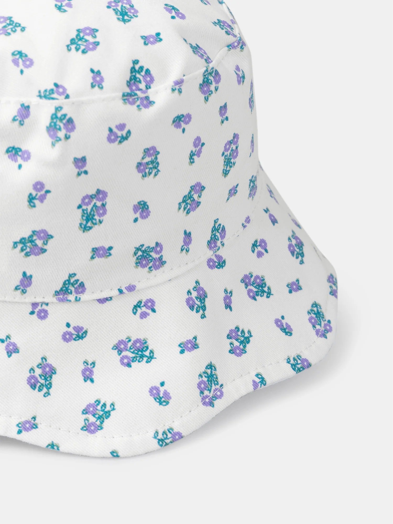 Ce bob imprimé fleurs est idéal pour les journées ensoleillées. L’imprimé de fleurs violettes claires sur fond écru apporte une touche délicate, tandis que la visière finition coquille offre à la fois protection et style. Le lien à nouer sous le menton garantit un ajustement sécurisé et confortable.