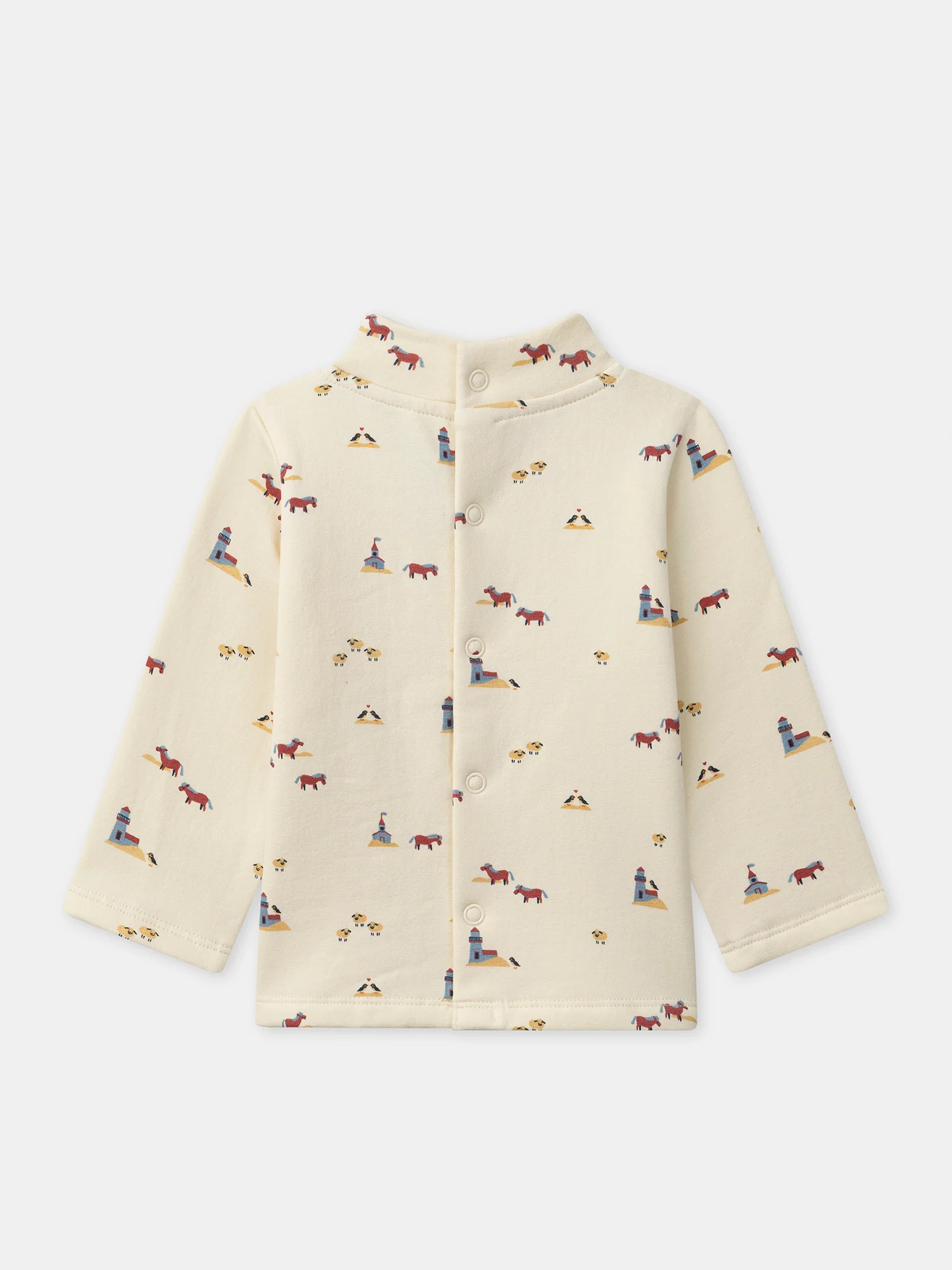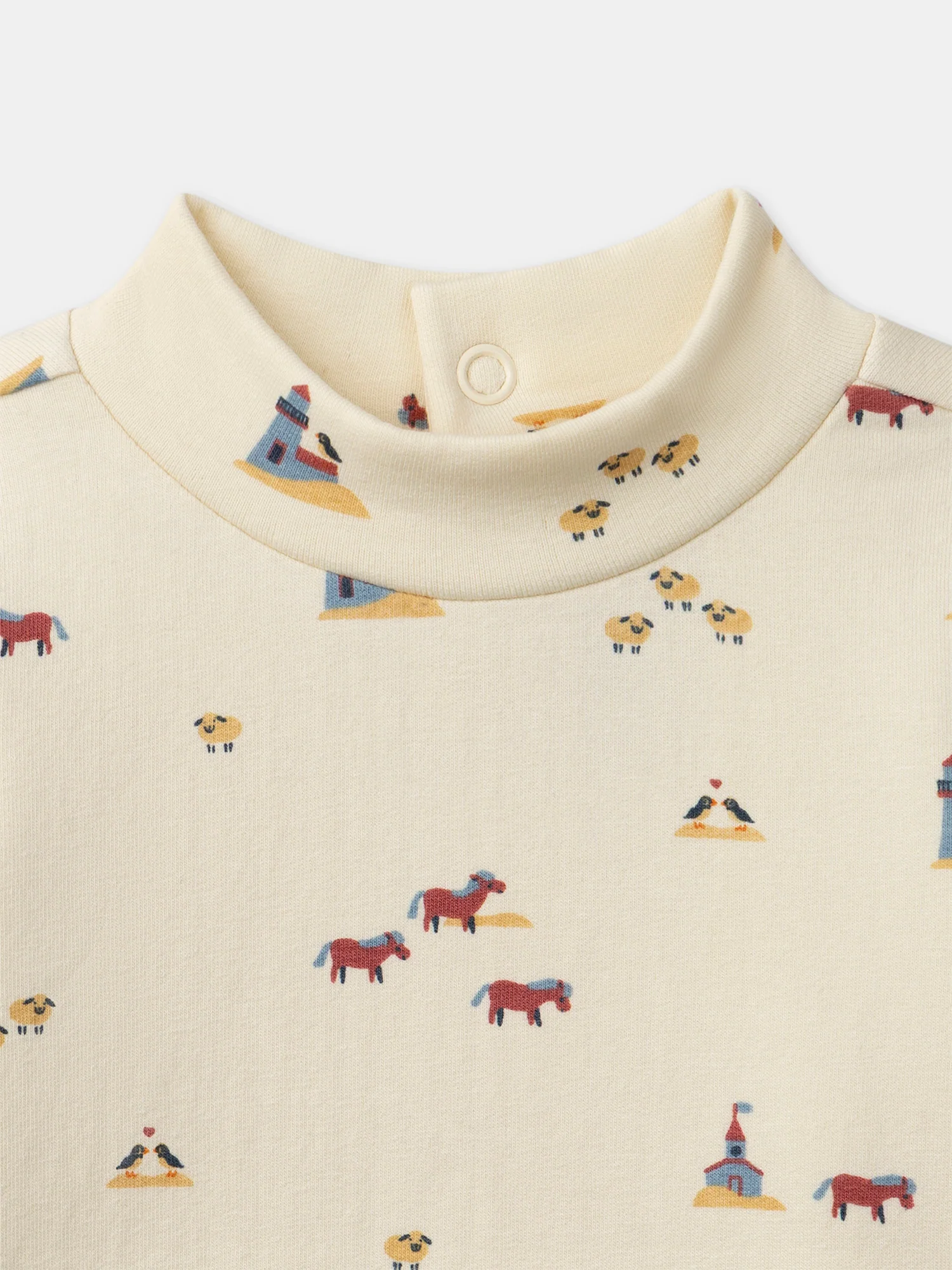 Conçu pour l’hiver, ce t-shirt accompagne les bébés au quotidien. En jersey doux, il est pratique avec ses pressions au dos et à l’entrejambe. L’imprimé animaux et les biais contrastés complètent un style ludique.