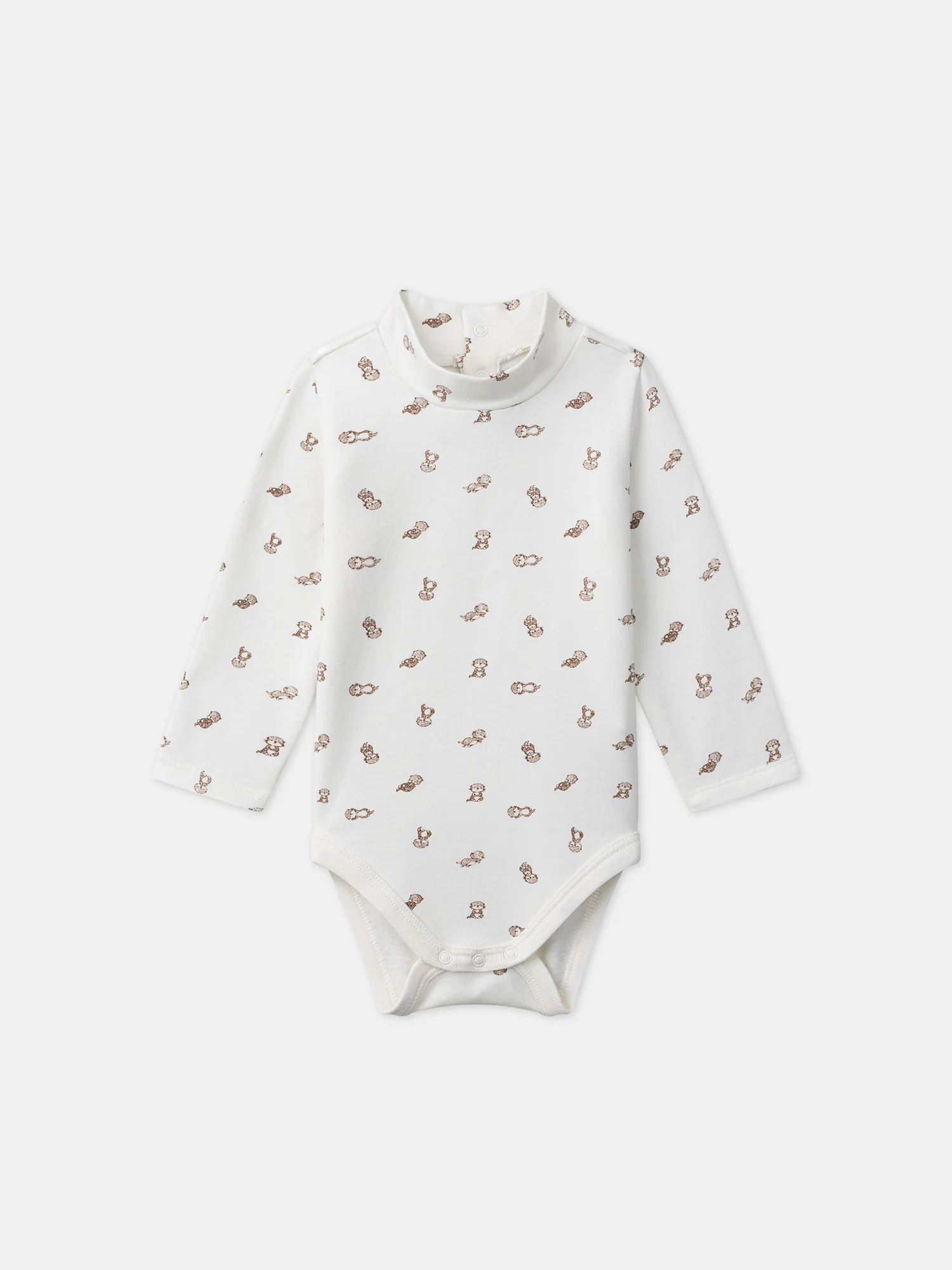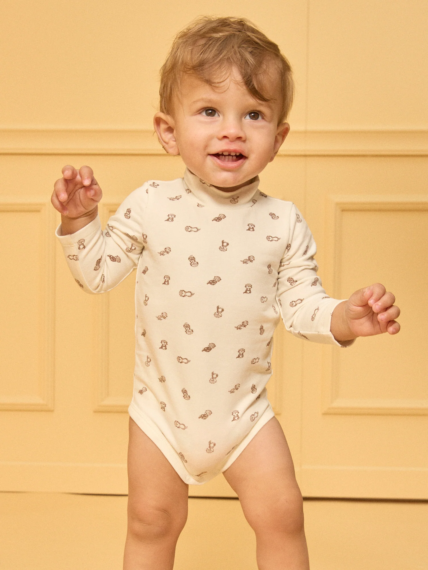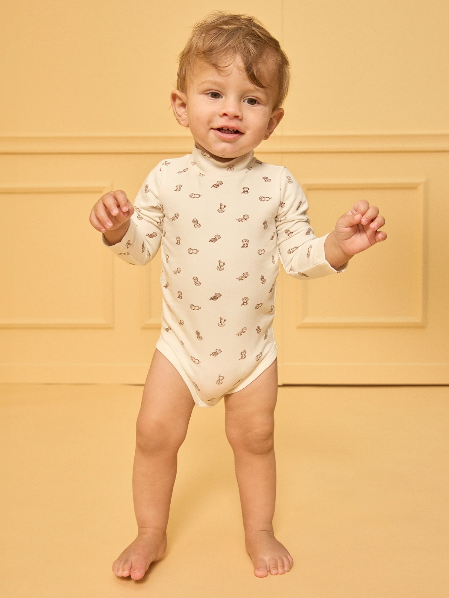 Pour les petits aventuriers, ce body col montant imprimé est à la fois adorable et pratique. Avec ses charmantes loutres marron sur fond écru, il apporte une touche ludique à la garde-robe de votre enfant. L’ouverture dos et entrejambe par boutons à pression facilite l’habillage et le change, alliant style et fonctionnalité pour un confort optimal toute la journée.