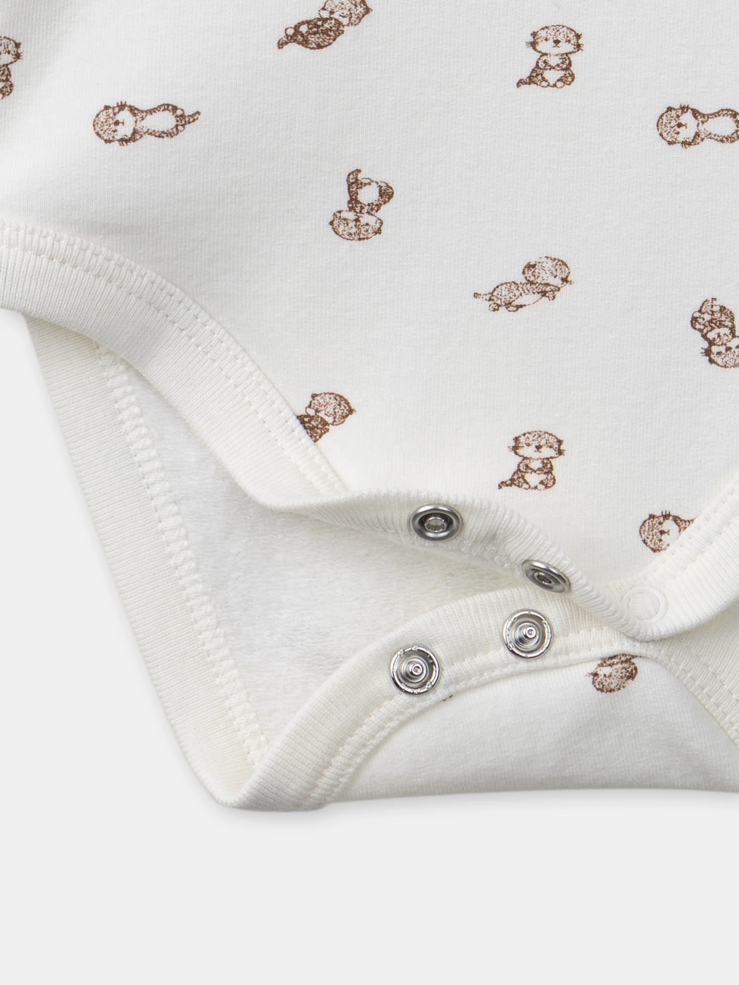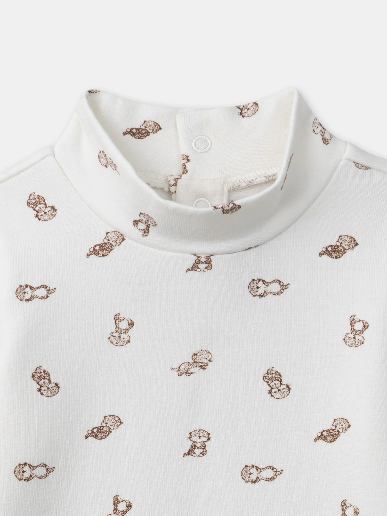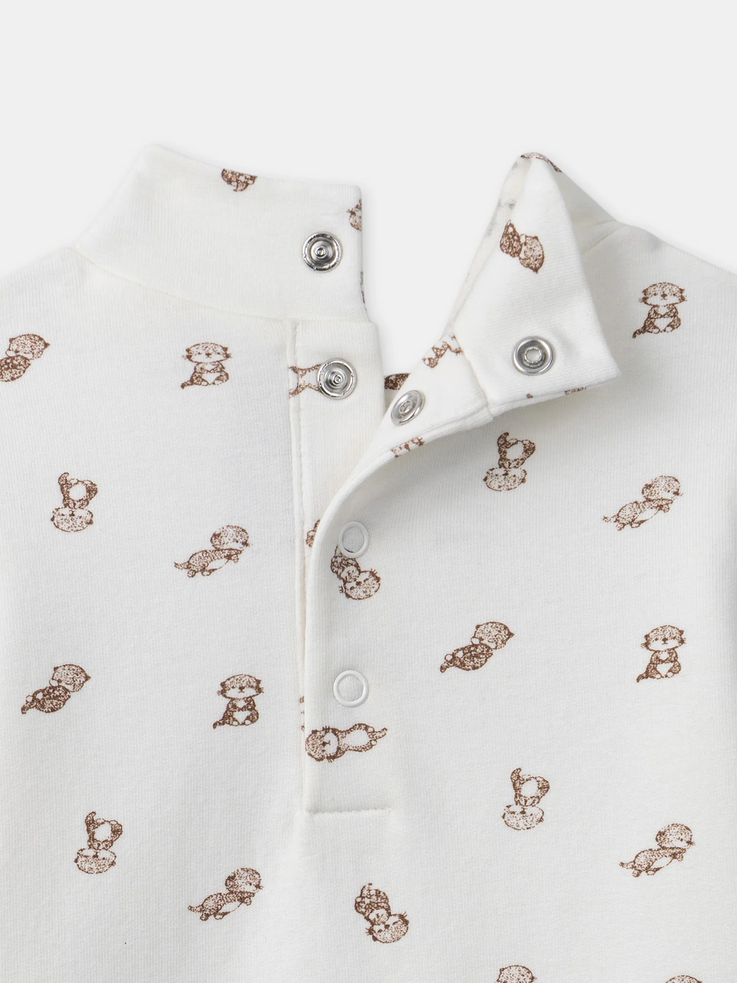 Pour les petits aventuriers, ce body col montant imprimé est à la fois adorable et pratique. Avec ses charmantes loutres marron sur fond écru, il apporte une touche ludique à la garde-robe de votre enfant. L’ouverture dos et entrejambe par boutons à pression facilite l’habillage et le change, alliant style et fonctionnalité pour un confort optimal toute la journée.