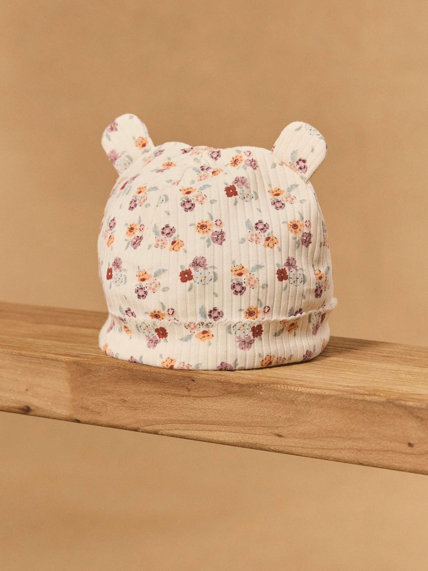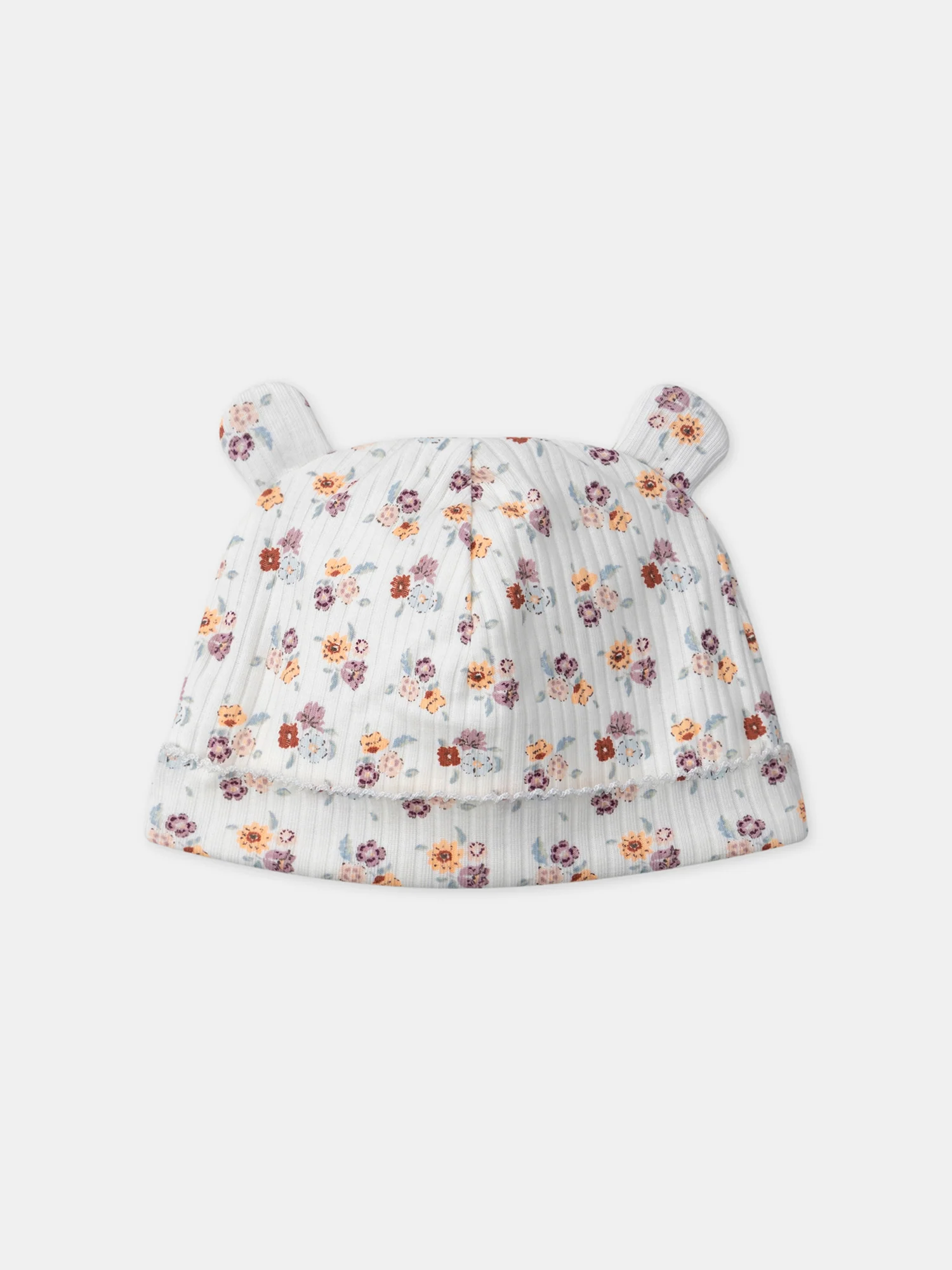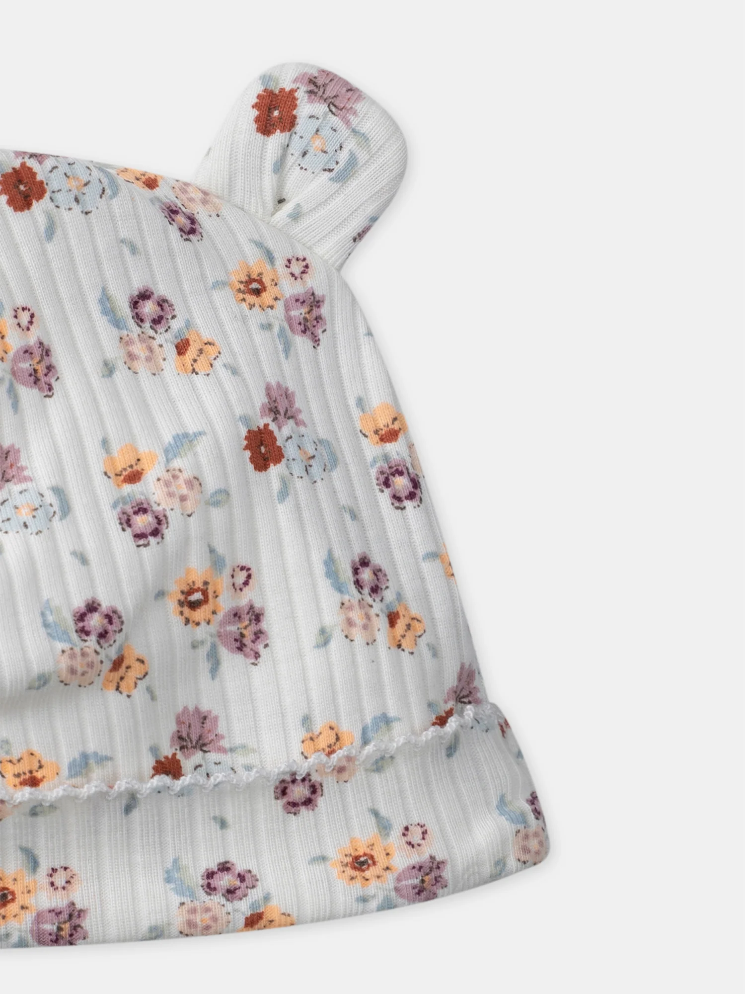 Ce bonnet écru imprimé fleur est parfait pour ajouter une touche de douceur et de fun à l’ensemble de votre enfant. Le jersey côtelé offre confort et chaleur, tandis que les oreilles d’animal 3D ajoutent une touche ludique. Sa doublure unie en jersey assure un confort optimal tout au long de la journée.