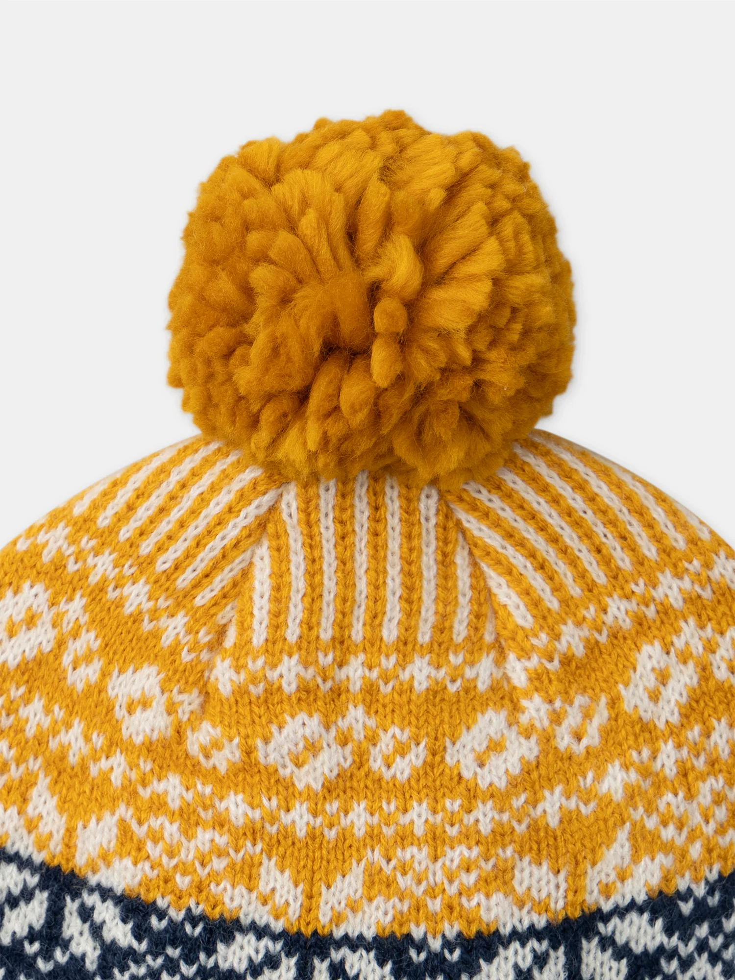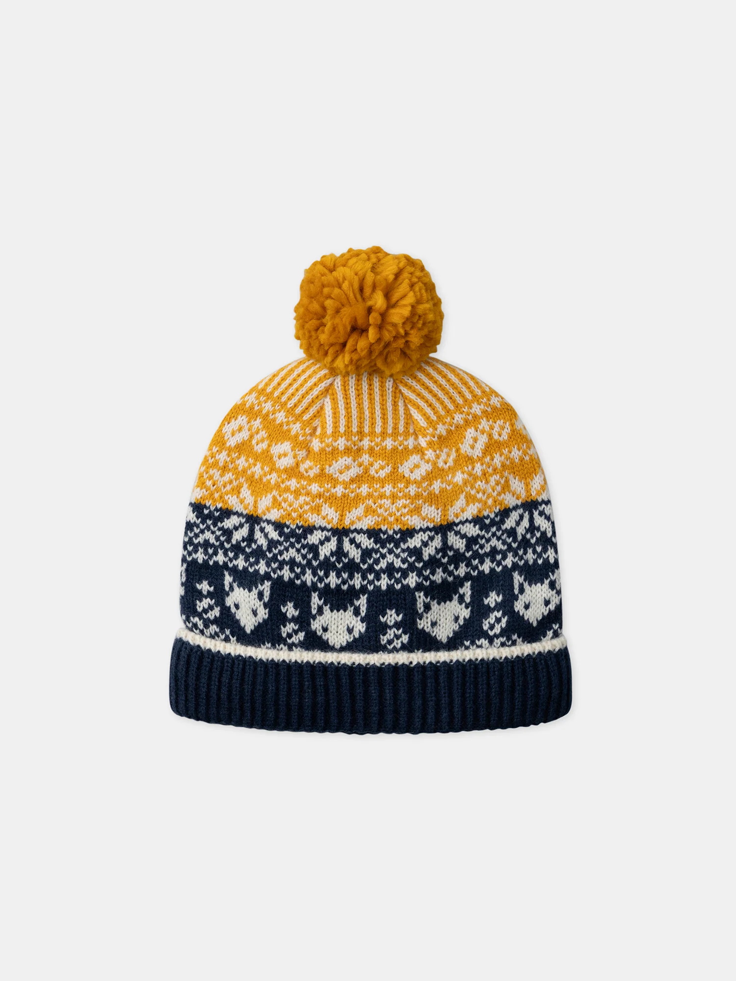 Jacquard petit loup et flocon de neige Pompon en fourrure synthétique Doublure en fourrure synthétique Nouveauté : une boucle ingénieuse en bas de manche, ludique et pratique pour garder vos gants en sécurité afin d’éviter leur perte