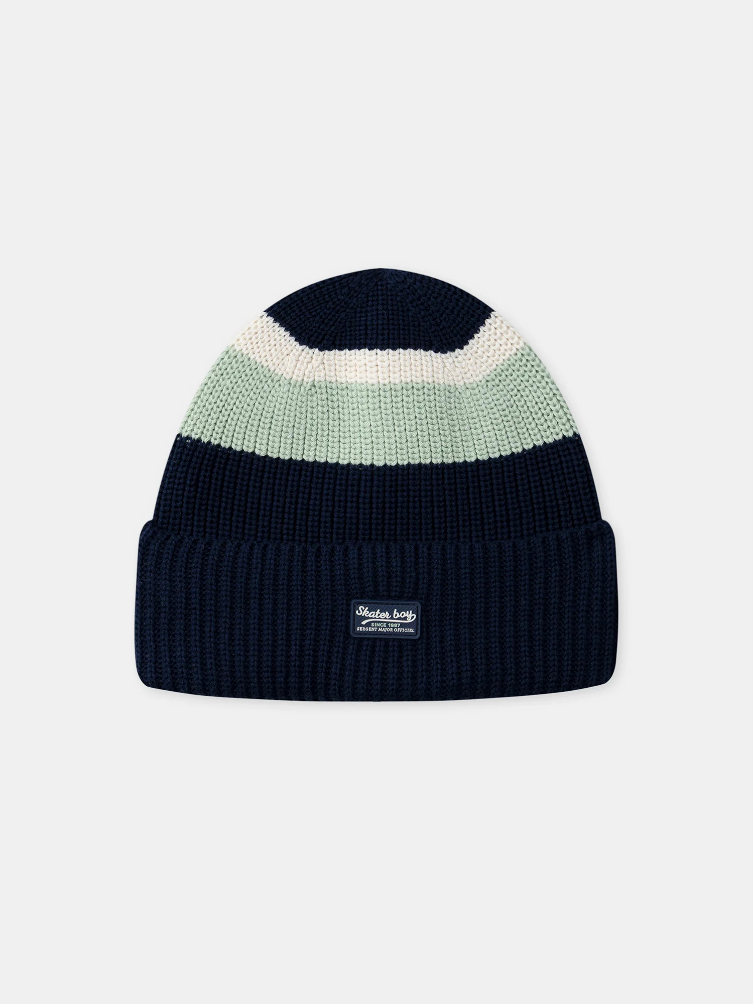 Idéal pour garder les enfants au chaud lors des sorties fraîches. Sa maille douce et son revers fixe offrent un bon maintien. Les rayures et le badge “skater boy” ajoutent une touche urbaine.