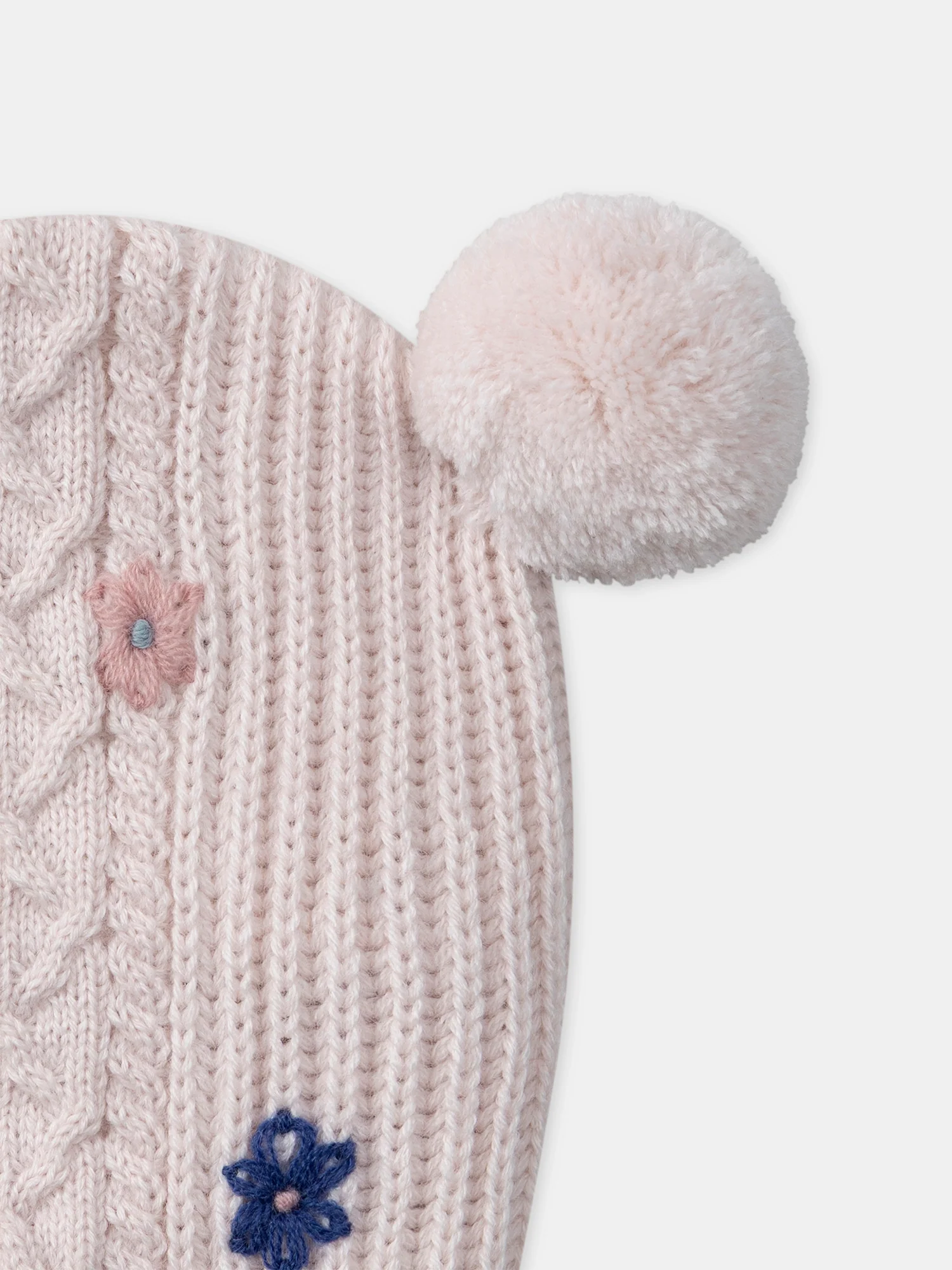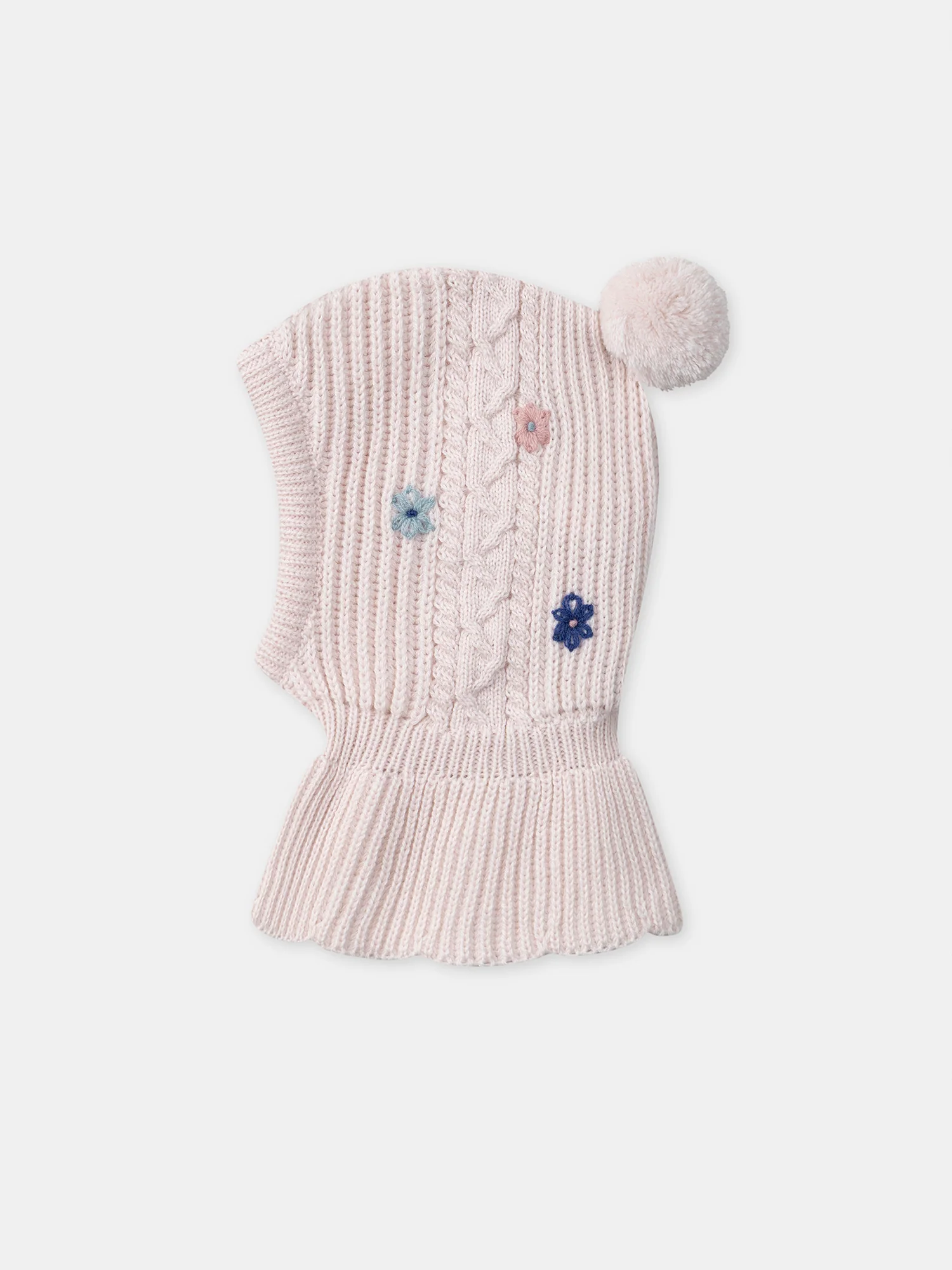 Cagoule rose en maille à broderie fleurs et ponpom Bébé Fille