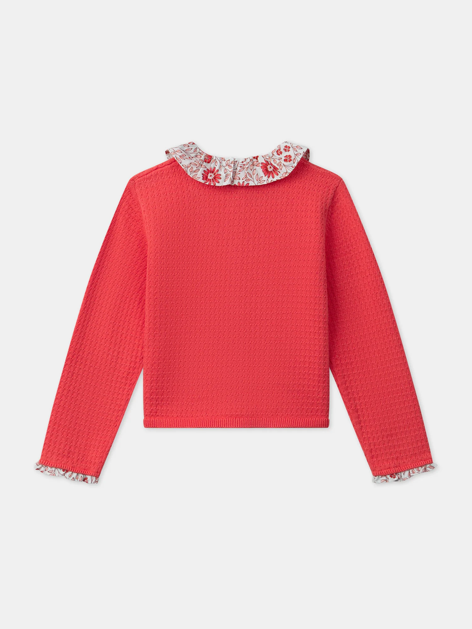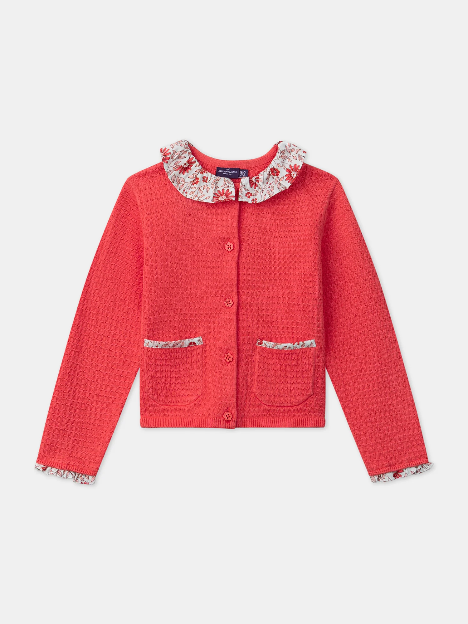 Ce gilet à col fleuri est parfait pour les petites filles à la recherche de confort et de douceur pendant les journées fraîches. Son col en popeline fleurie et les détails fleuris sur les poches et les manches apportent une touche de fraîcheur printanière. Élégant et pratique, il complète avec style toutes les tenues de saison.