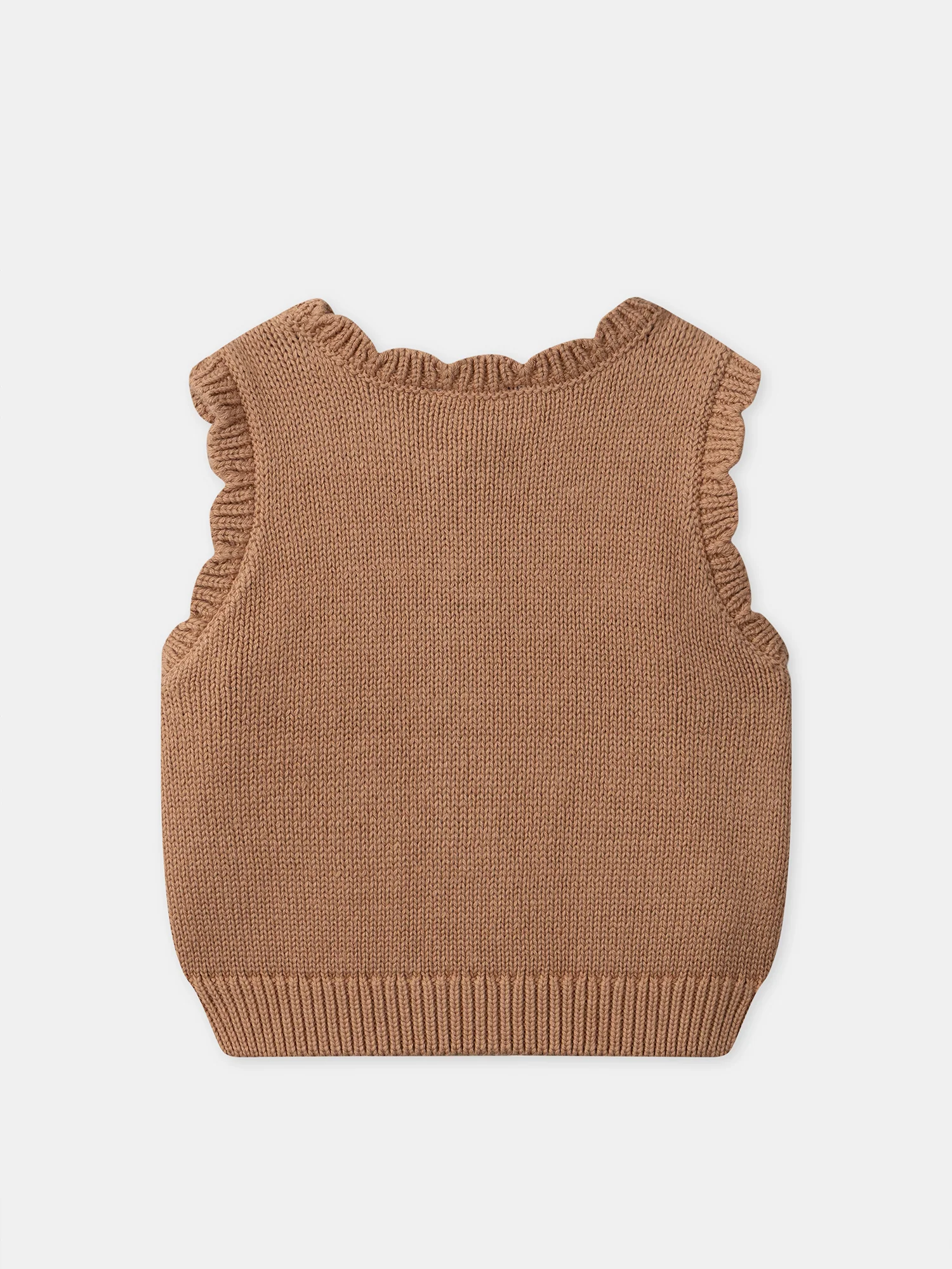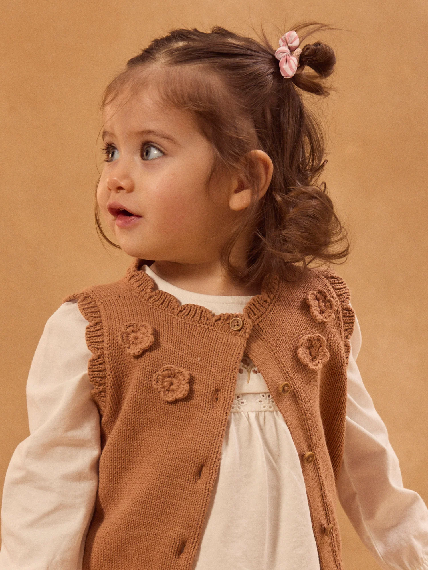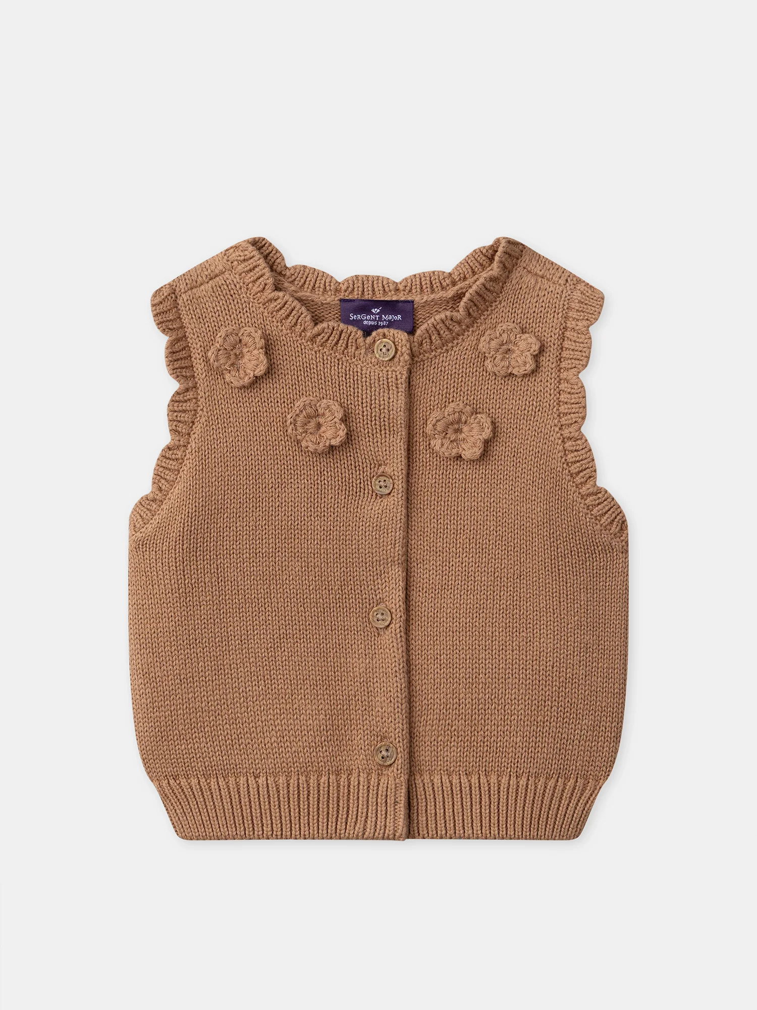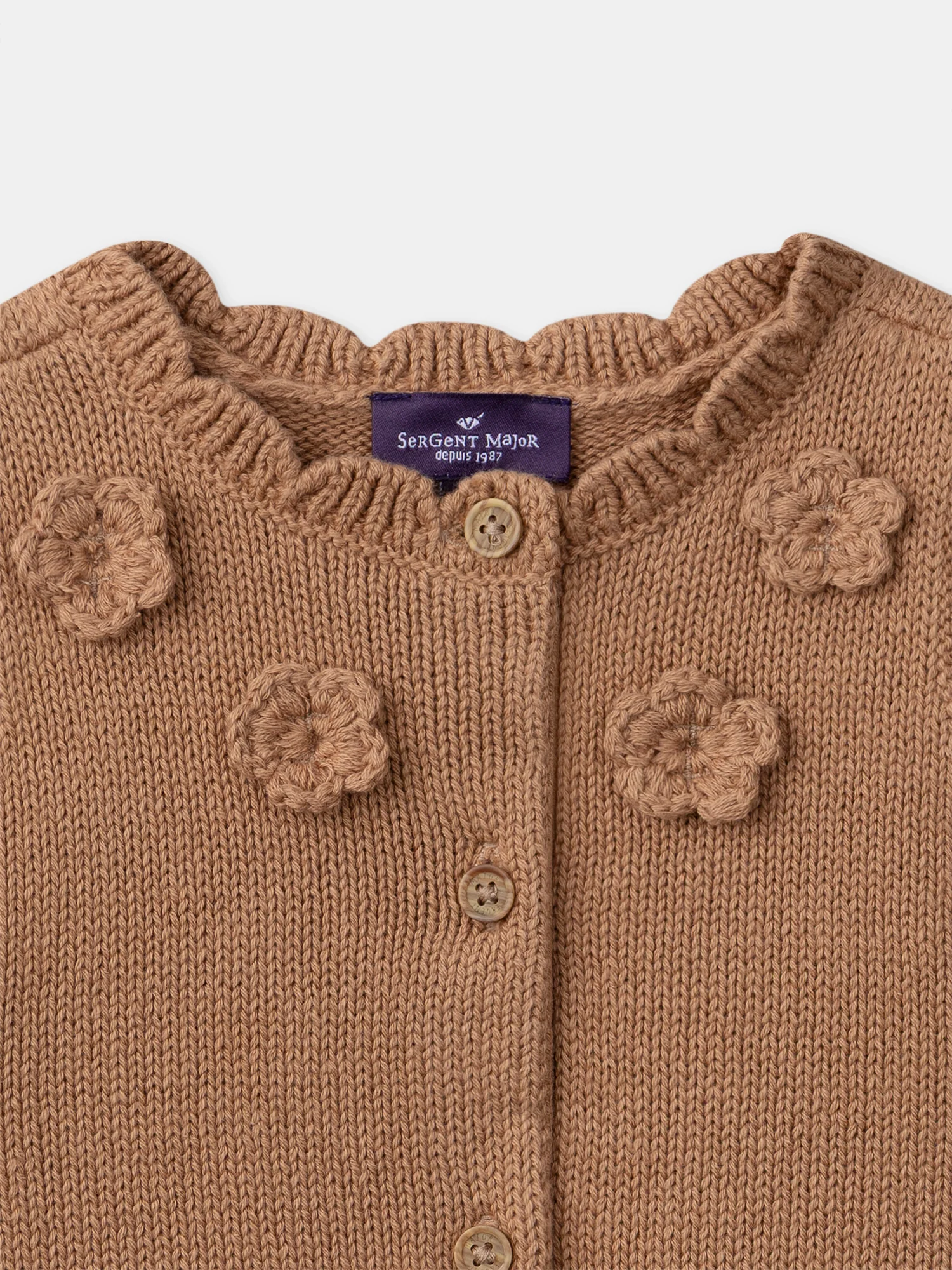 Pour les enfants qui aiment superposer leurs tenues au printemps. Sa maille marron claire est douce et souple. Les fleurs 3D et les finitions coquilles offrent un style délicat.