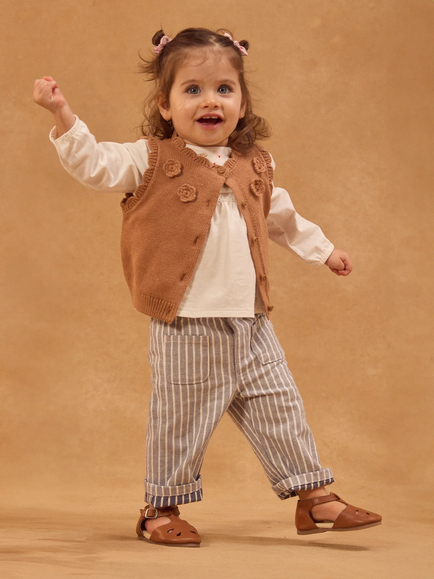 Pour les enfants qui aiment superposer leurs tenues au printemps. Sa maille marron claire est douce et souple. Les fleurs 3D et les finitions coquilles offrent un style délicat. Fleurs en 3D brodées avant Finitions coquilles sur encolure, emmanchures Ouverture avant intégrale par boutons Ce produit appartient à l’Histoire N°3 : Exploration Lointaine.