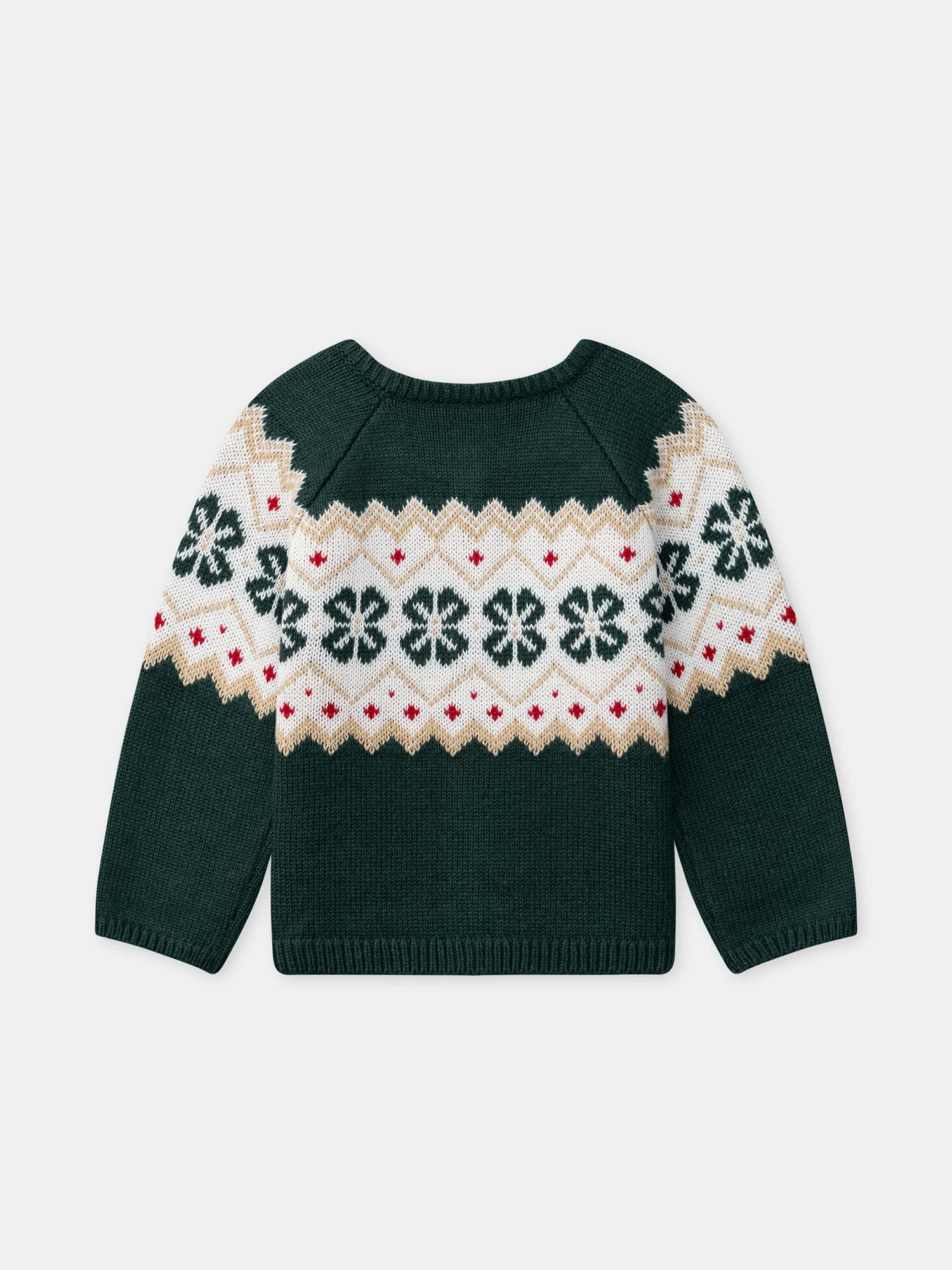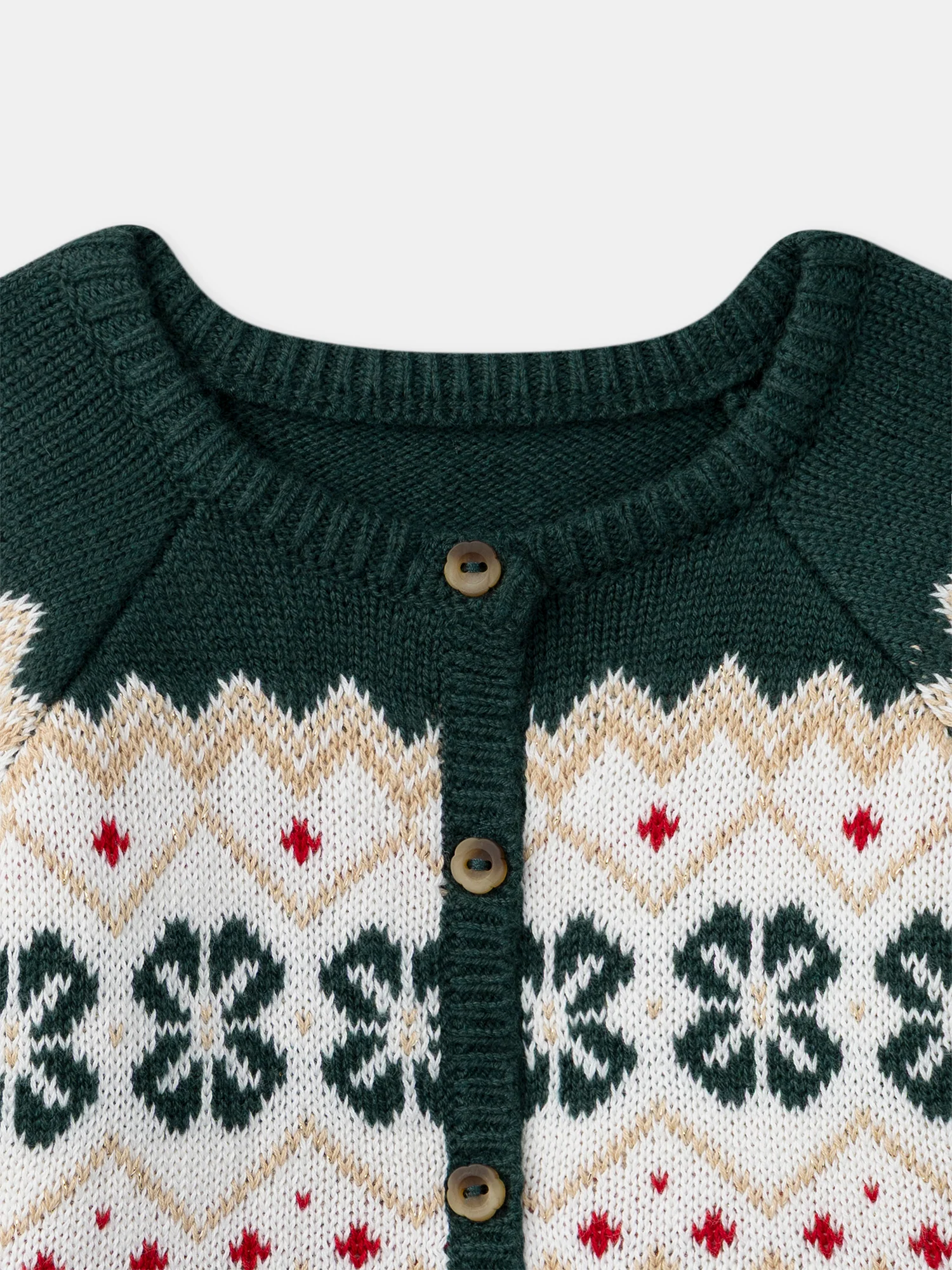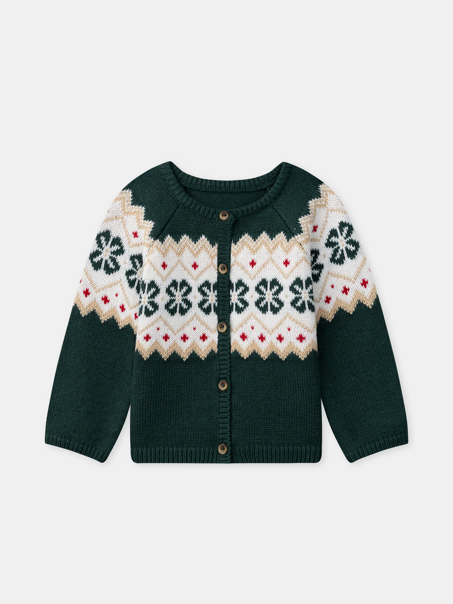Cardigan Noël vert à motif jacquard Bébé Fille