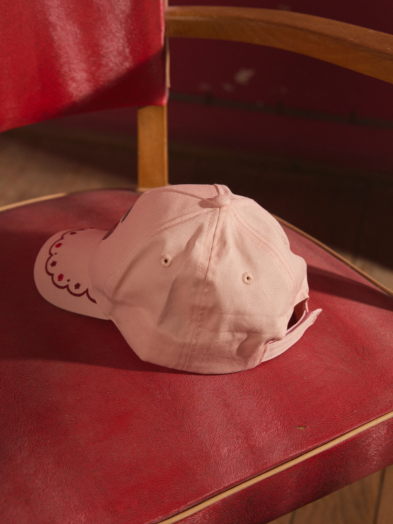 - Frise fleuri rouge brodée sur la visière