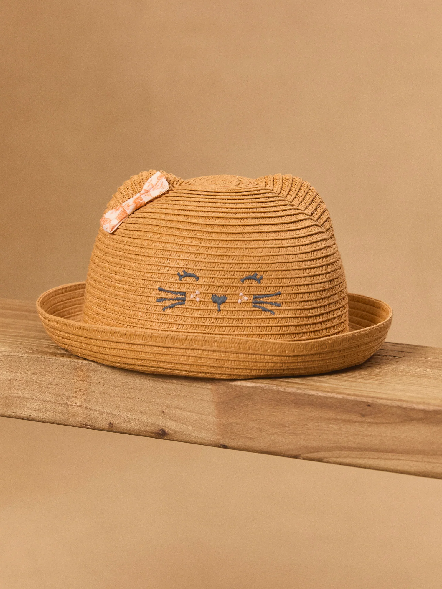 Ce chapeau de paille est conçu pour une petite fille espiègle, idéal pour les journées ensoleillées de printemps ou d’été. Il est fait de paille légère et dispose d’un lien à nouer sous le menton pour un maintien confortable. Avec sa forme originale d’oreilles de chat, un joli noeud au-dessus de la tête et une impression de tête de chat sur l’avant, il ajoute une touche ludique et adorable à ses tenues estivales.