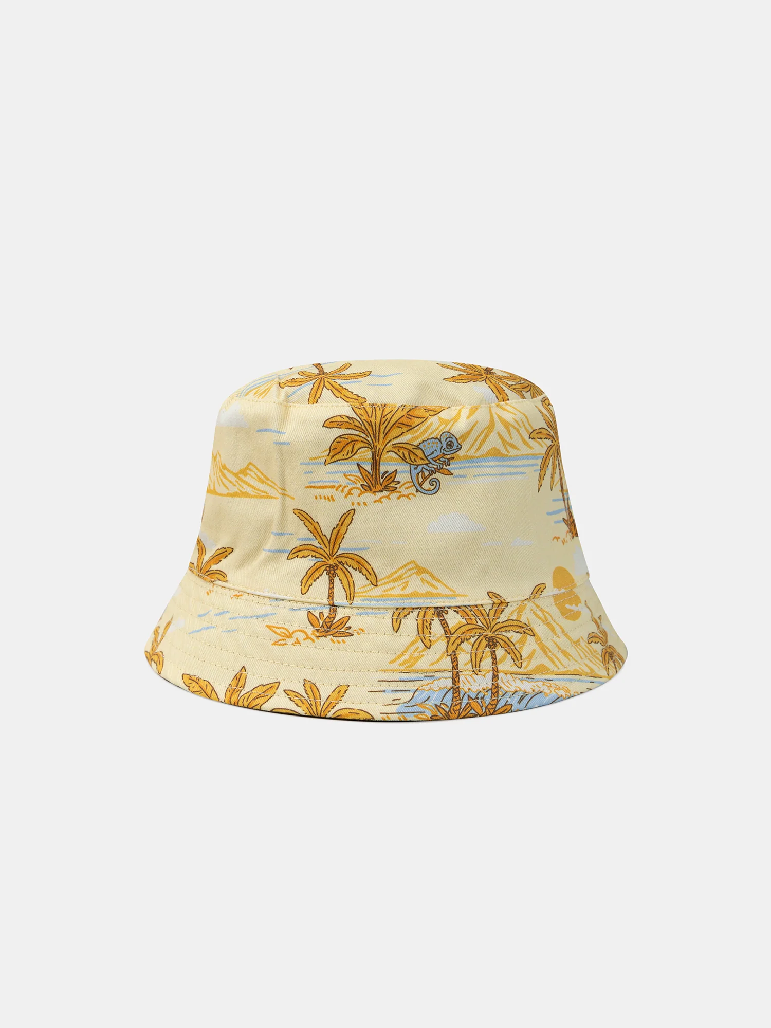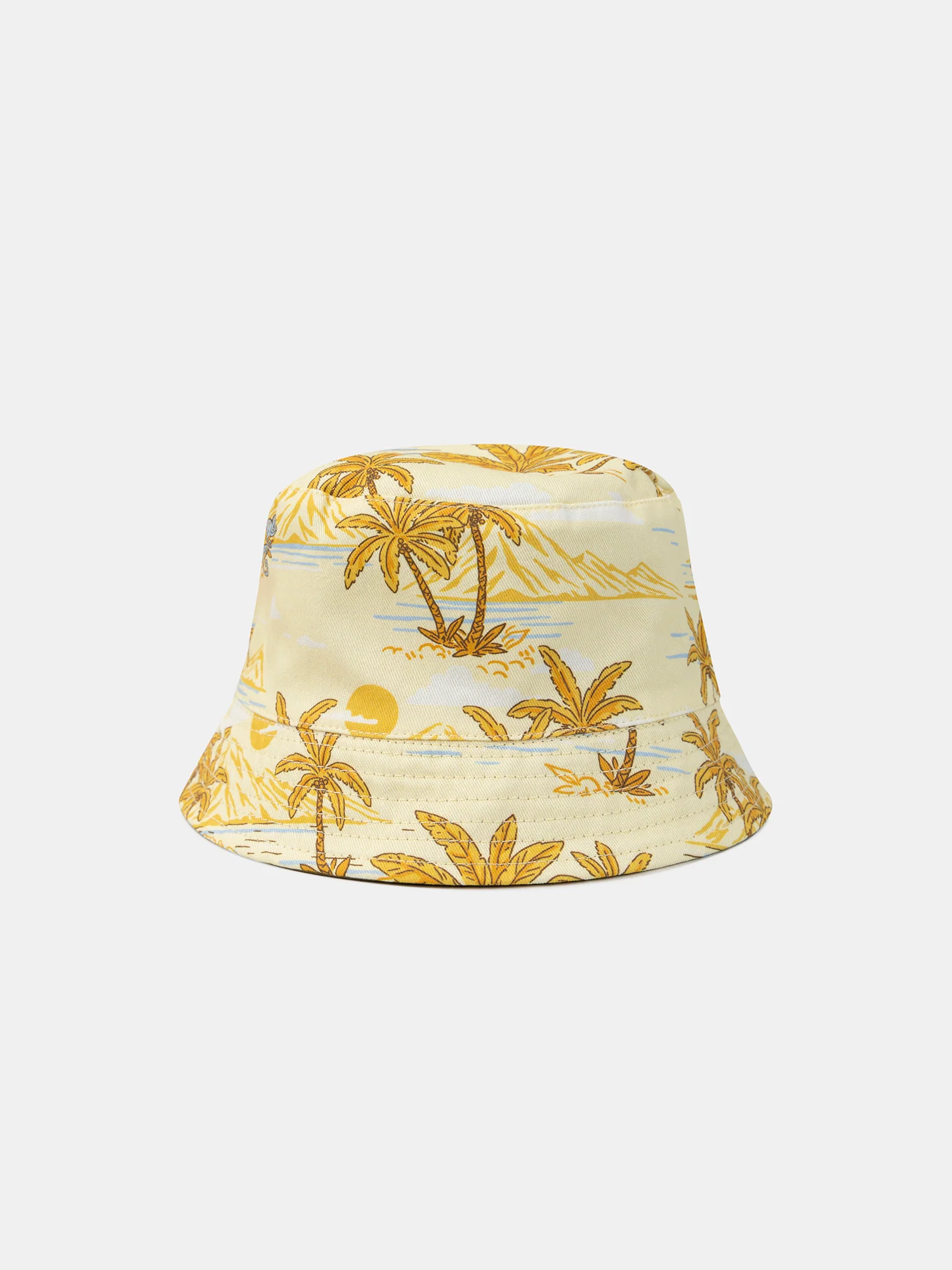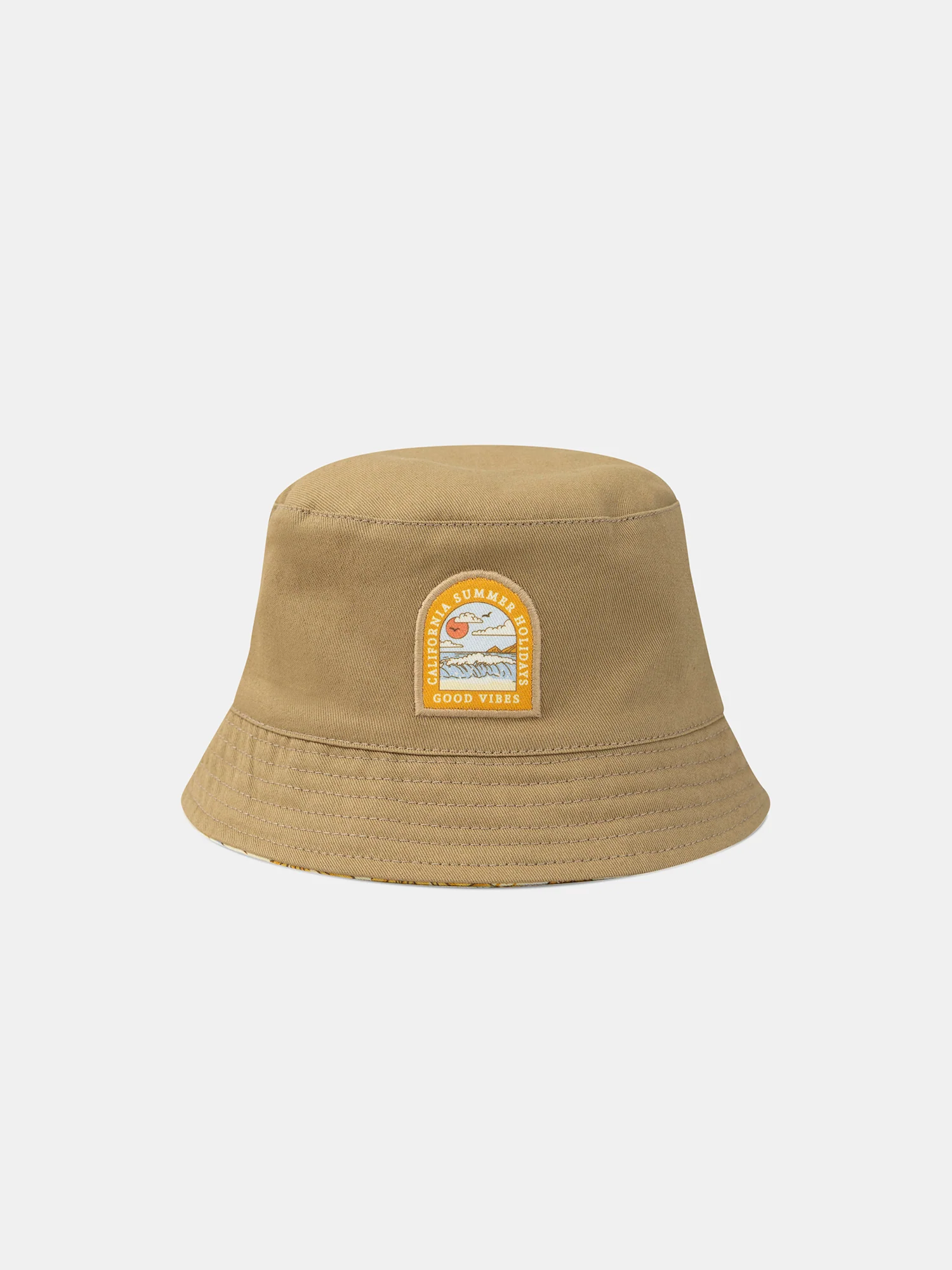 Ce chapeau réversible est parfait pour offrir deux looks dans un seul accessoire. D’un côté, il présente un fond marron avec un patch tissé « California summer holidays good vibes », tandis que de l’autre côté, il offre un fond jaune pastel avec une impression de palmiers et plages. Pratique et stylé, il s’adapte aux envies de votre enfant avec sa réversibilité.