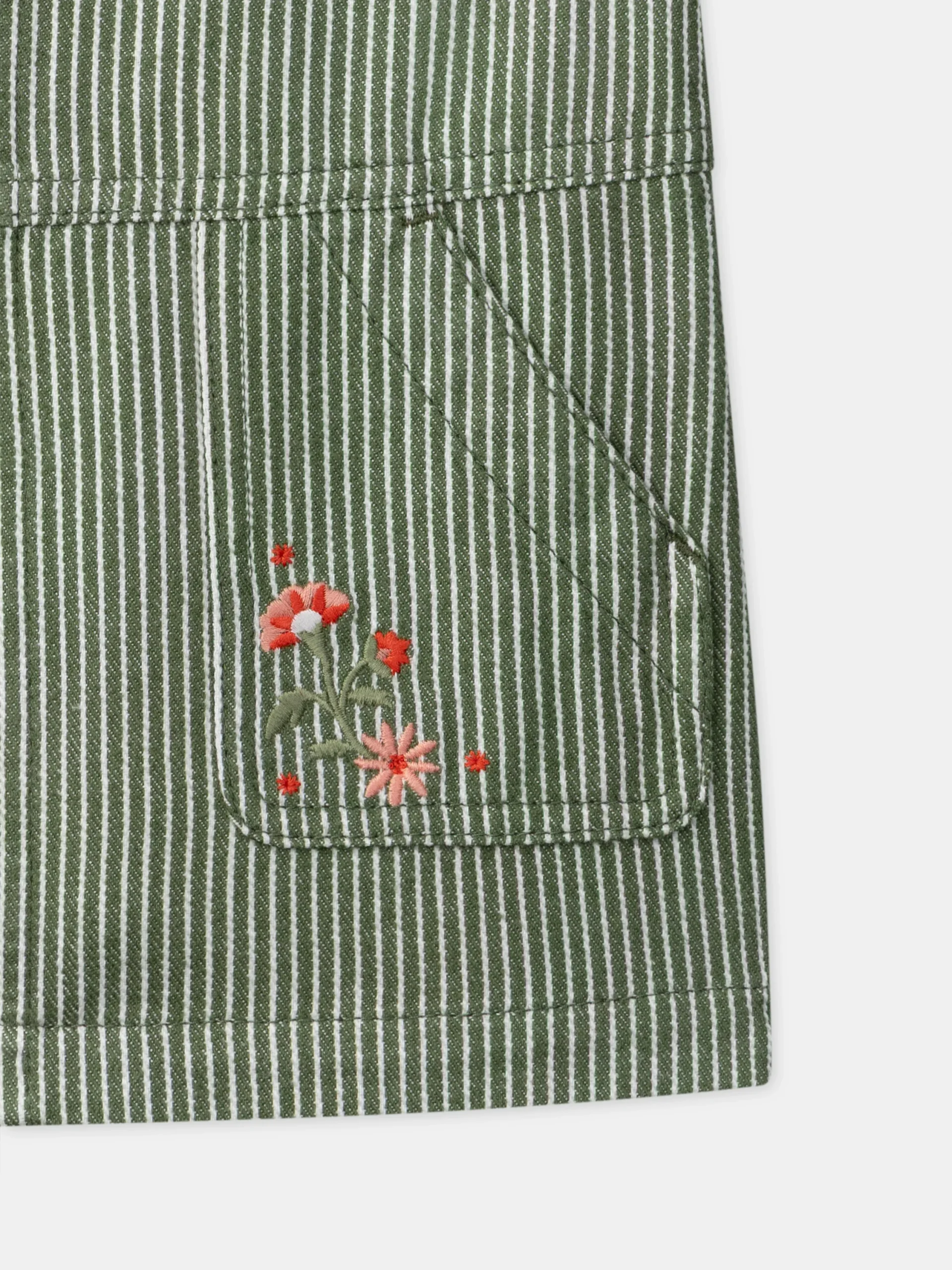 Pour une enfant libre de ses mouvements, parfaite en mi-saison. La coupe ajustable et les pressions garantissent confort. Les rayures et broderies fleurs créent un univers champêtre.