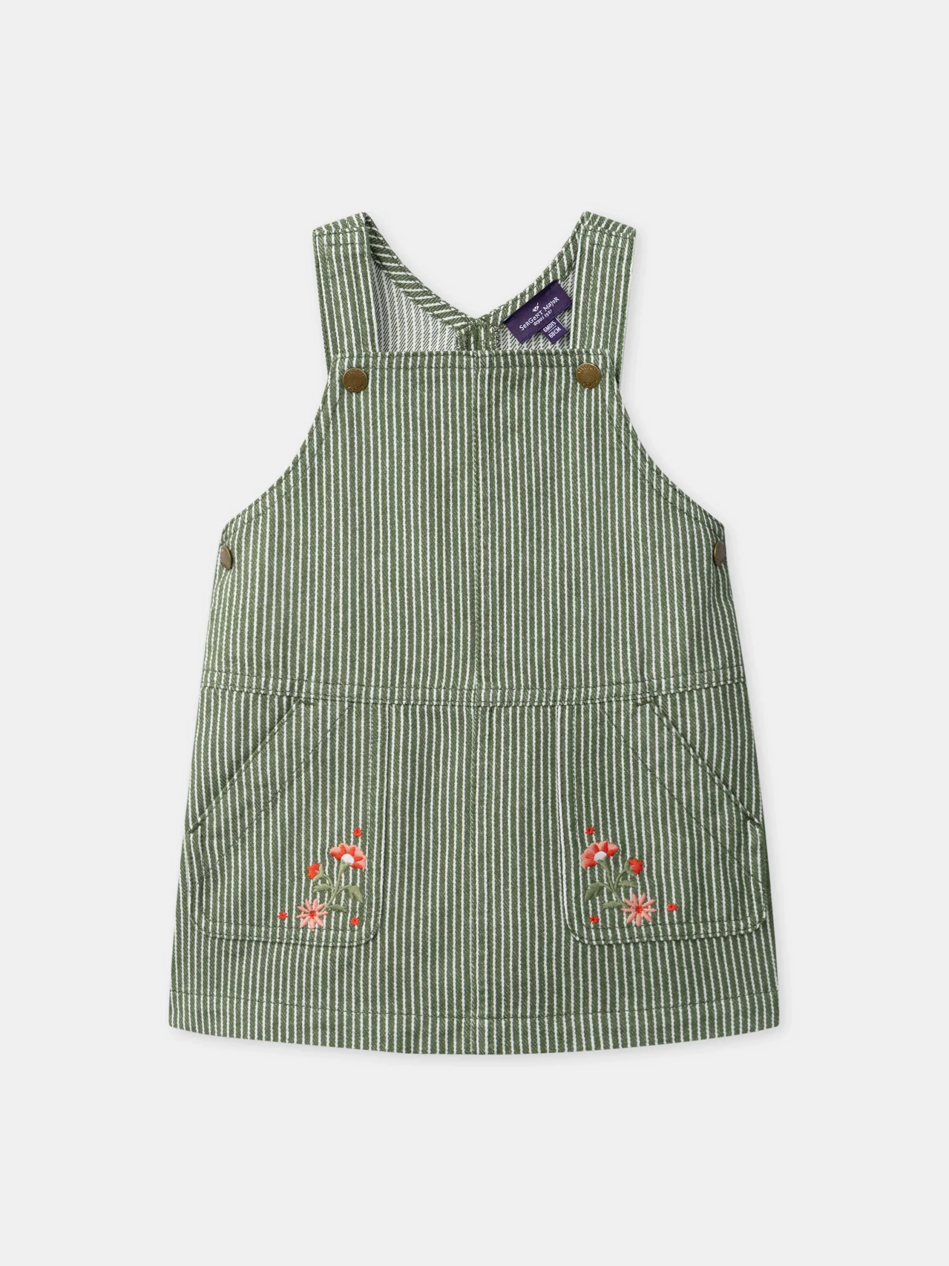 Pour une enfant libre de ses mouvements, parfaite en mi-saison. La coupe ajustable et les pressions garantissent confort. Les rayures et broderies fleurs créent un univers champêtre. 2 poches avant avec broderies fleurs corails et kaki Bretelles ajustables par boutons à pression Ouverture taille par boutons à pression Vignette tissée dos « Baby 1987 Sergent Major » […]