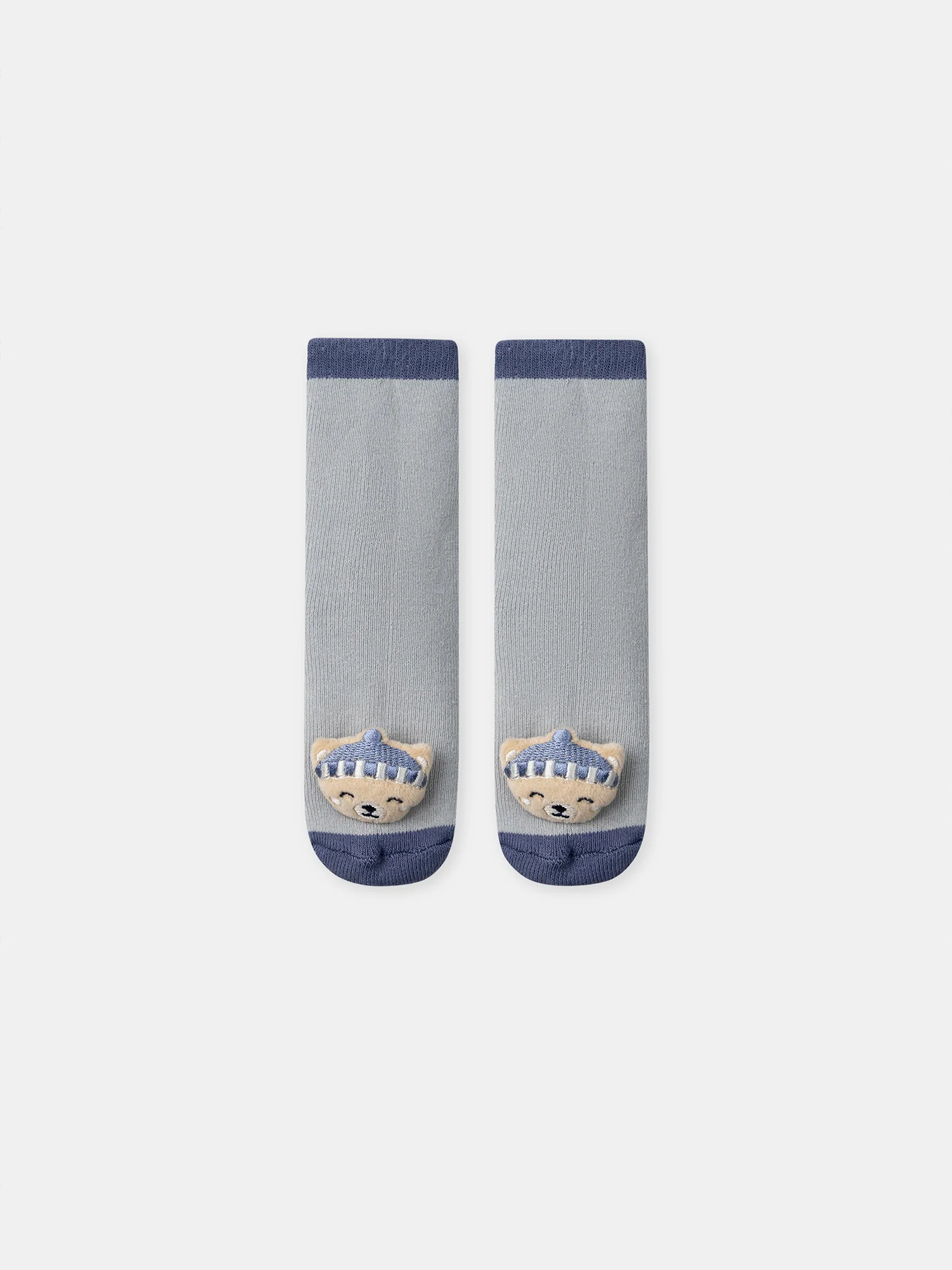 Chaussette bleu grisé avec tête d’ours Bébé Garçon