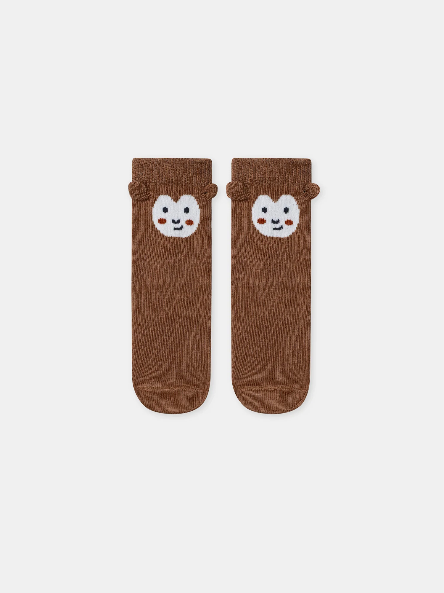 Pour les enfants qui aiment les accessoires amusants. Leur maille douce apporte confort, le visage singe et les oreilles 3D ajoutent une touche joyeuse. Jacquard visage de singe sur le dessus Marron uni Oreilles 3D Ce produit appartient à l’Histoire N°3 : Exploration Lointaine.