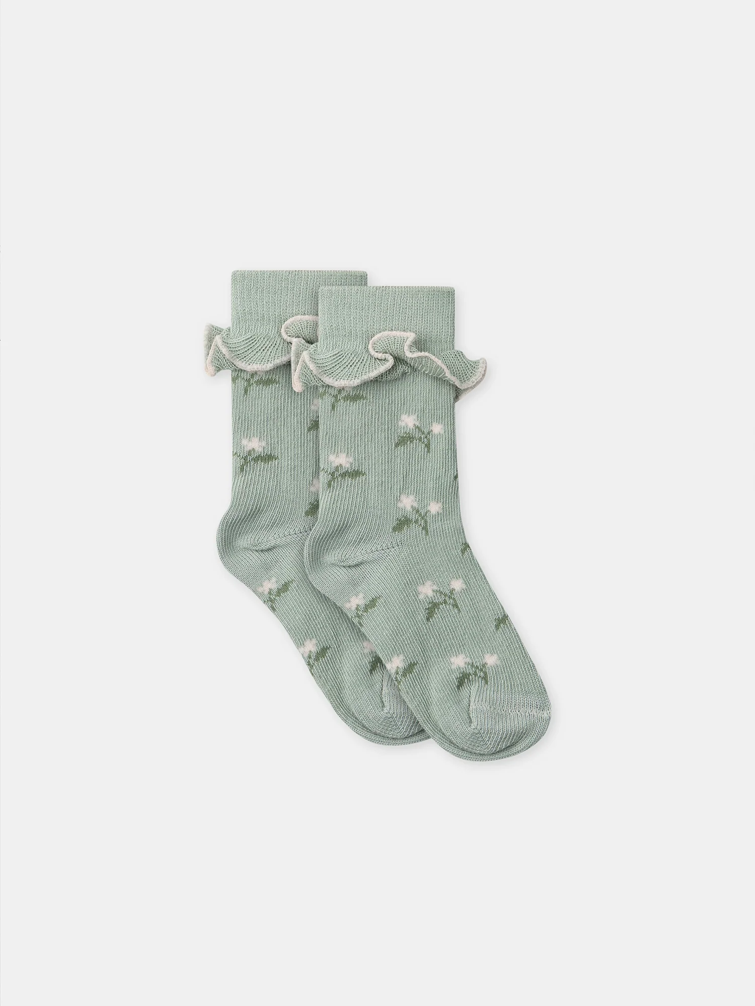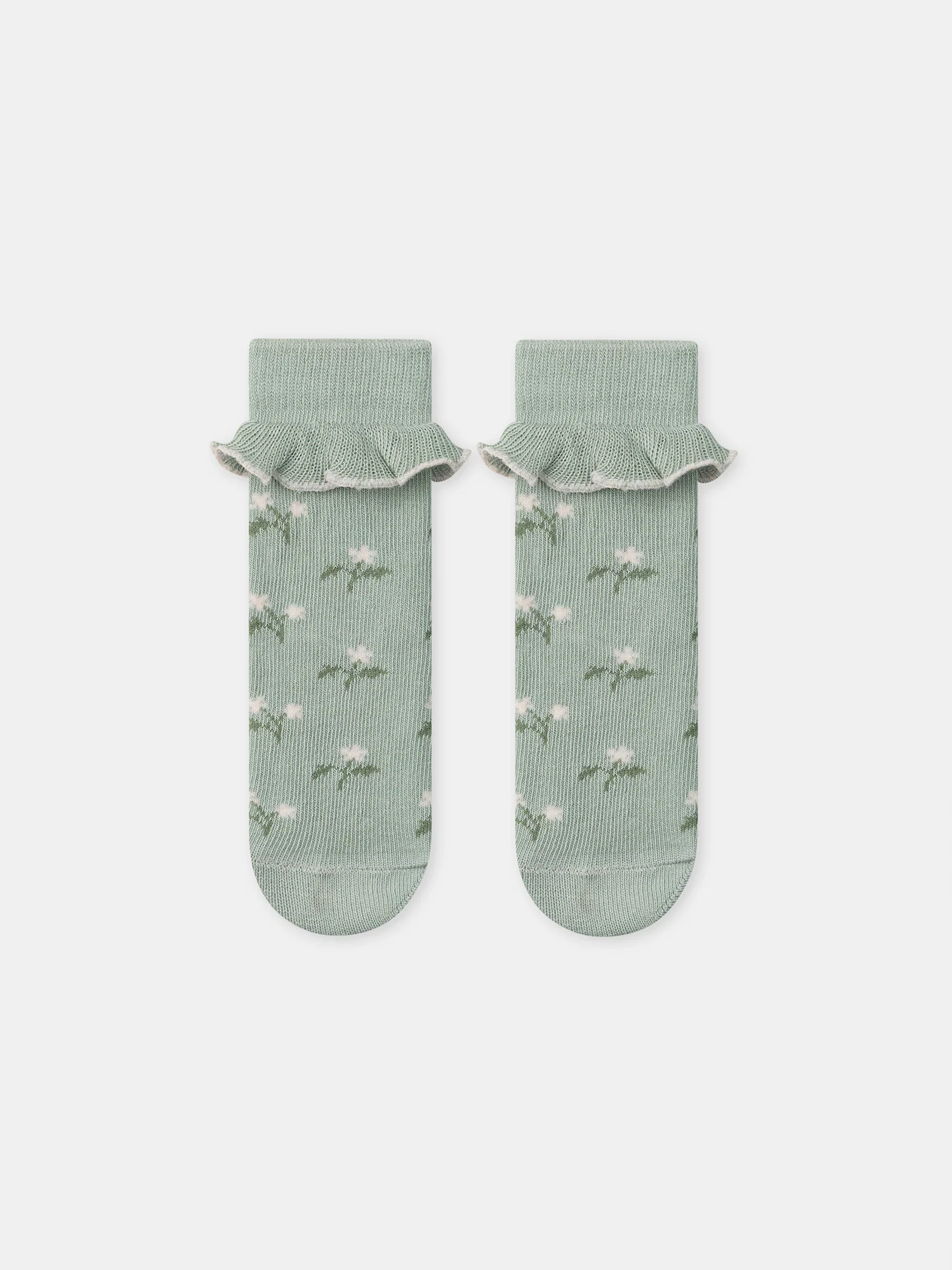 Chaussettes vertes à fleurs et volants Bébé Fille