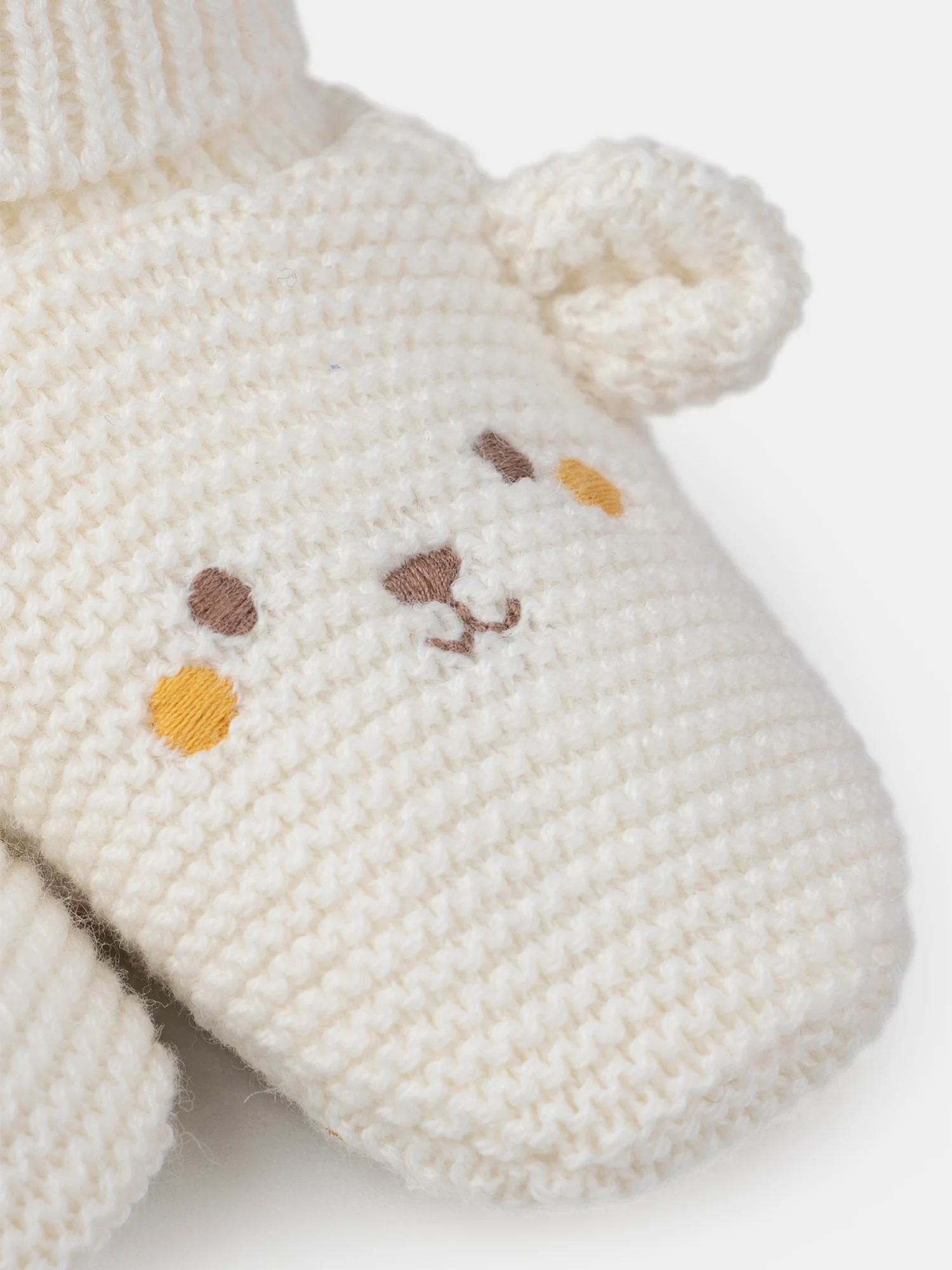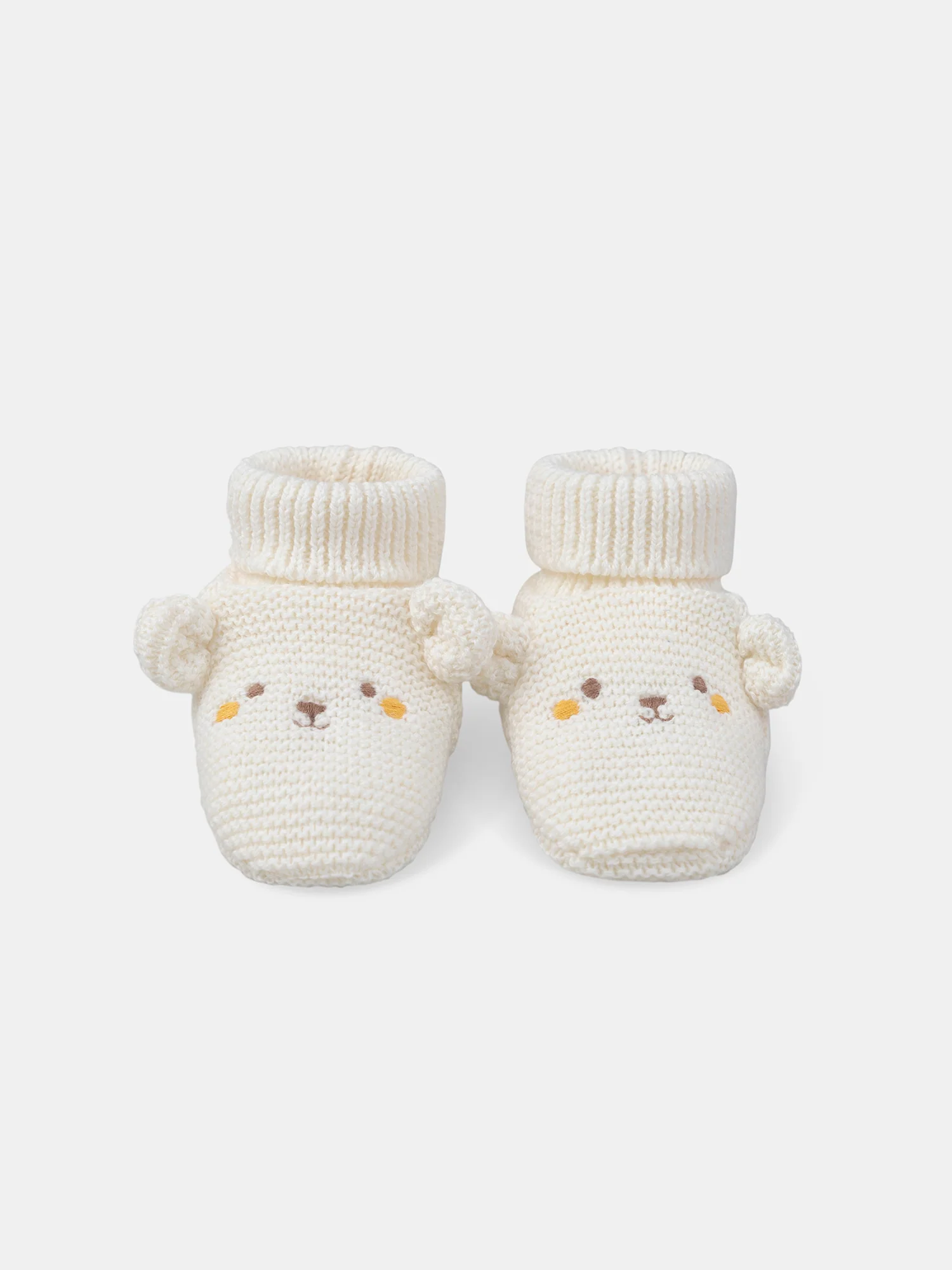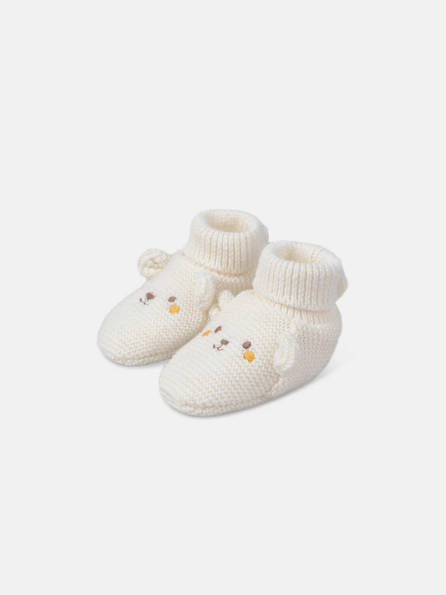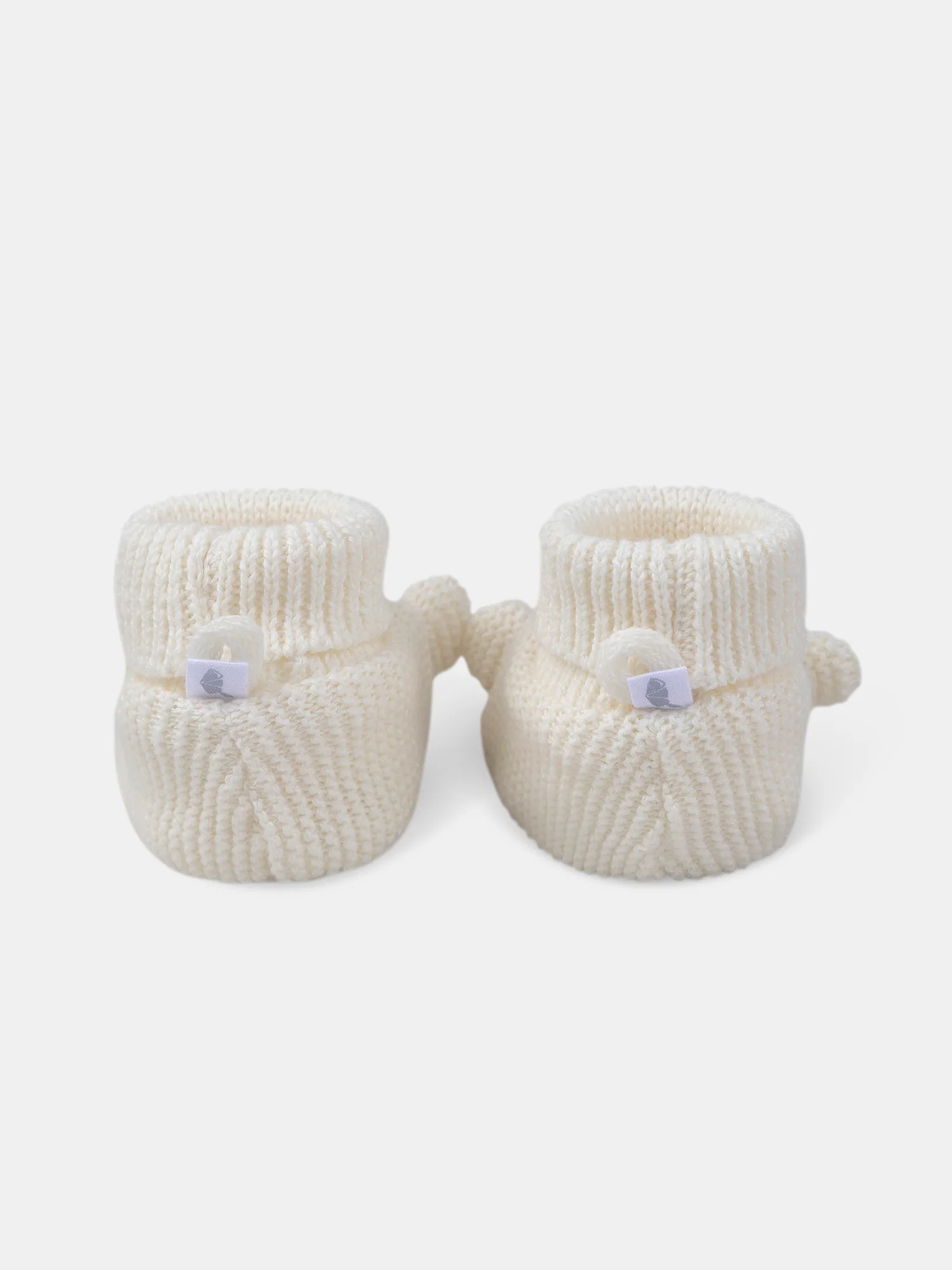- Chaussons de naissance en point mousse de couleur ivoire en coton et laine