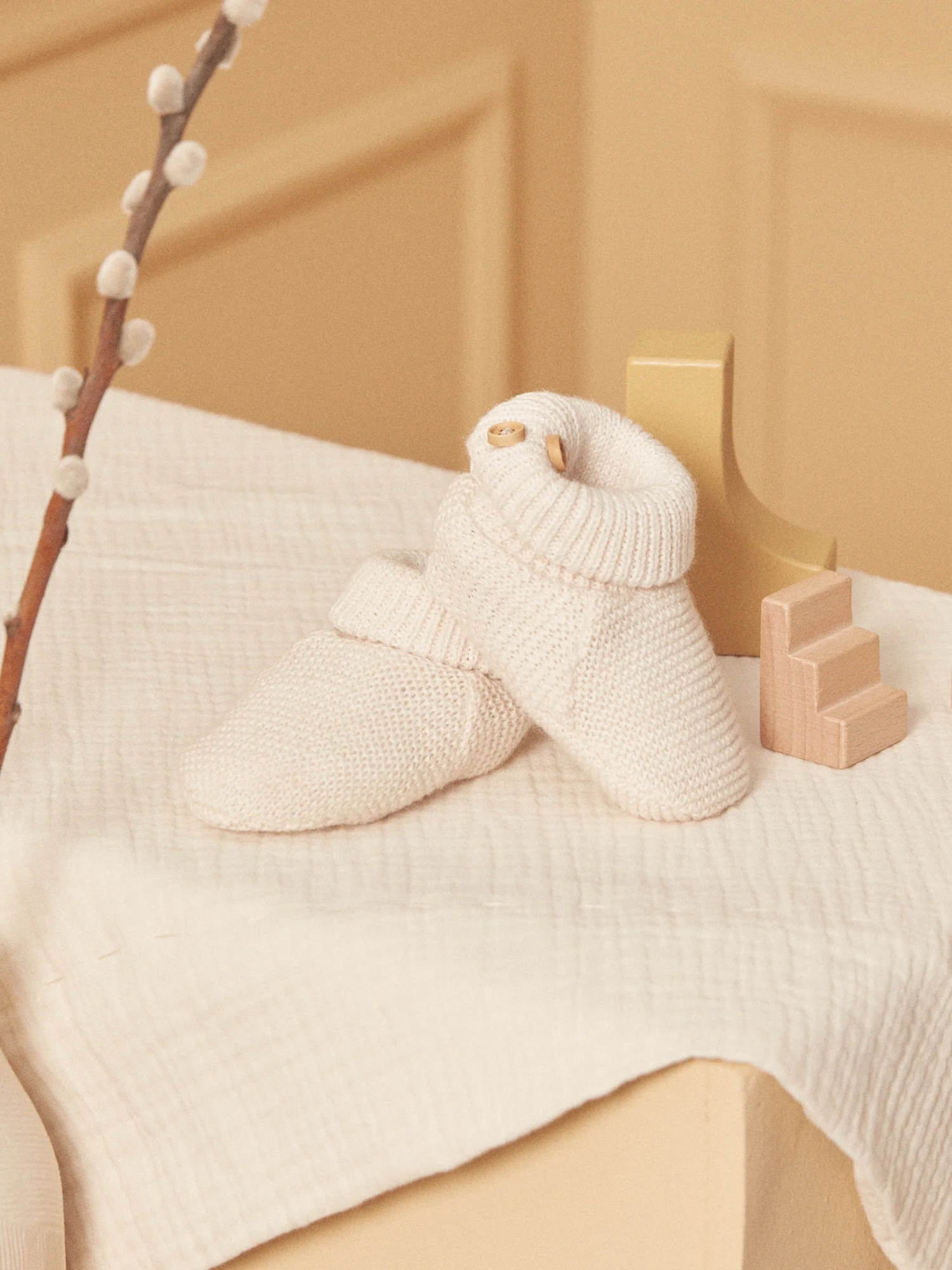 Chaussons de naissance écrus.