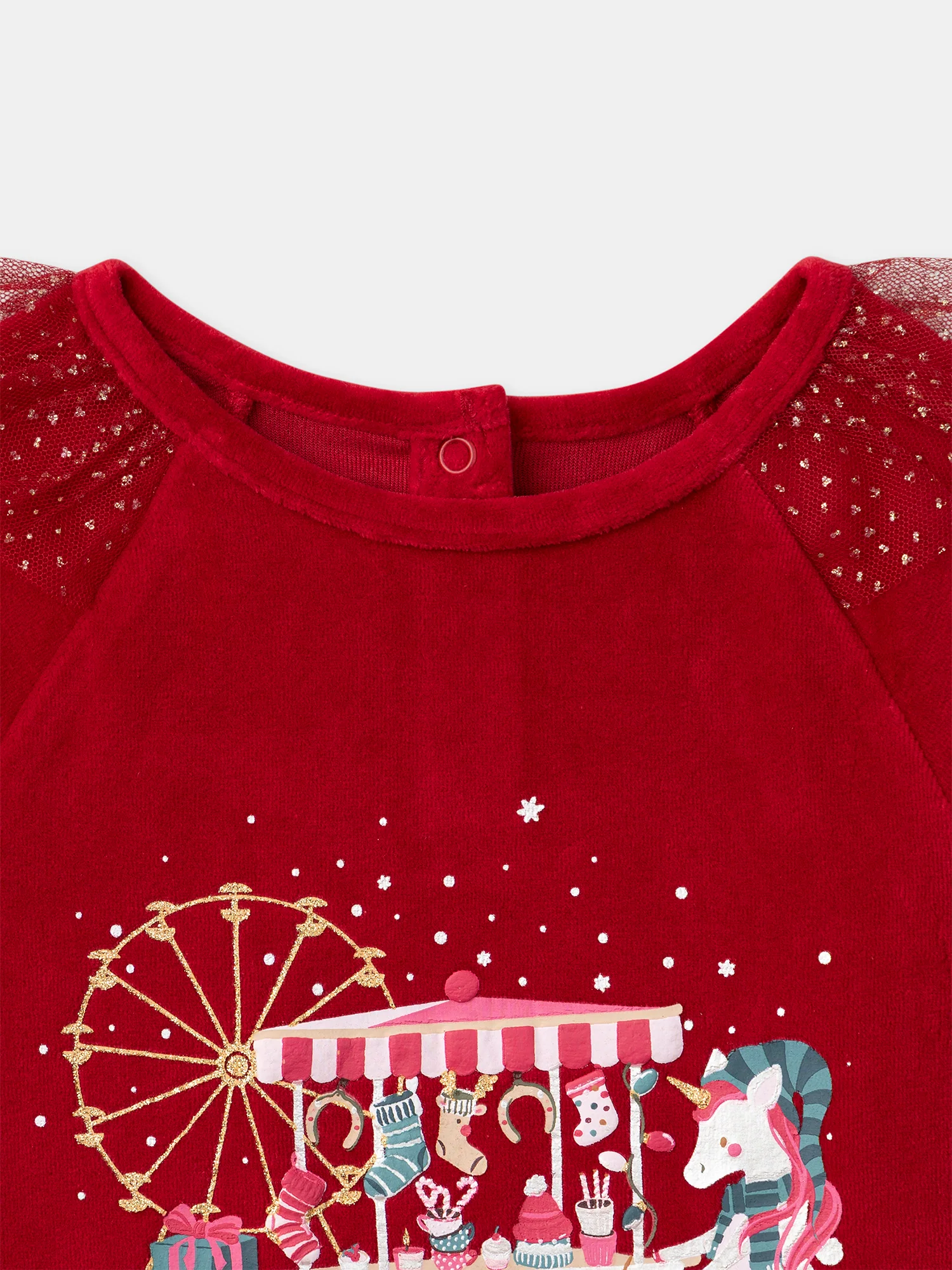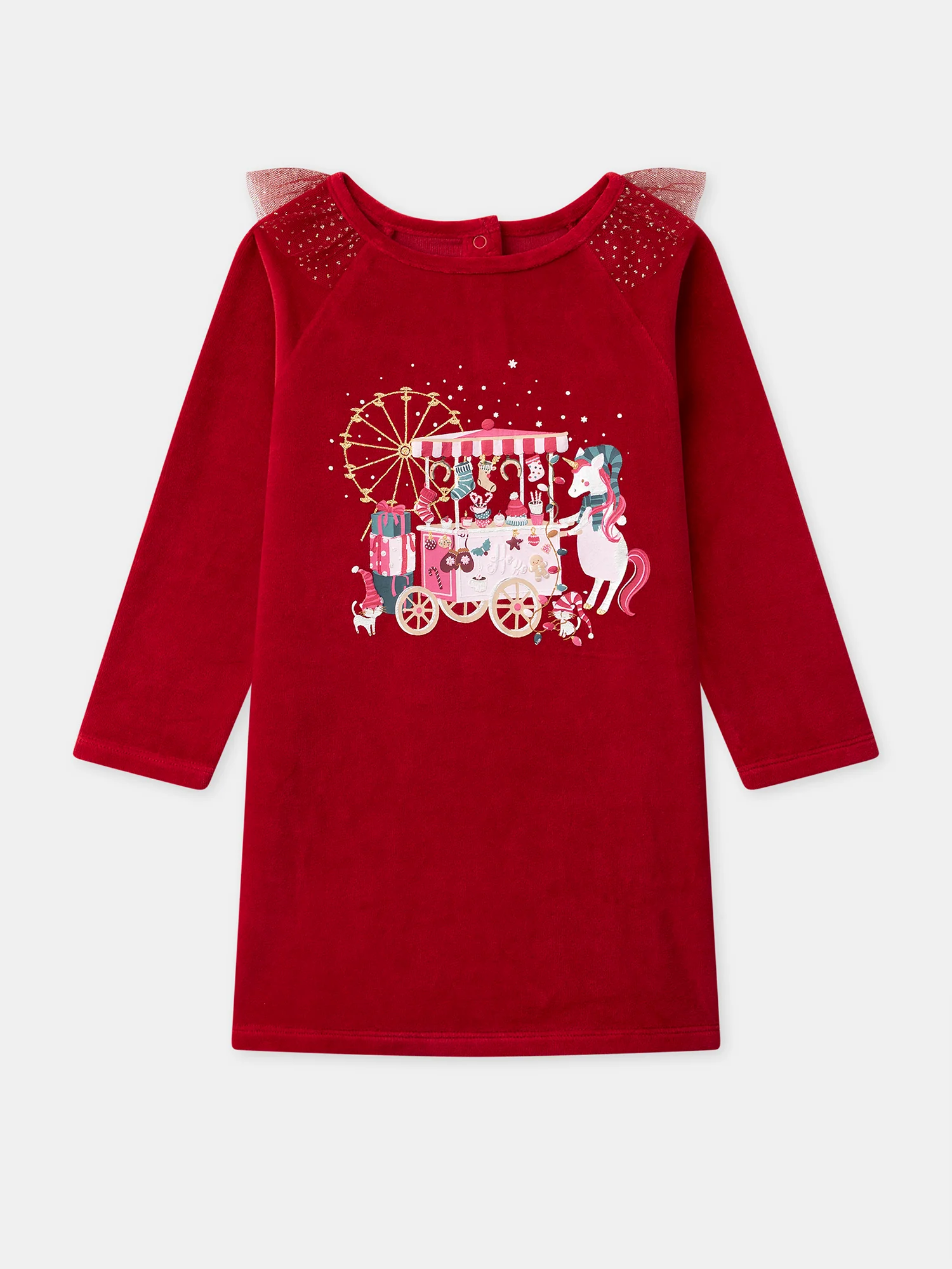 Destinée aux petites passionnées d’imaginaire, cette chemise de nuit est idéale pour les fêtes hivernales. En velours doux avec legging assorti, elle offre praticité et confort grâce à sa taille élastiquée. Ses volants pailletés et sa licorne irisée accompagnent les rêves enchantés de Noël.