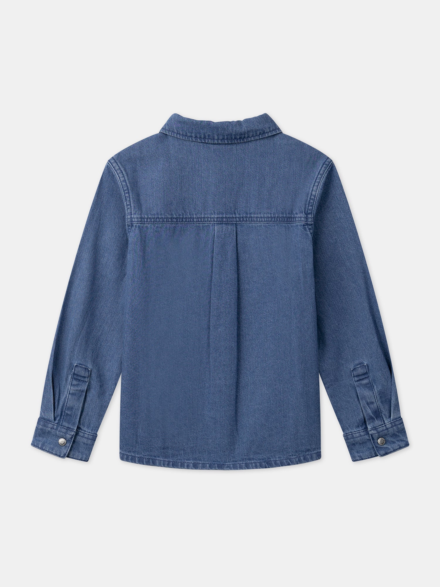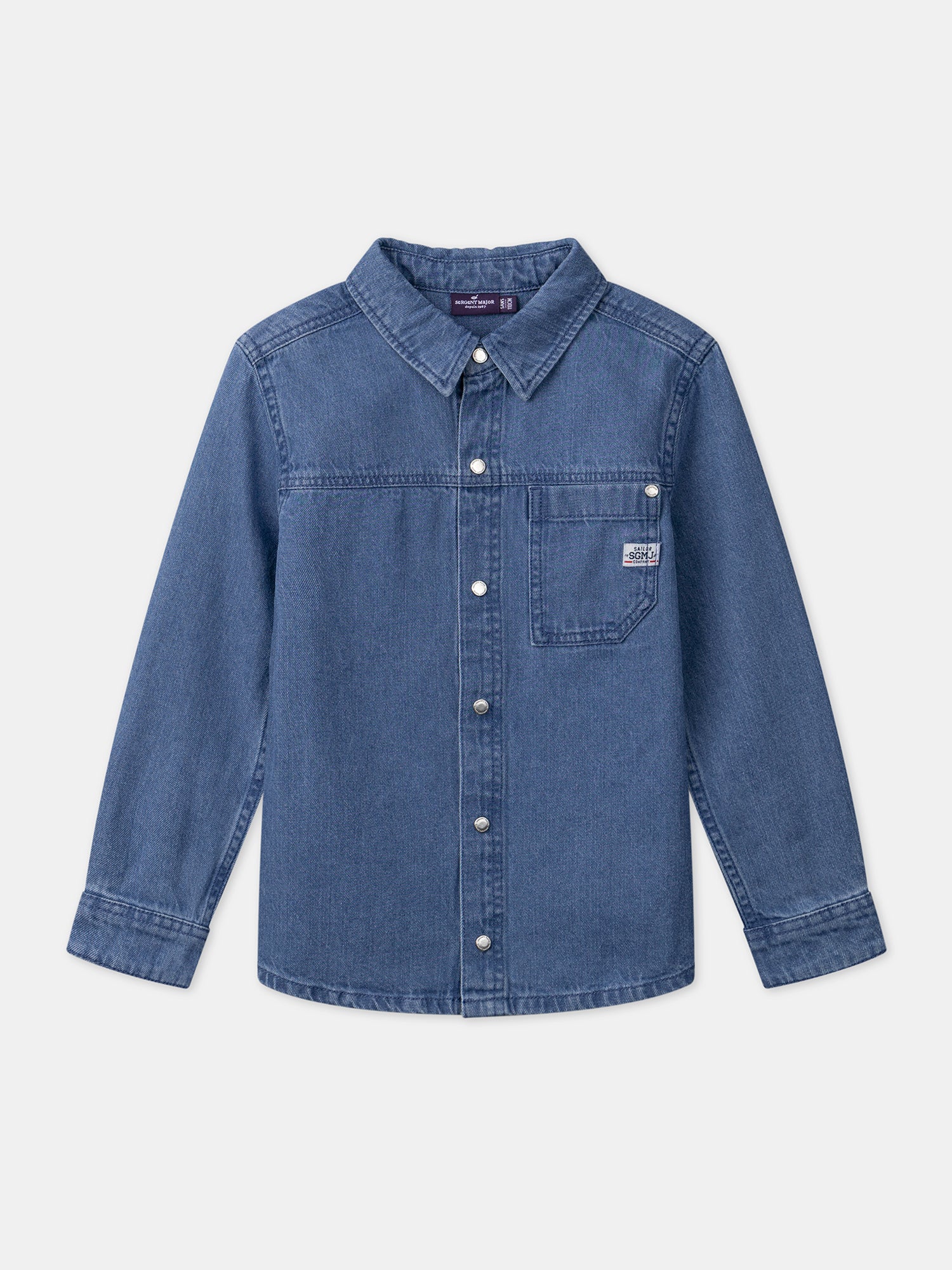Cette chemise en denim est idéale pour les petits garçons au style décontracté, parfaite pour les journées d’automne ou de printemps. Avec sa poche poitrine dotée d’une étiquette tissée, elle allie praticité et élégance. L’ouverture à boutons-pression sur le devant et aux poignets facilite l’habillage tout en ajoutant une touche moderne à ce classique intemporel.