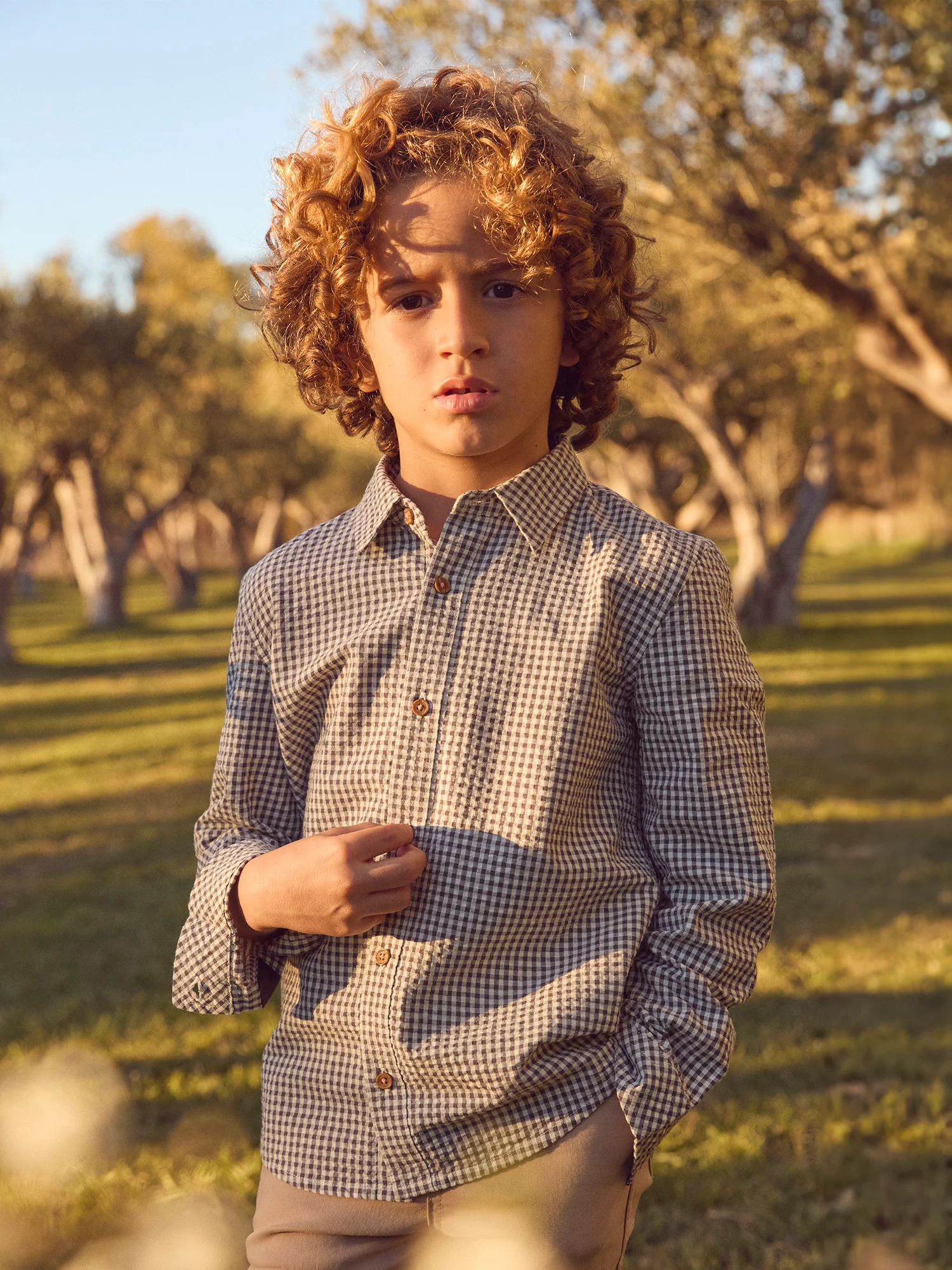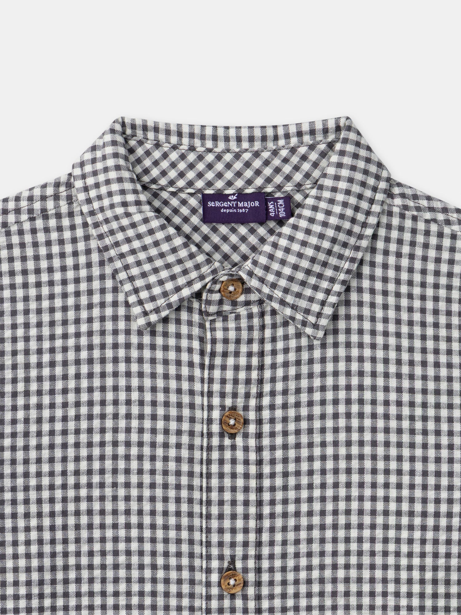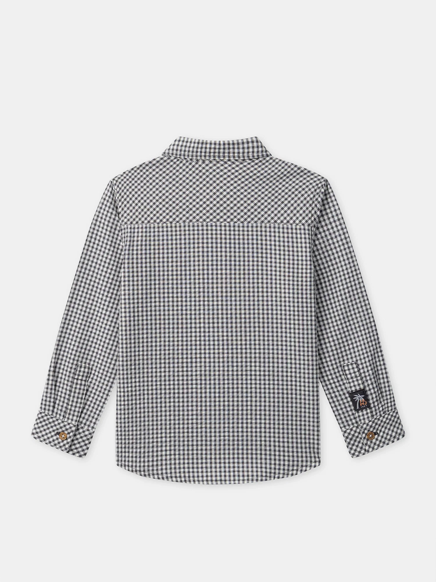 Pensée pour un enfant élégant au quotidien. Sa matière texturée apporte confort. Les petits carreaux et l’étiquette donnent un style classique revisité. Petits carreaux gris anthracite Matière texturée Ouverture boutonnée aux poignets Etiquette tissée sur l’un des poignets Ouverture boutonnée sur l’avant Ce produit appartient à l’Histoire N°3 : Exploration Lointaine.