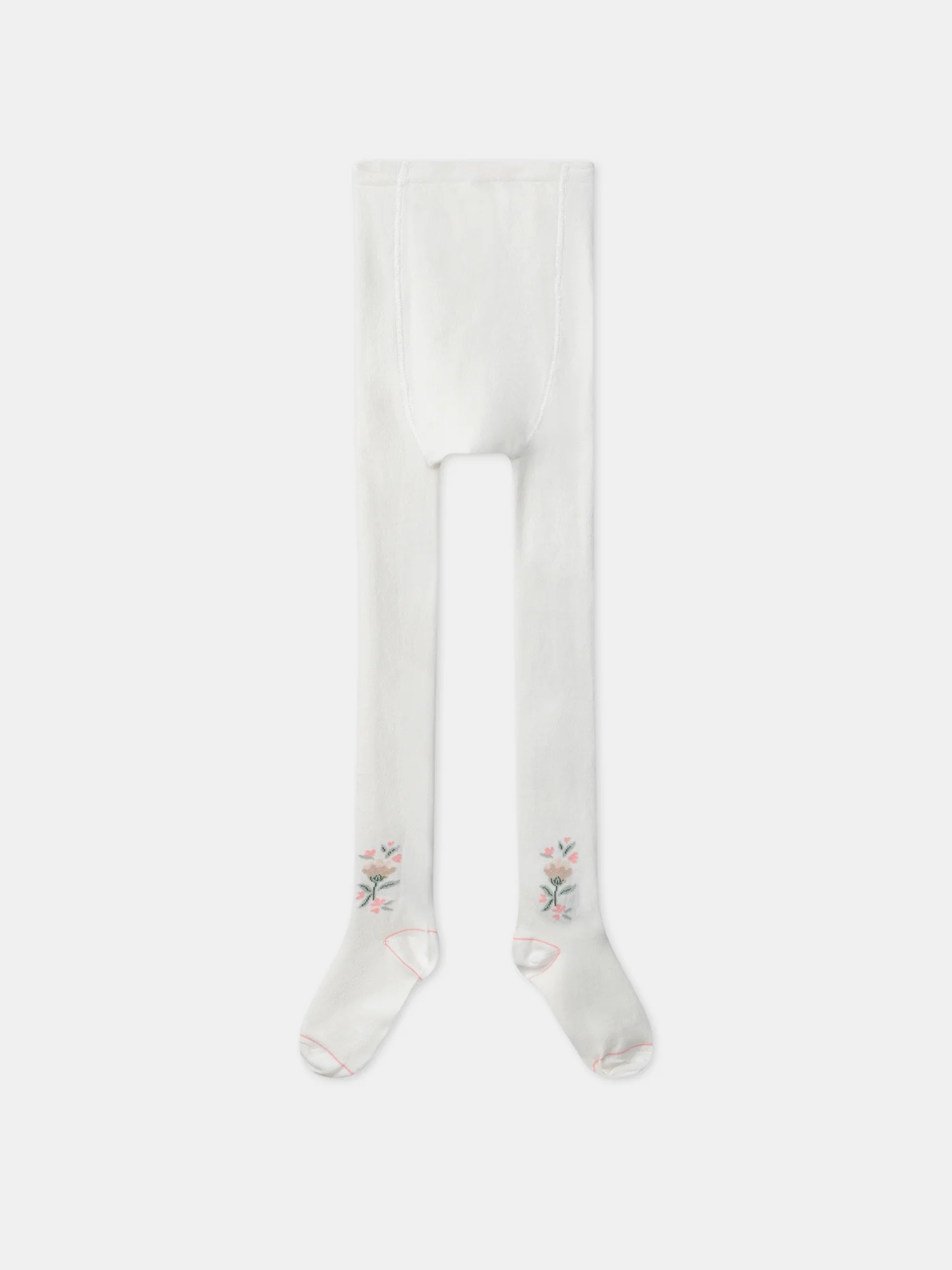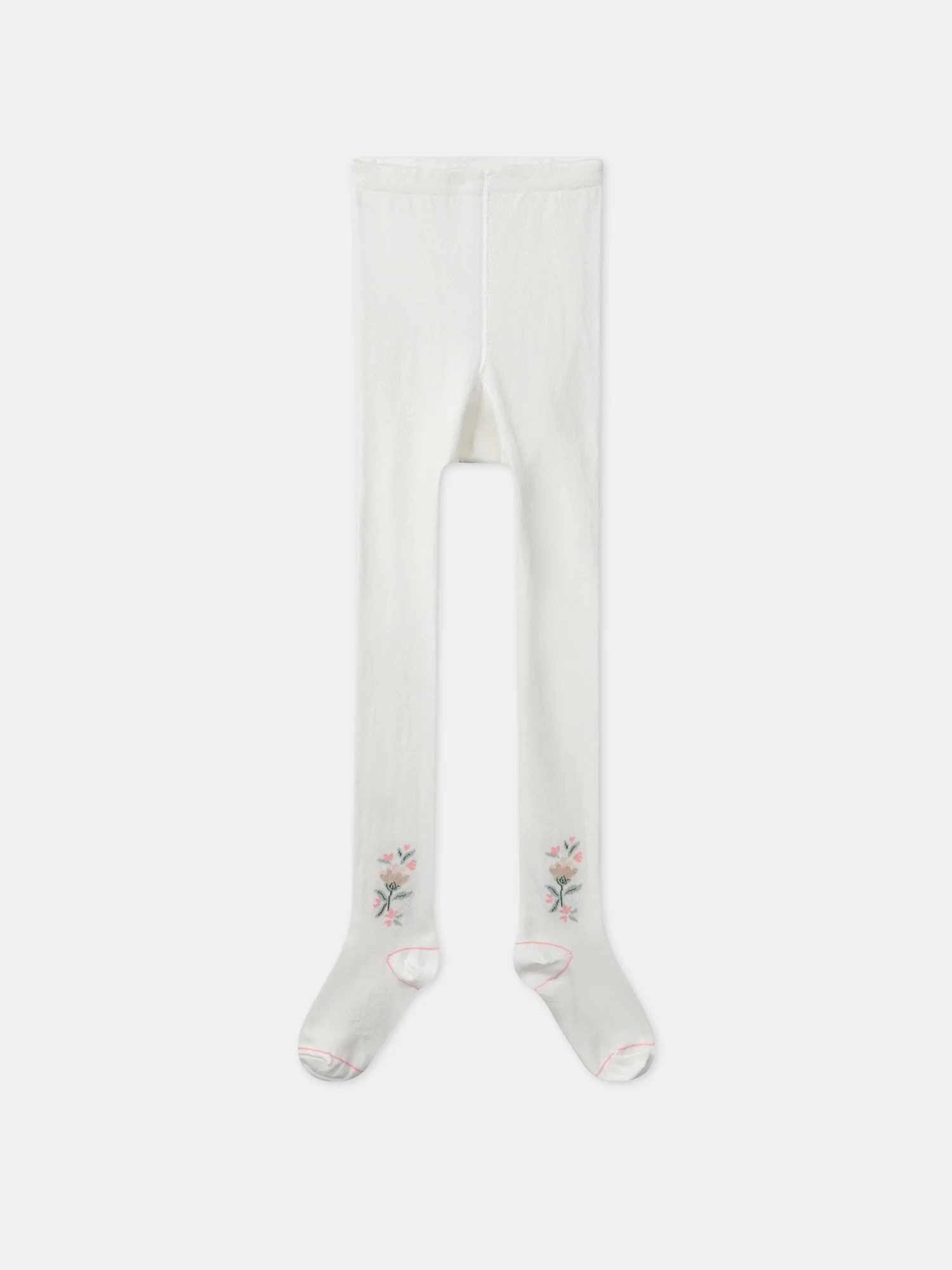 Ces collants écrus jacquard fleurs ajoutent une touche délicate à toutes les tenues. Le fond écru est agrémenté de motifs jacquard fleurs au niveau des chevilles, tandis qu’une ligne rose sur les pointes et les talons apporte une finition colorée et élégante.