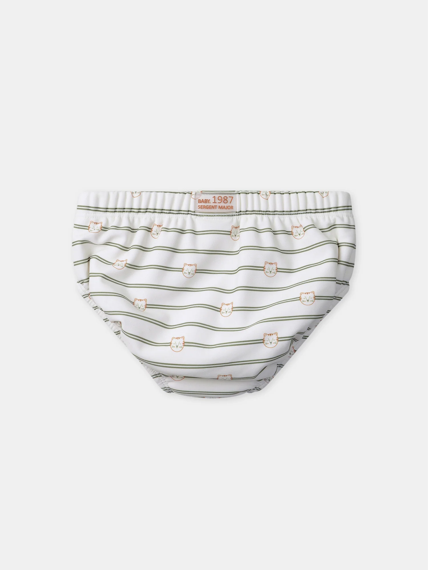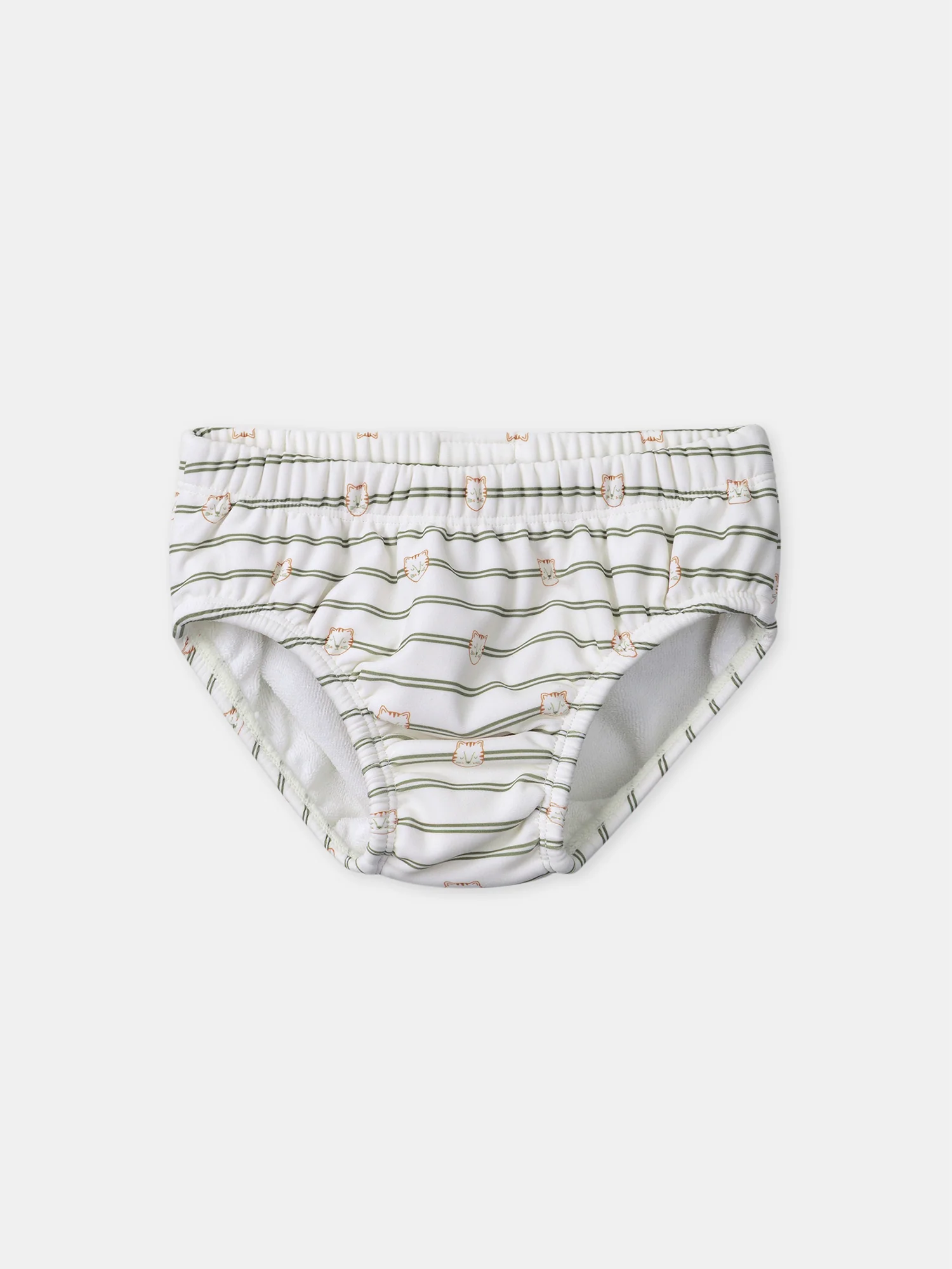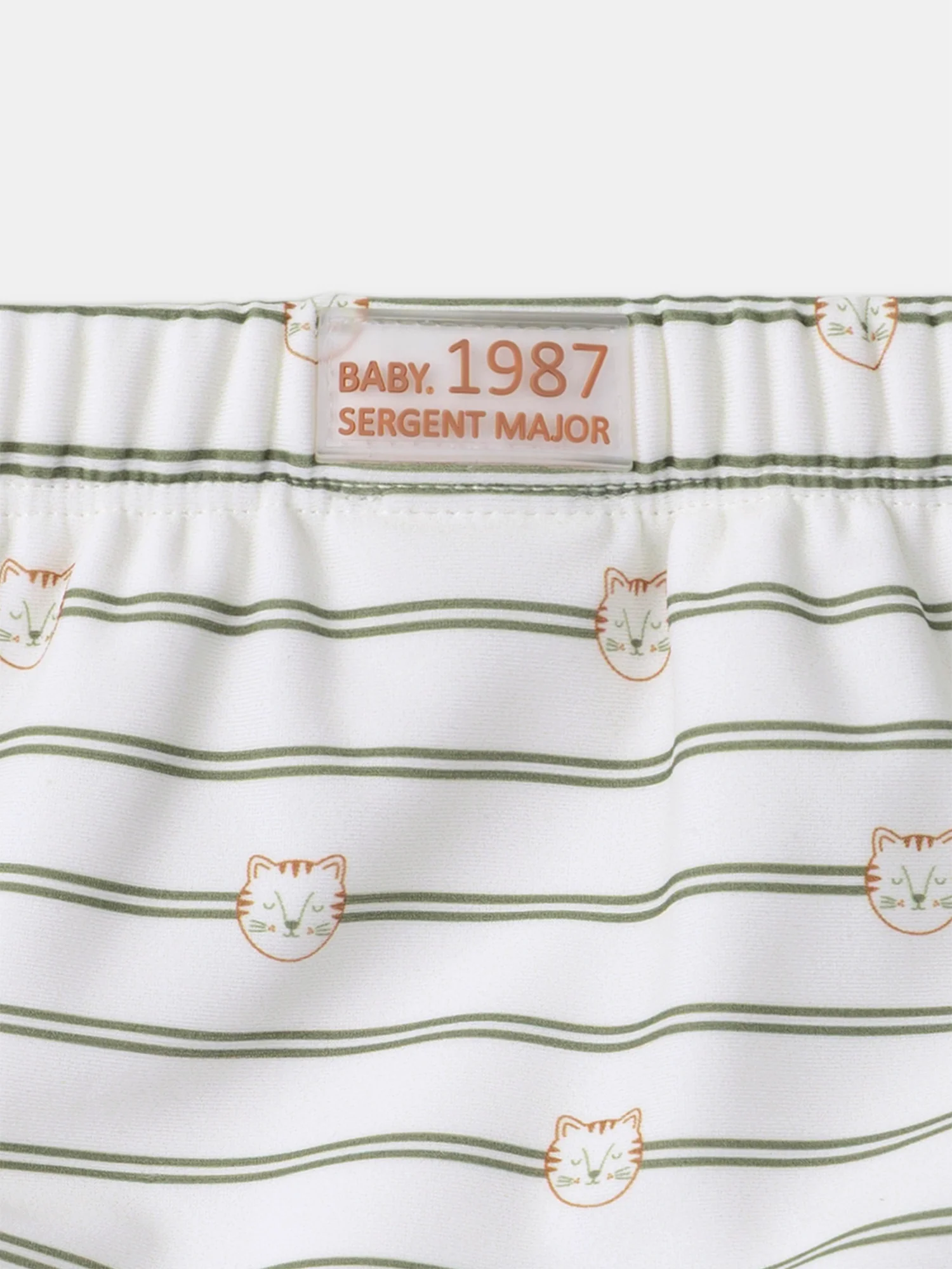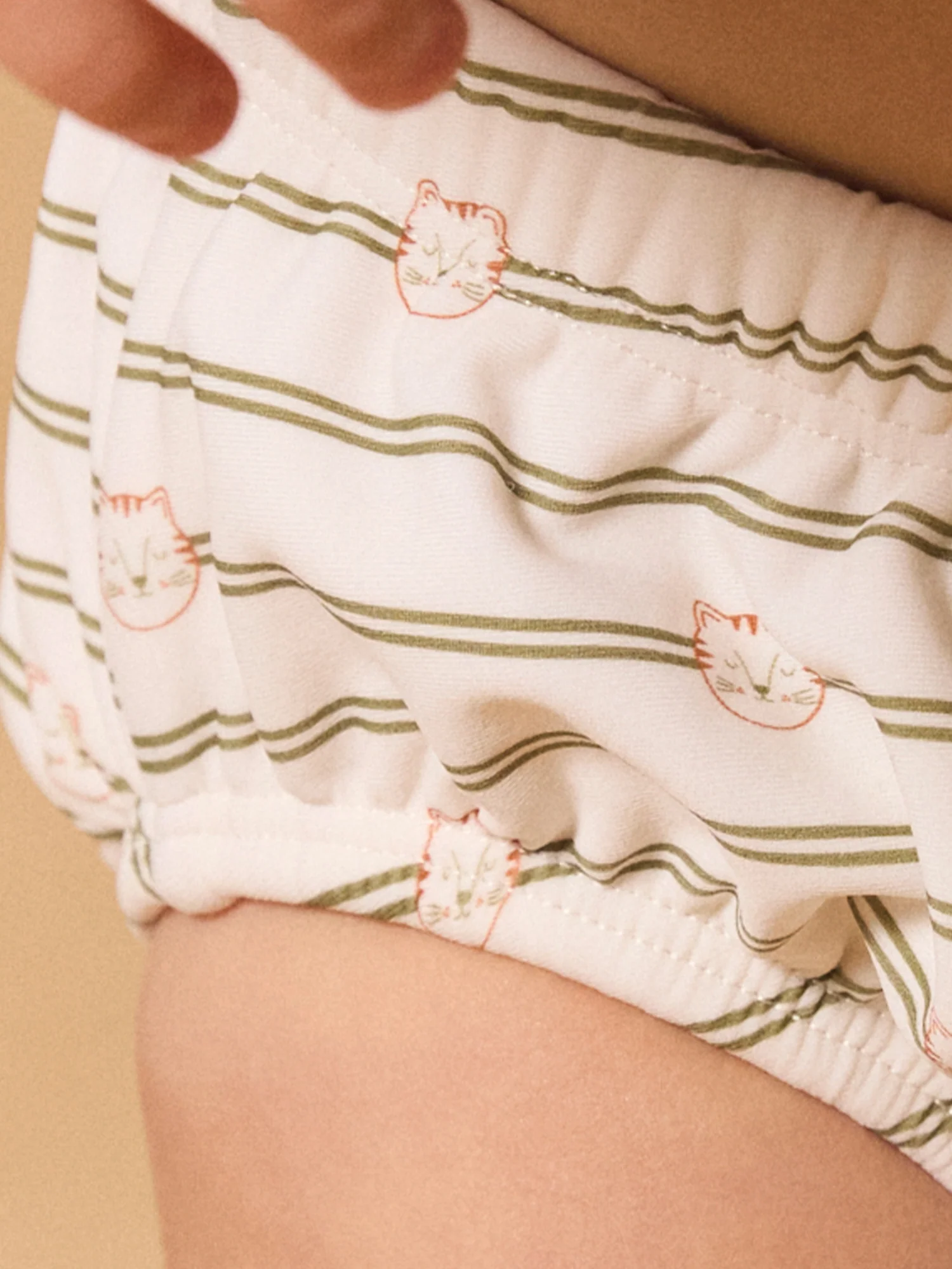 - Rayures kaki avec imprimé petites têtes de tigres sur fond écru