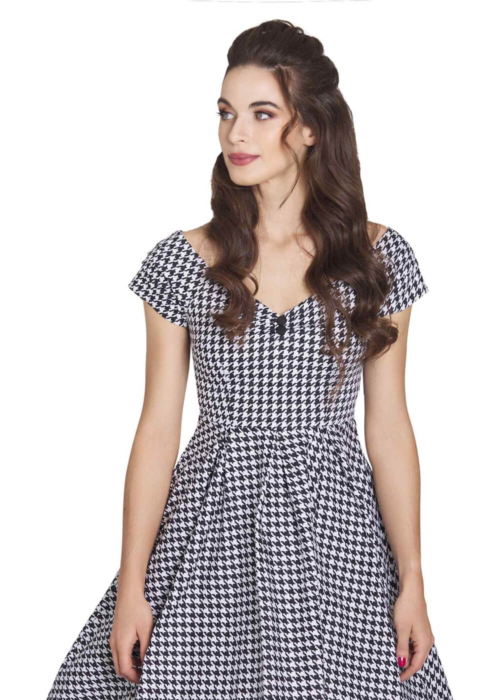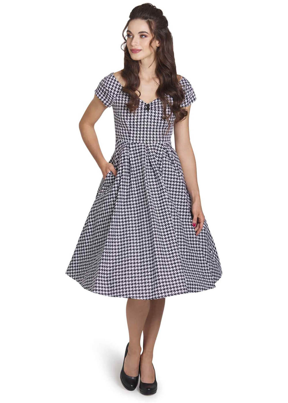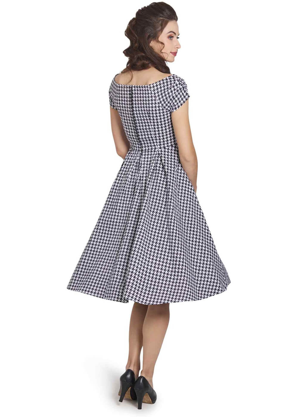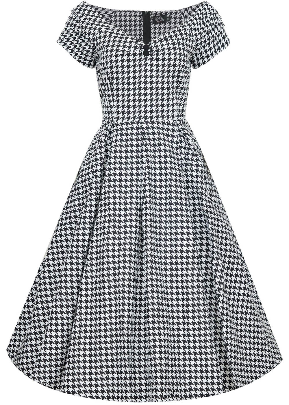 Dolly & Dotty Lily Dogtooth 50’s Swing Dress Black White
