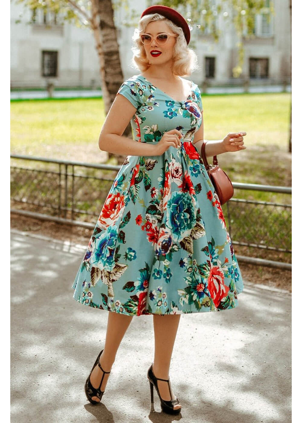 Dolly & Dotty Lily Floral 50’s Swing Dress Blue