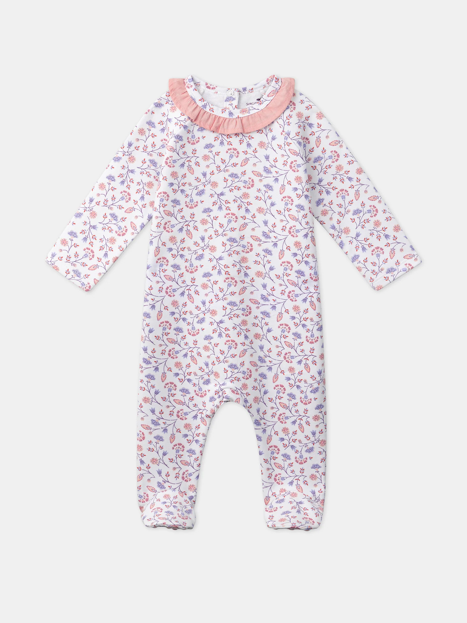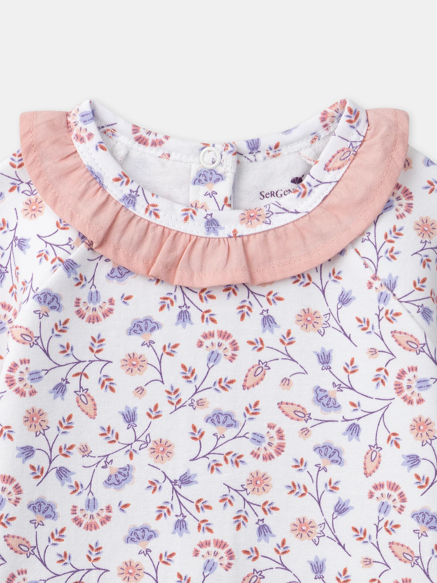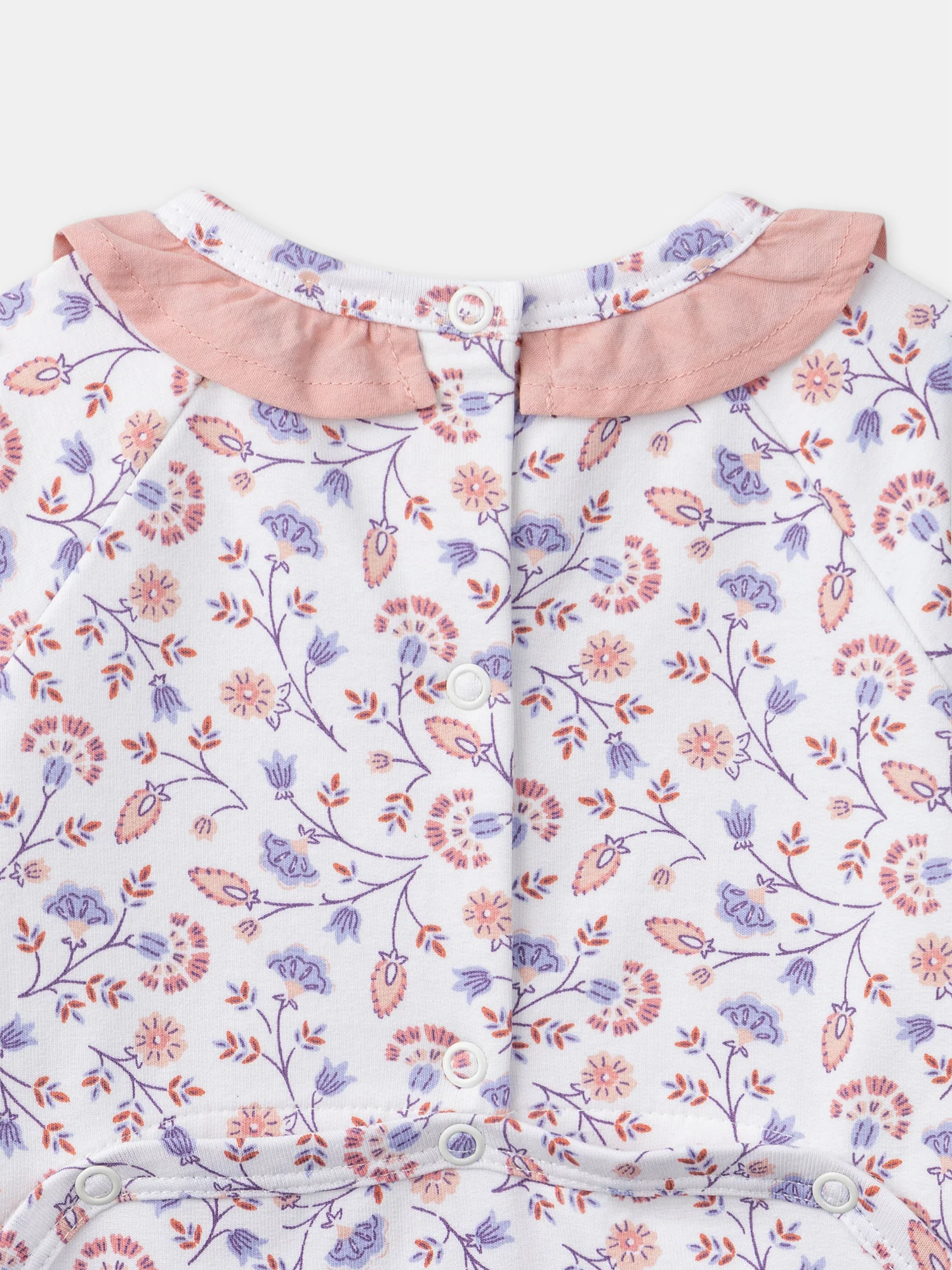 Pour des nuits douces et confortables, ce dors-bien en molleton gratté est parfait pour votre bébé. Il est orné d’un imprimé fleuri style indienne dans les tons rose, bleu lavande, parme et brun roux, créant un look enchanteur. Le col est volanté en popeline unie de couleur rose ancien, ajoutant une touche élégante. Les dessous […]