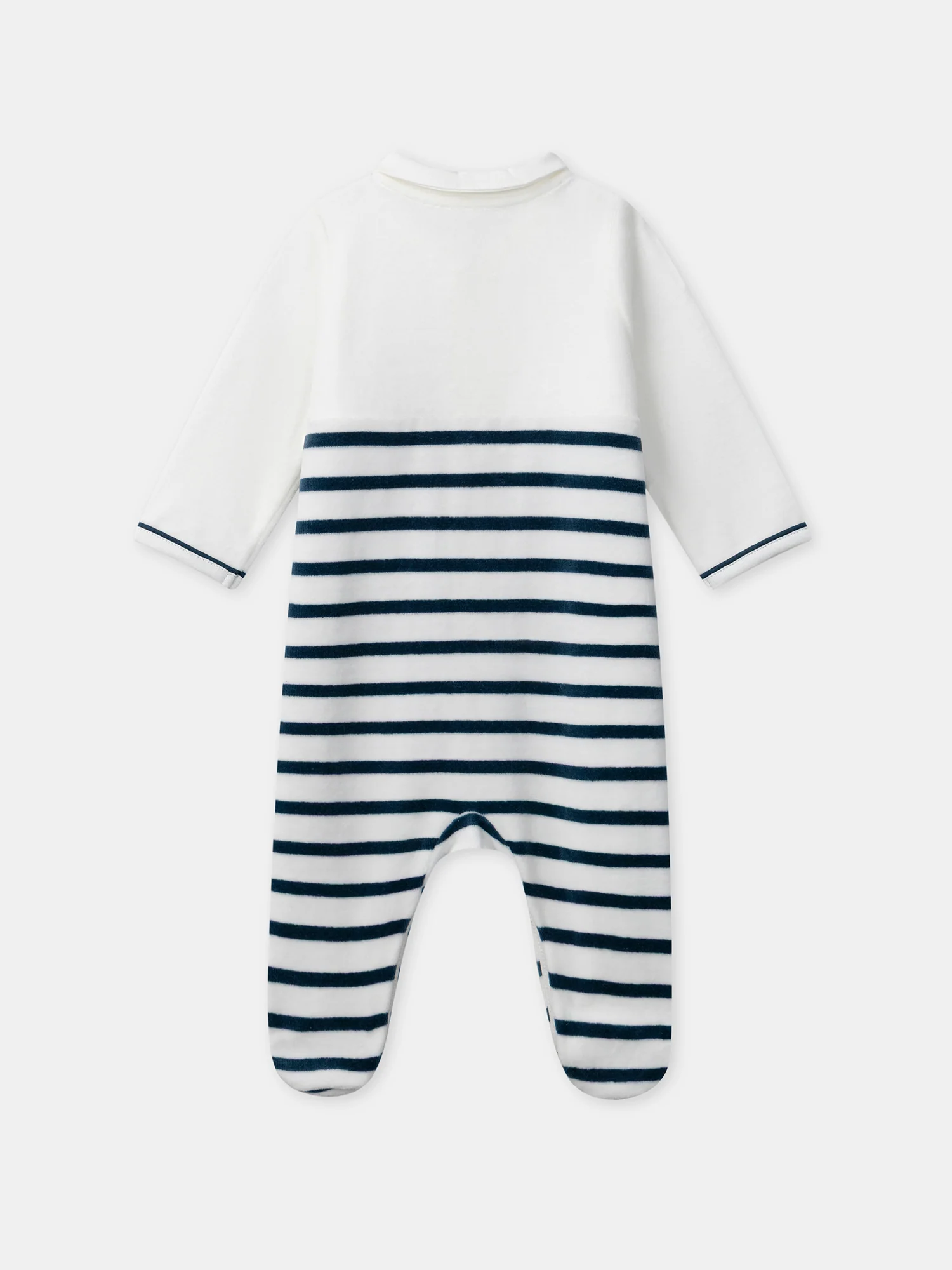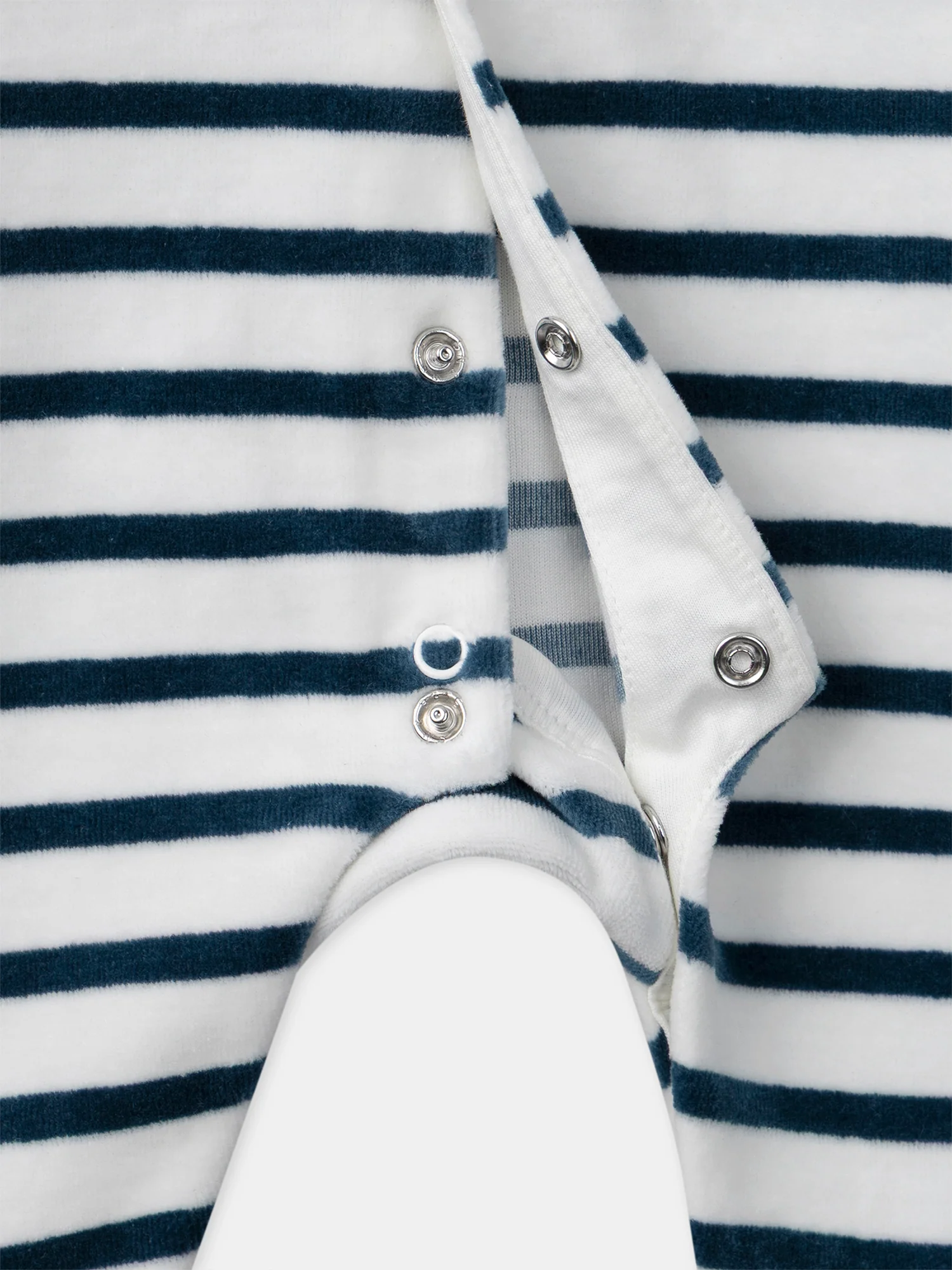 - Bas du dors-bien en velours rayé écru et bleu marine