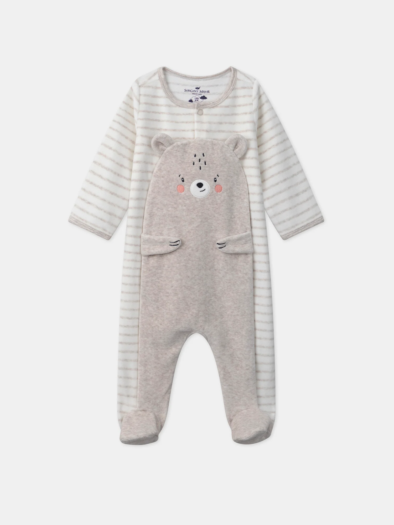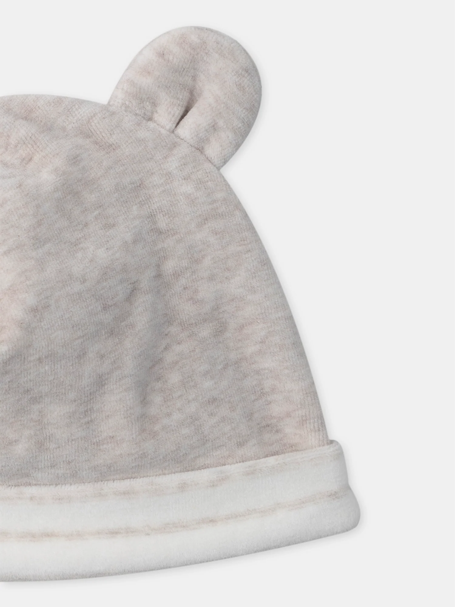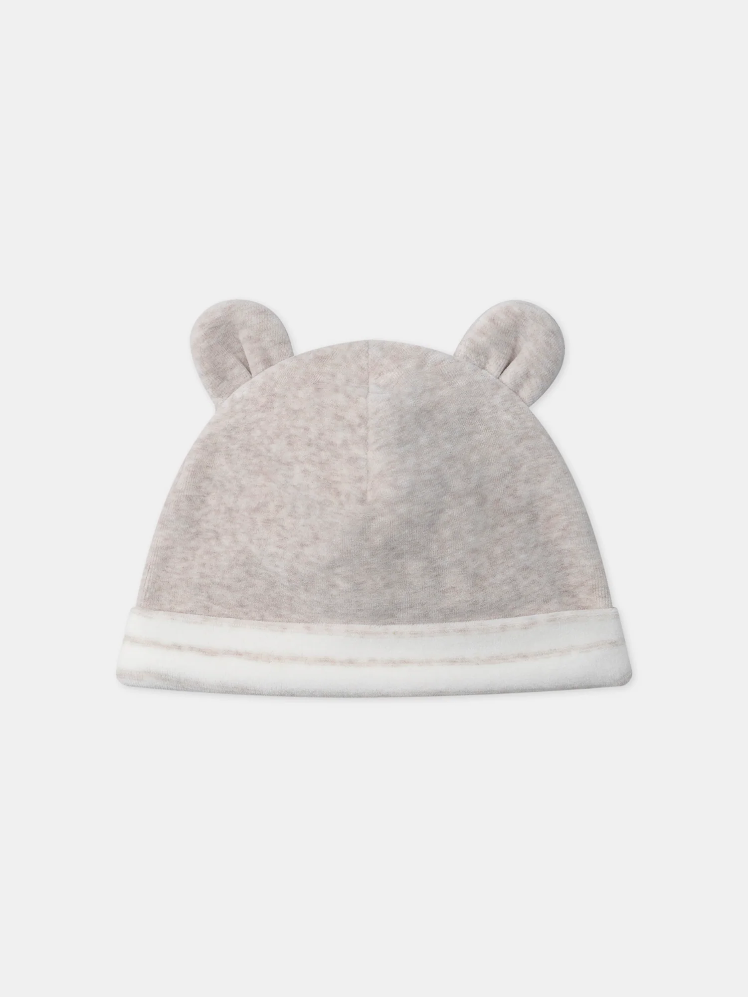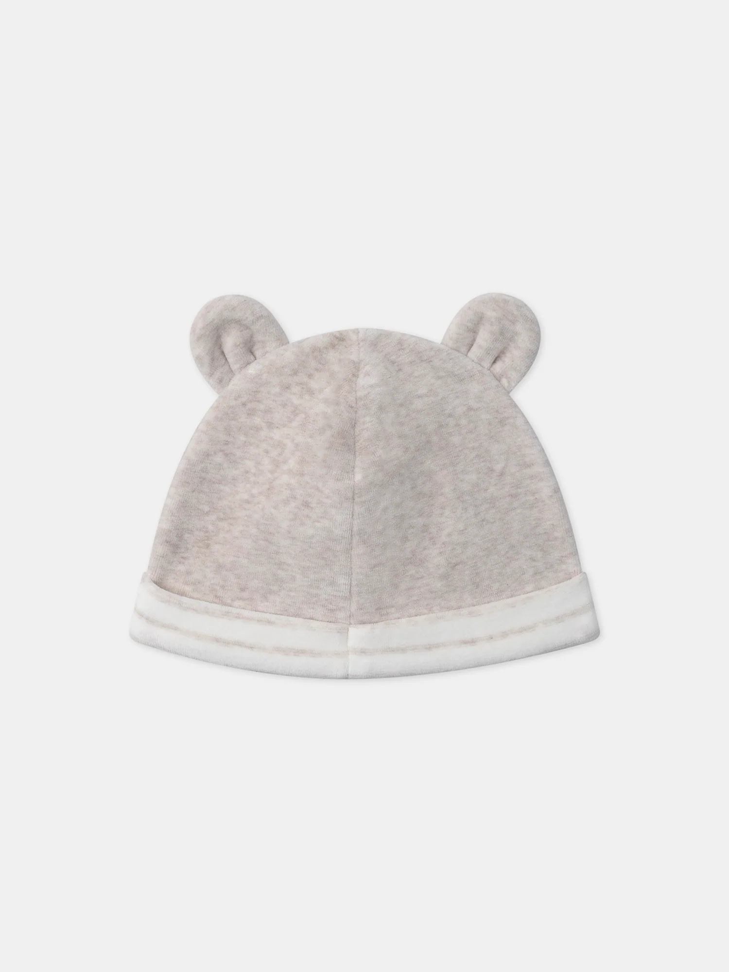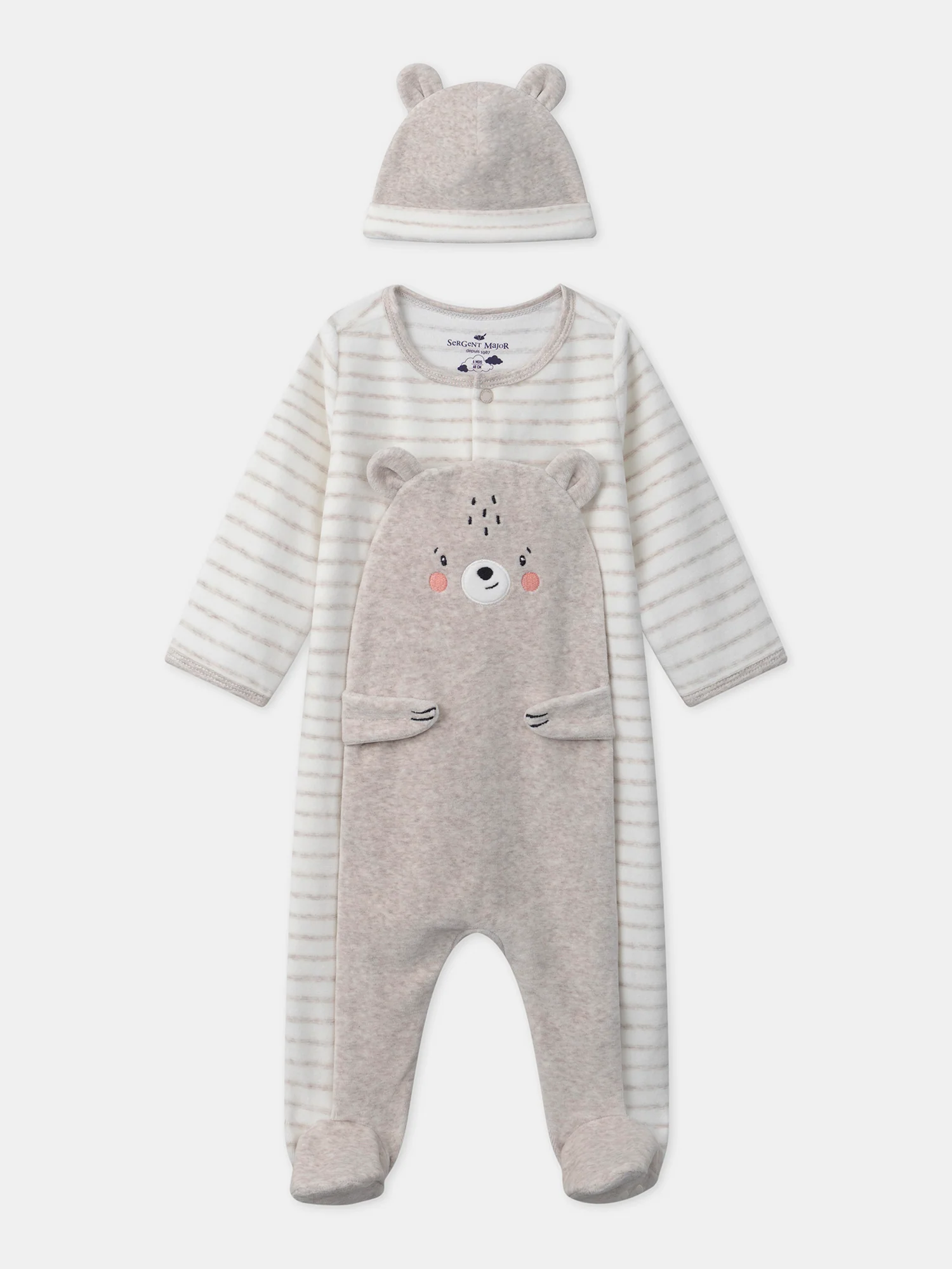 - Ensemble dors-bien et bonnet ours en velours composé de coton issu de l’agriculture biologique