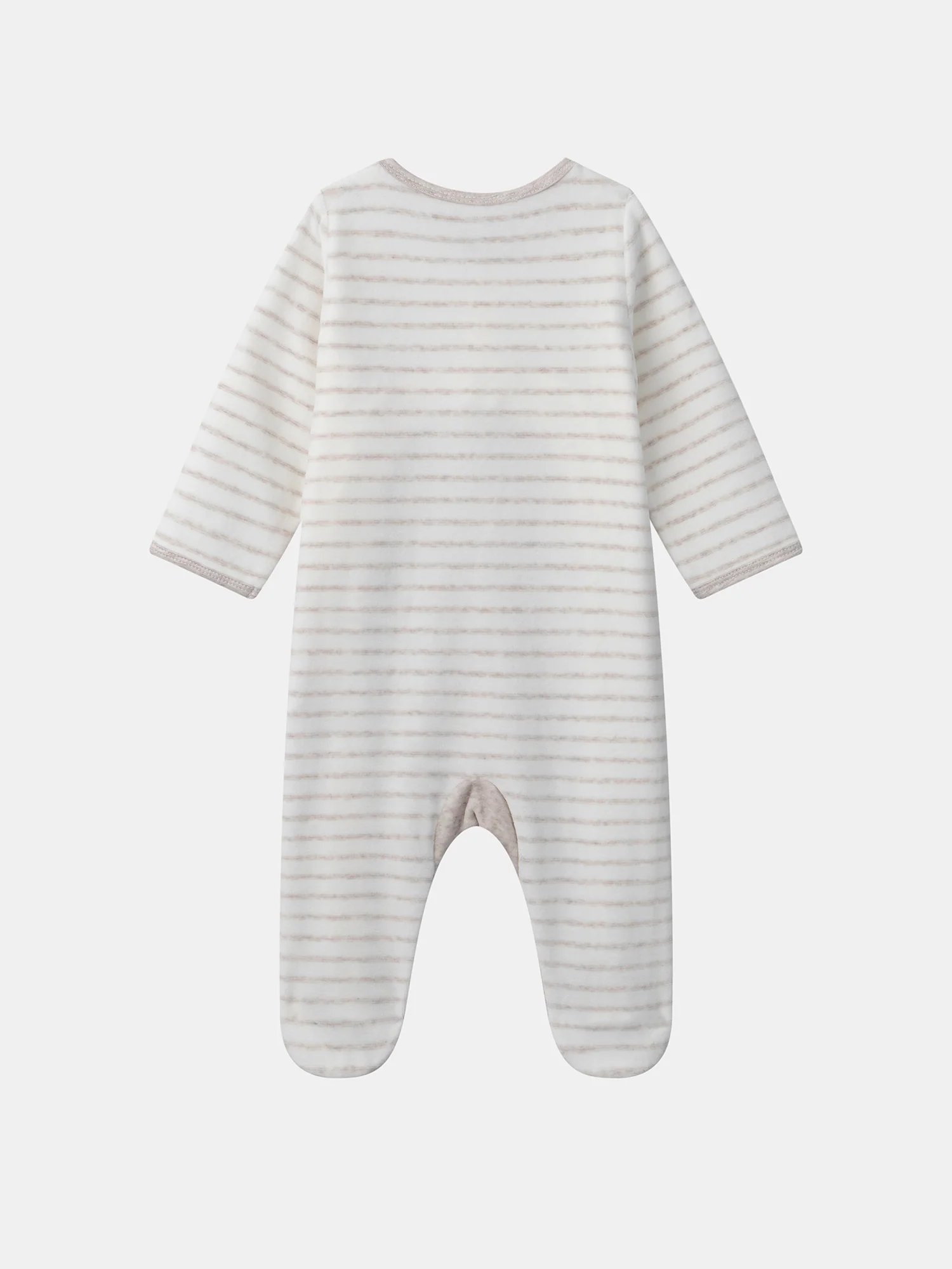 - Arrière et partie avant du dors bien en velours écru à fines rayures beige chiné foncé