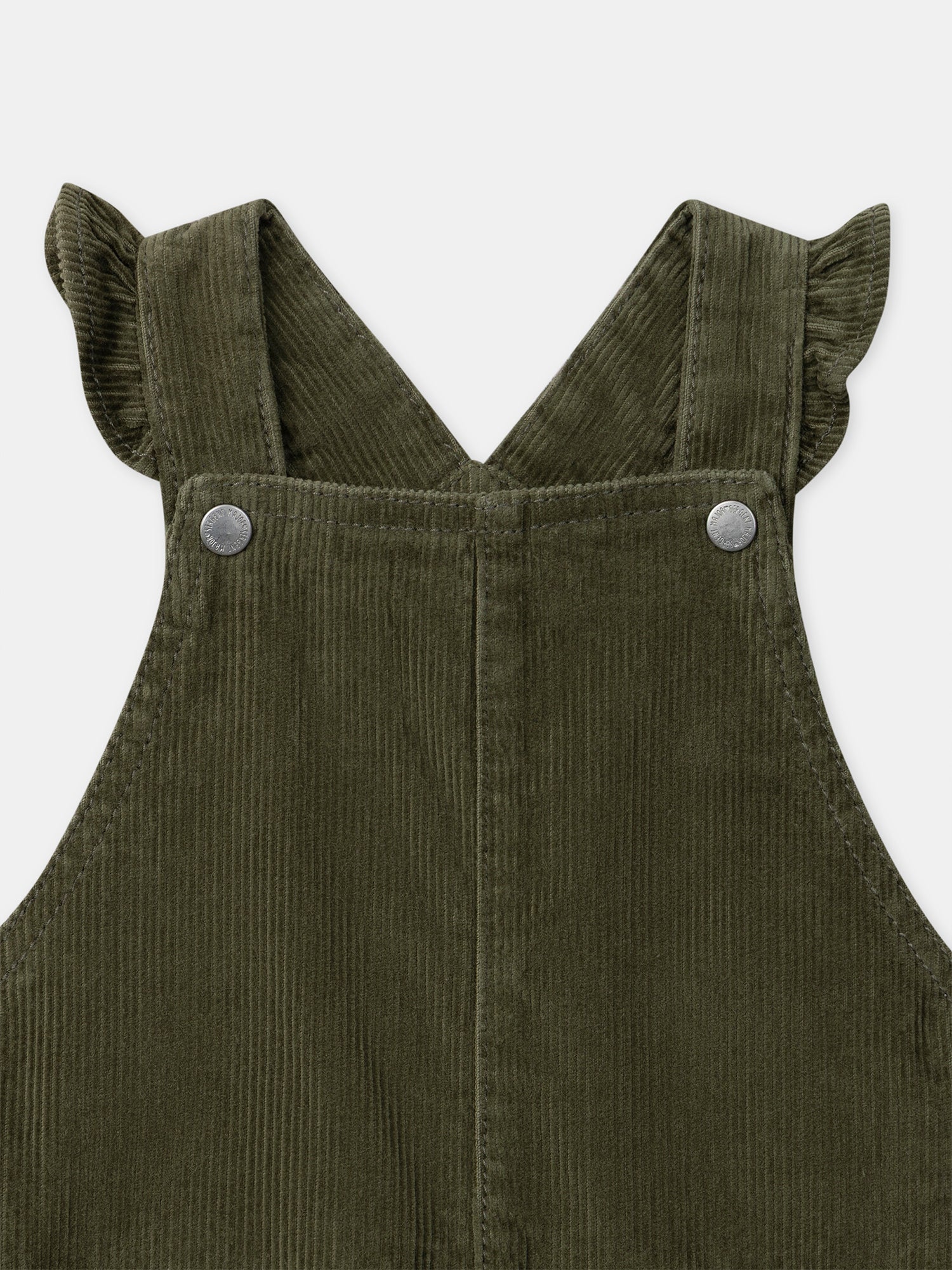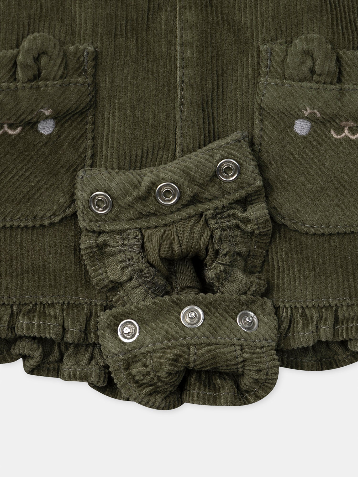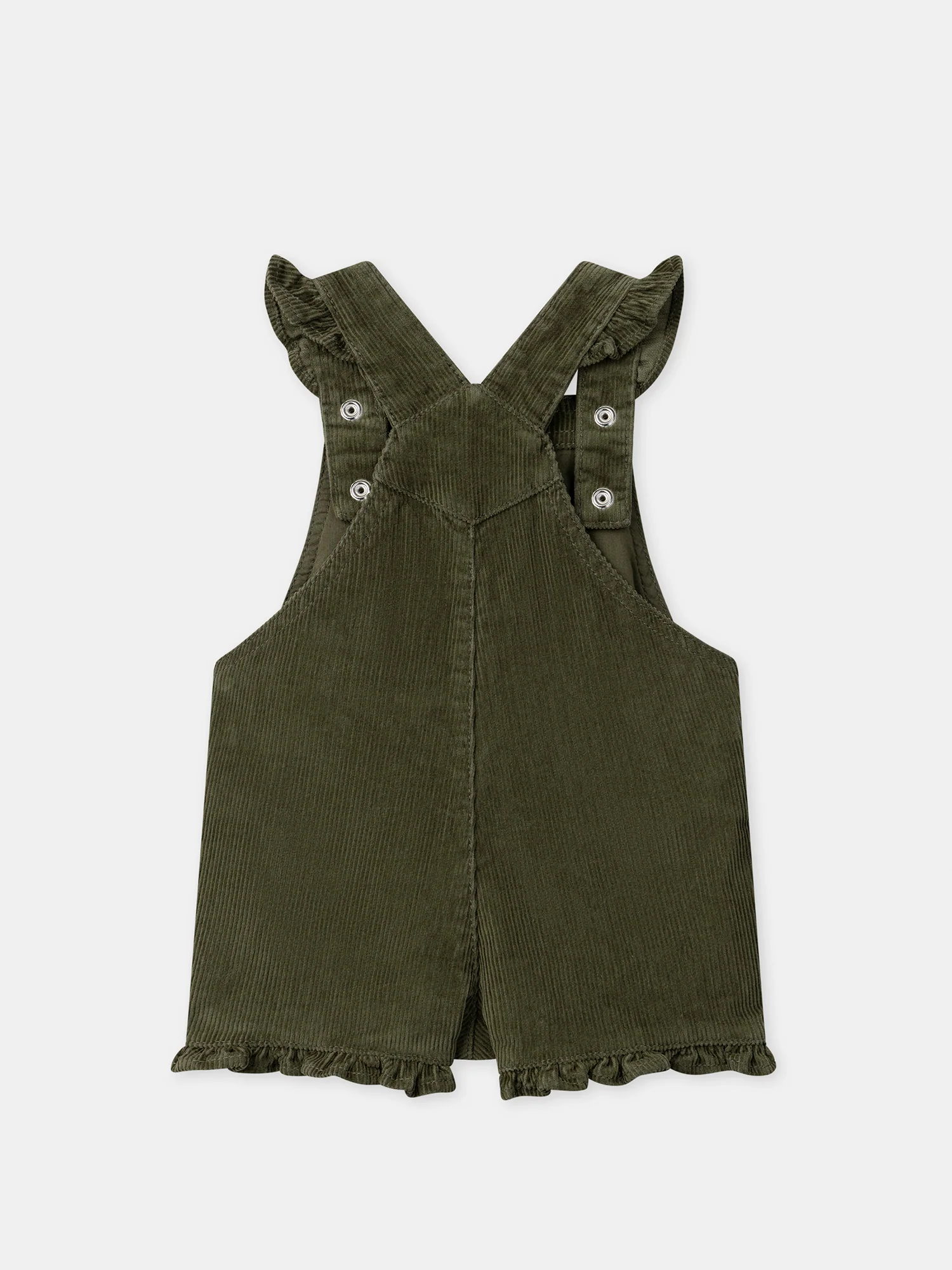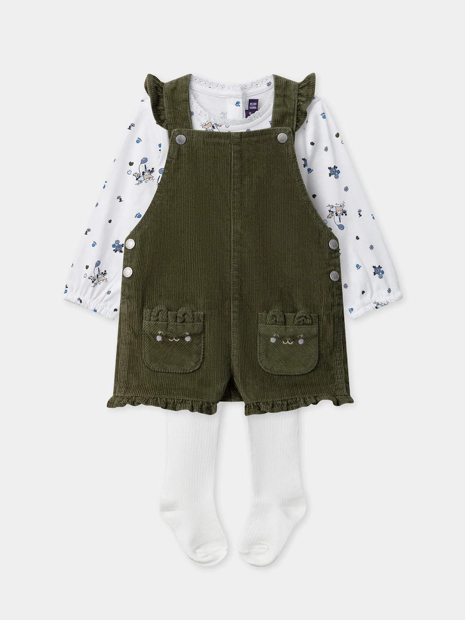 Ensemble salopette kaki en velours + body imprimé chien + collant Bébé Fille