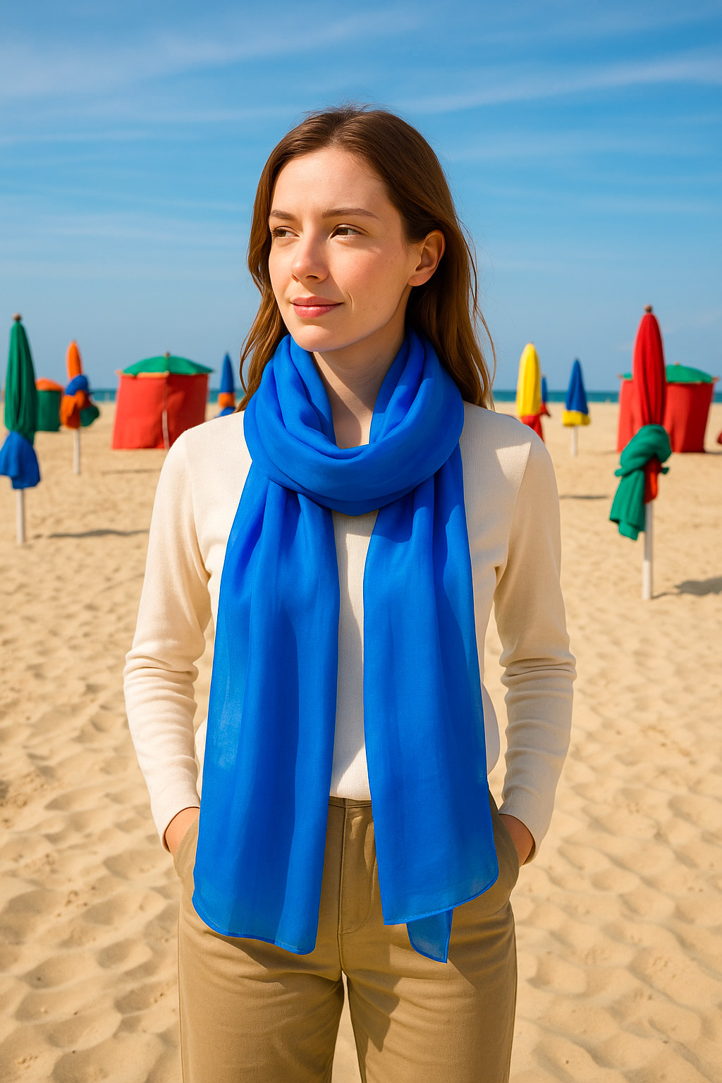 Plongez dans l’intensité vibrante du bleu avec le foulard Annabelle. Sa teinte franche et lumineuse rappelle les journées d’été sans nuage, les escapades en bord de mer et cette confiance naturelle que seul un accessoire bien choisi peut offrir.