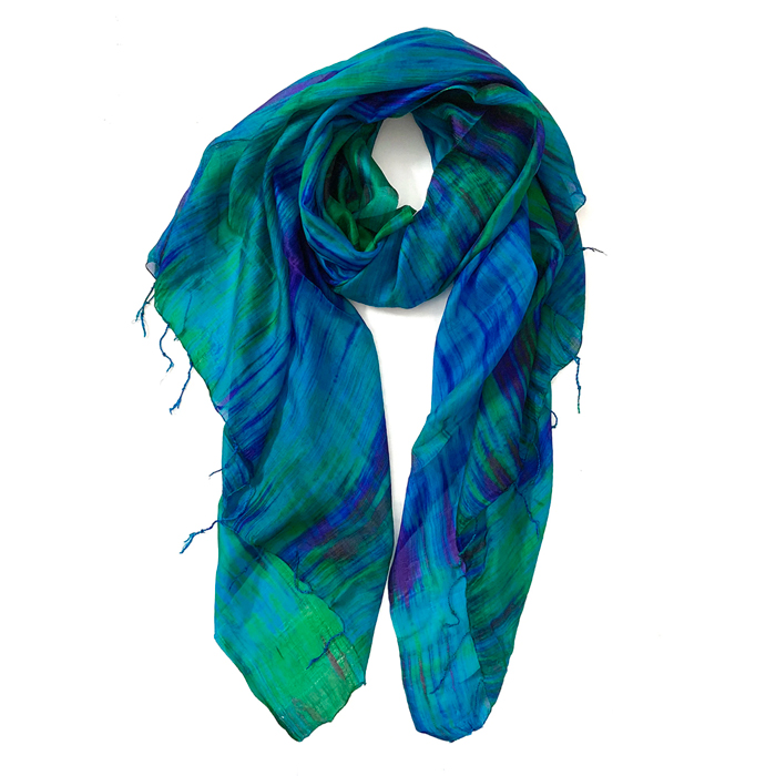 Caractéristiques Matière: 100% soie naturelle Taille: 170×75 Couleurs: Bleu et vert Technique de fabrication: Tissé et teint à la main Origine: Vietnam LIVRAISONS DHL – UPS – TNT : entre 12 à 14 jours