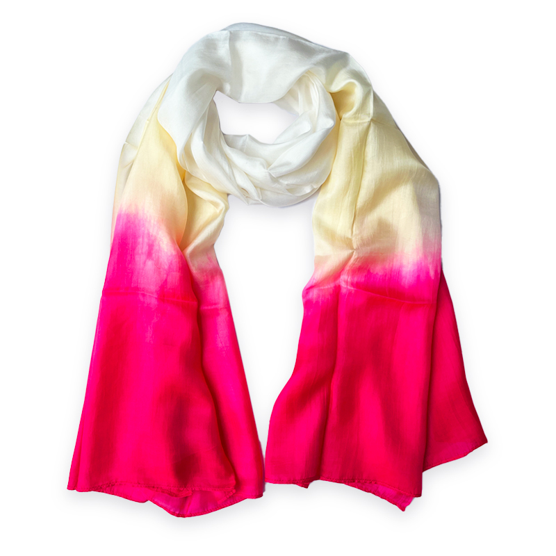 Caractéristiques Matière: 100% soie naturelle Taille: 185×85 cm Couleurs: Rose et blanc Technique de fabrication: Tissé et teint à la main Origine: Vietnam LIVRAISONS DHL – UPS – TNT : entre 12 à 14 jours