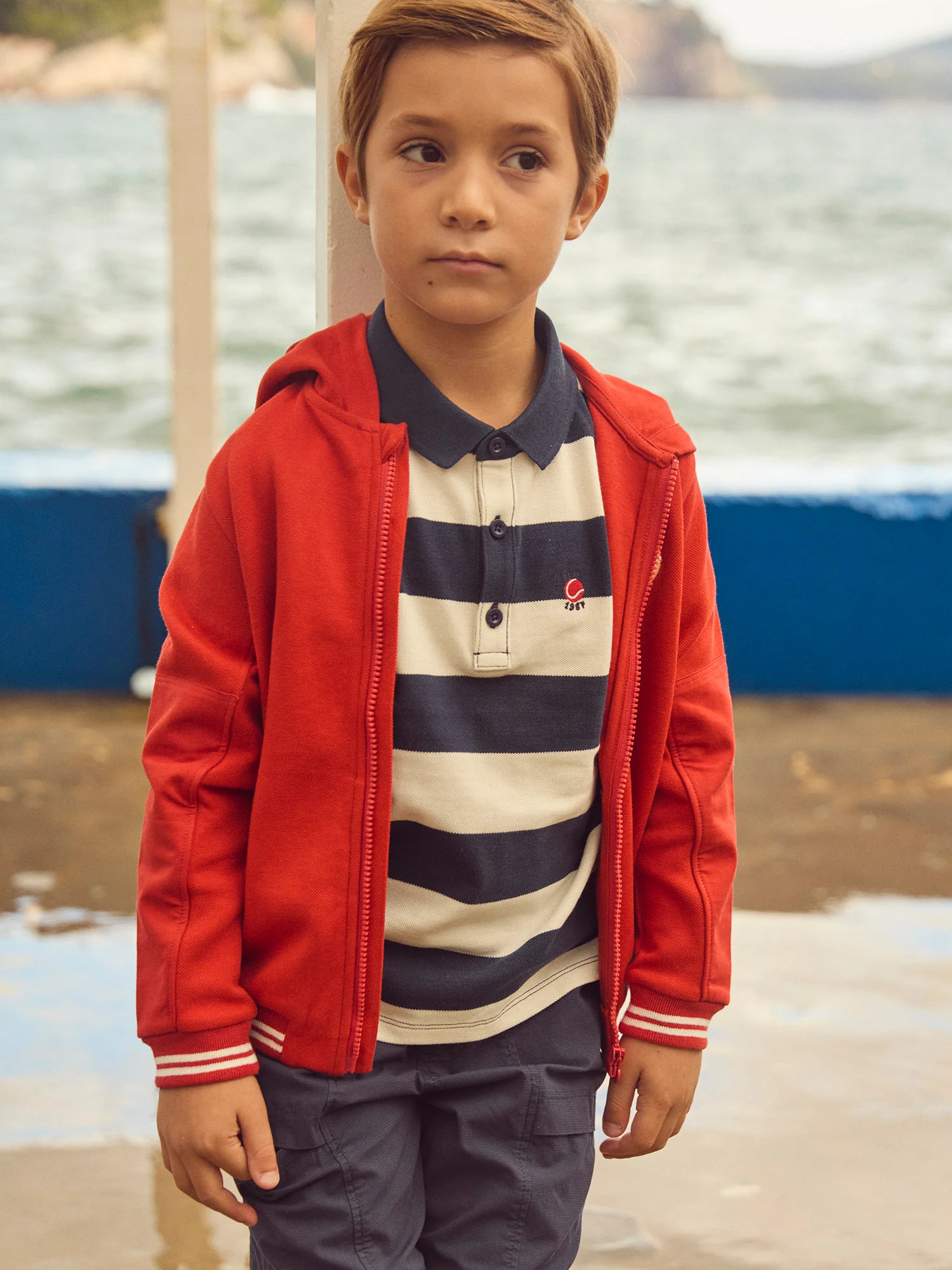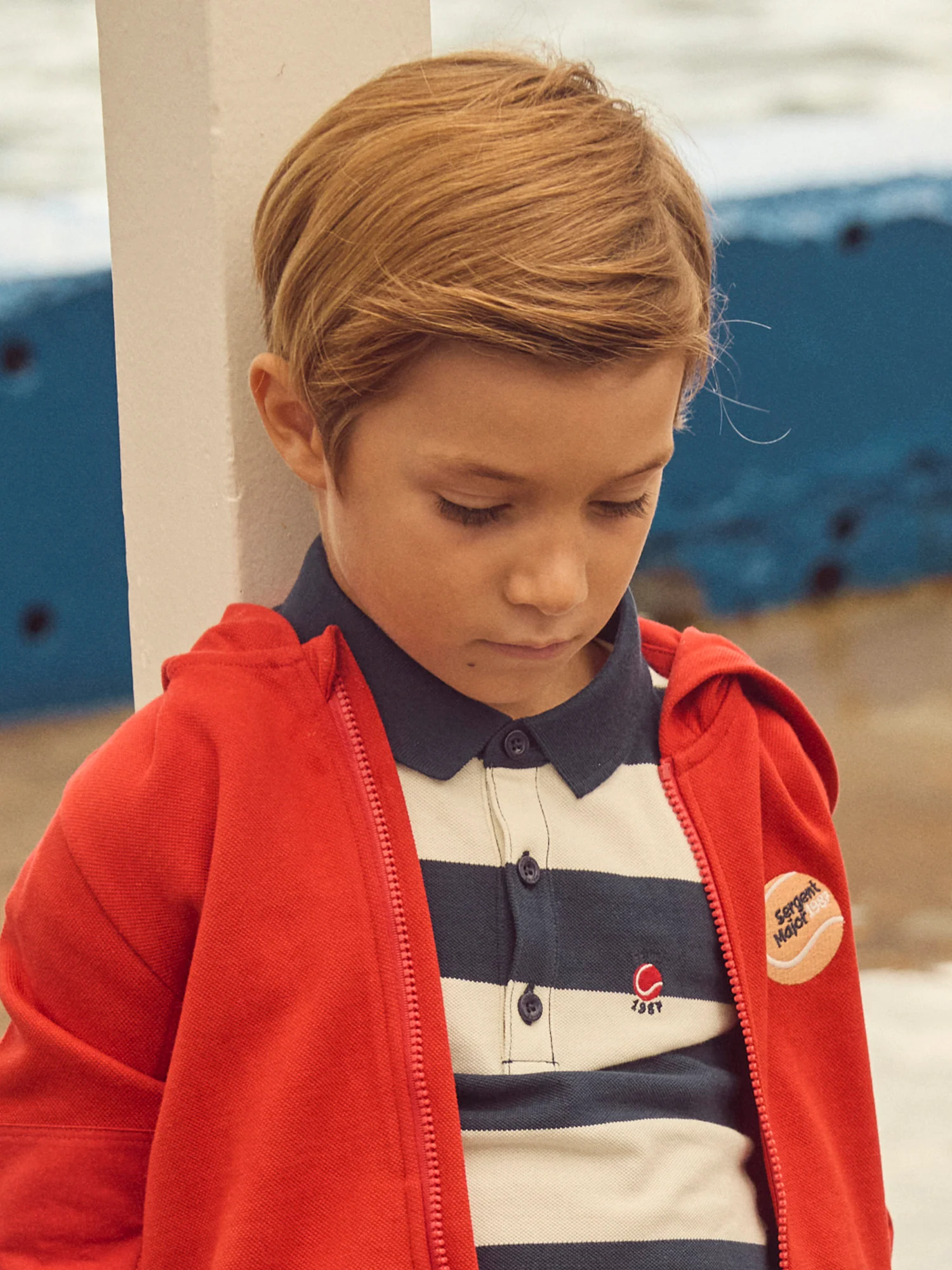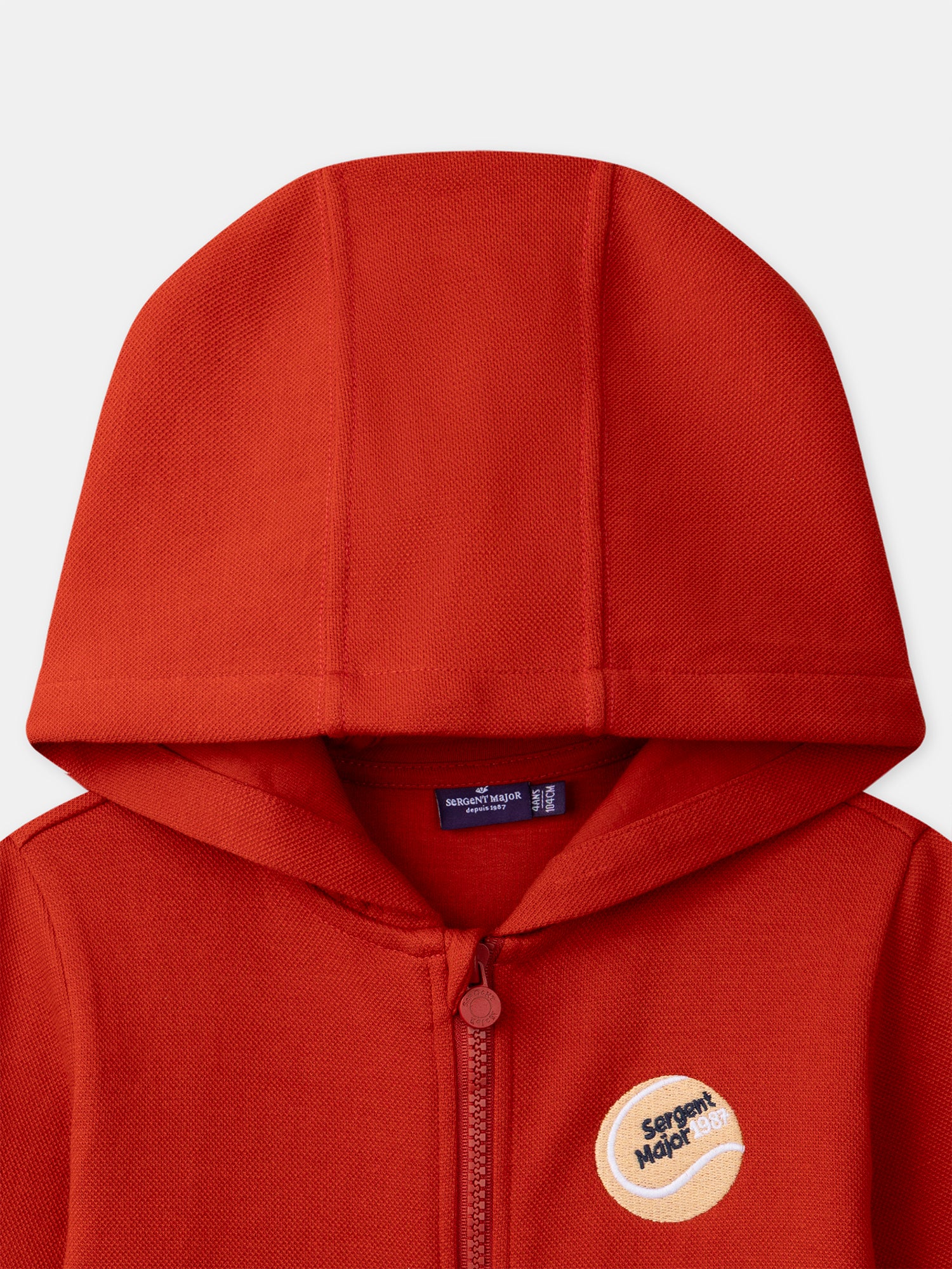 Pour les sportifs, ce gilet zippé à capuche est pratique et chaud. En maille piquée avec poches avant et bord côte pour confort et maintien. Les détails twill sur les manches et broderie poitrine reflètent l’univers tennis club.