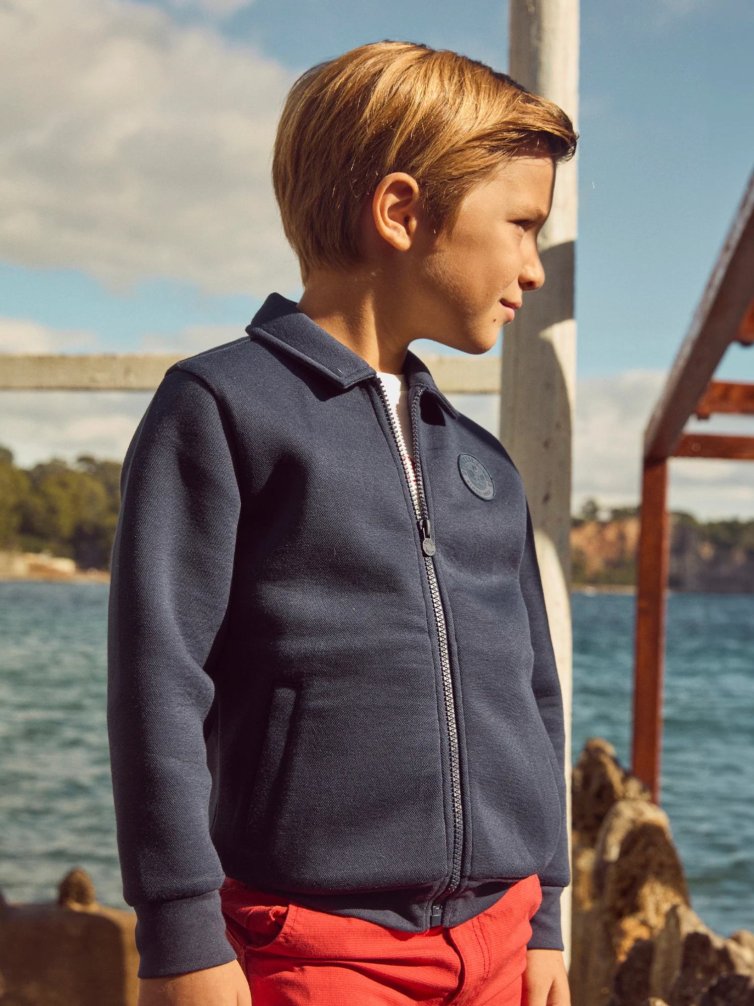 Pour les petits garçons, ce gilet en jersey piqué bleu marine est pratique. Deux poches avant et bord côte pour confort. Le badge en relief à la poitrine reflète l’univers tennis et un style chic sportif.
