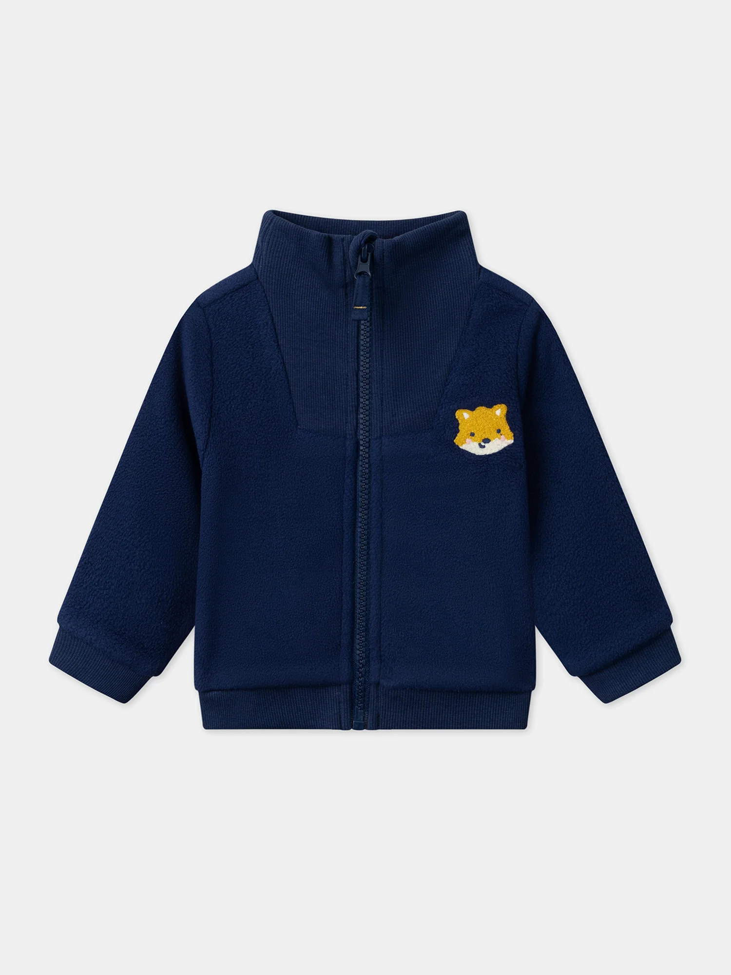 Ce sweat à col camionneur arbore un col en matière contrastée côtelée et un patch en bouclette de tête de renard jaune miel sur le buste. Il se ferme par une fermeture zippée intégrale à l’avant.